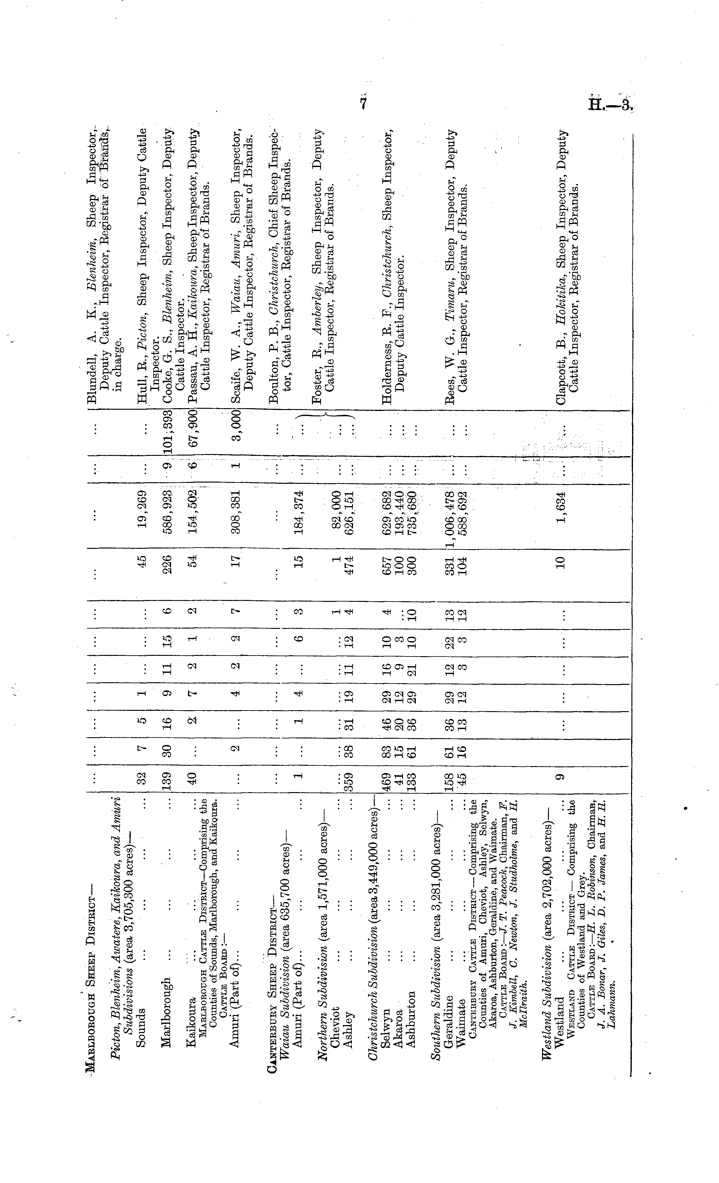Maelboeough Sheep Disteict — Blundell, A. K., Blenheim, Sheep Inspector, Deputy Cattle Inspector, of Brands, in charge. Picton, Blenheim, Awatere, Kaikoura, and Amuri Subdivisions (area 3,705,300 acres) — Sounds 45 19,269 Marlborough 32 139 7 30 5 16 1 9 11 15 6 226 586,923 9 101,393 Hull, E., Picton, Sheep Inspector, Deputy Cattle Inspector. Cooke, GL S., Blenheim, Sheep Inspector, Deputy Cattle Inspector. Passau, A. H., Kaikoura, Sheep Inspector, Deputy Cattle Inspector, Eegistrar of Brands. Kaikoura Mablbobough Cattle Distbict —Comprising the Counties of Sounds, Marlborough, and Kaikoura. Cattle Boabd :— Arnuri (Part of)... 40 2. 7 2 1 2 54 154,502 6 67,900 2 7 17 308,381 1 3,000 Scaife, W. A., Waiau, Amuri, Sheep Inspector, Deputy Cattle Inspector, Eegistrar of Brands. Canteebuby Sheep Disteict — Waiau Subdivision (area 635,700 acres) — Amuri (Part of)... i Boulton, P. B., Christchurch, Chief Sheep Inspector, Cattle Inspector, Eegistrar of Brands. 1 1 4 6 3 15 184,374 ;i Northern Subdivision (area 1,571,000 acres) — Cheviot Ashley 1 474 82,000 626,151 Foster, E., Amberley, Sheep Inspector, Deputy Cattle Inspector, Eegistrar of Brands. 359 38 31 19 11 12 1 4 Christchurch Subdivision (area 3,449,000 acres) — Selwyn Akaroa Ashburton 469 41 133 83 15 61 46 20 36 29 12 29 16 21 10 3 10 4 657 100 300 629,682 193,440 735,680 Holderness, E. P., Christchurch, Sheep Inspector, Deputy Cattle Inspector. 10 Southern Subdivision (area 3,281,000 acres) — Geraldine Waimate Cantebbuby Cattle Disteict — Comprising the Counties of Amuri, Cheviot, Ashley, Selwyn, Akaroa, Ashburton, Geraldine, and Waimate. Cattle Boabd :— J. T. Peacock, Chairman, F. J. Kimbell, C. Newton, J. Studholme, and H. Mcllraith. 158 45 61 16 36 13 29 12 12 3 22 3 13 12 331 104 1,006,478 588,692 ... Eees, W. G., Timaru, Sheep Inspector, Deputy Cattle Inspector, Eegistrar of Brands. Westland Subdivision (area 2,702,000 acres) — Westland Westland Cattle Distbict — Comprising the Counties of Westland and Grey. Cattle Boabd: — H. L. Robinson, Chairman, J. A. Bonar, J. Giles, D. P. James, and H. H. Lahmann. • 10 1,634 Clapcott, B., Hokitika, Sheep Inspector, Deputy Cattle Inspector, Eegistrar of Brands.