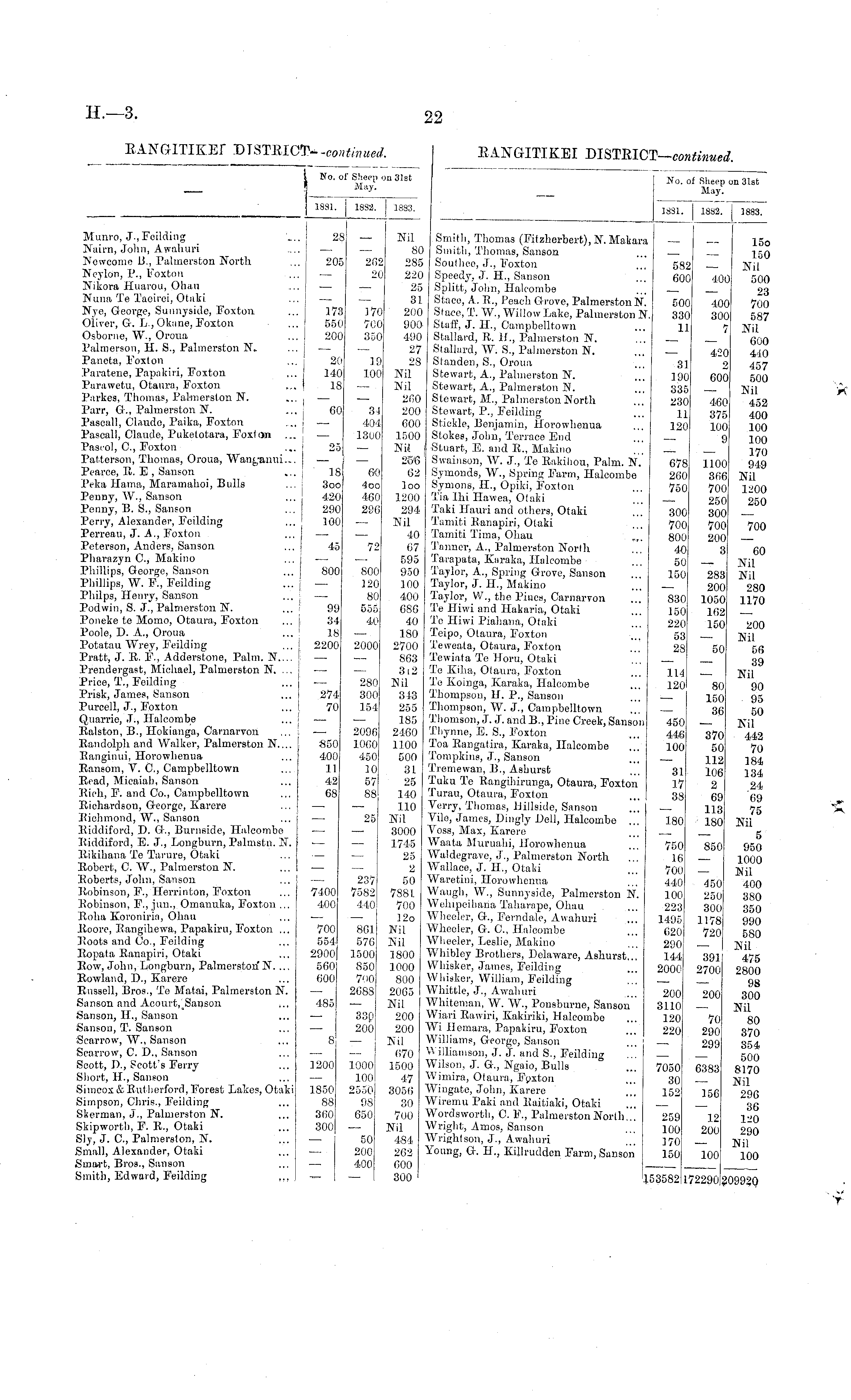 Iv T o. oi Sheep on 31st May. 1882. I ]883. 1881. I Smith, Thomas (Fitzherbert), N. Makara Smith, Thomas, Sanson Southee, J., Foxton Speedy, J. H., Sanson Splitt, John, Halcombe Stace, A. R., Peach Grove, Palmerston N. Stace, T. W., Willow Lake, Palmerston N Staff, J. II., CampbelHown Stallard, R. H., Palmerston N. Stallard, W. 8., Palmerston N. Standen, 8., Oroua Stewart, A., Palmerston N. Stewart, A., Palmerston N. Stewart, M., Palmerston North Stewart, P., Feilding Stickle, Benjamin, Horowhenna Stokes, John, Terrace End Stuart, E. and E., Makino Swainson, W. J., Te Rakihou, Palm. N. Syinonds, W., Spring Farm, Halcombe Symone, II., Opiki, Foxton Tia lhi Hawea, Otaki Taki Kauri and others, Otaki lamiti Eanapiri, Otaki Tamiti Tima, Ohau Tanner, A., Palmerston North Tarapata, Karaka, Halcombe Taylor, A., Spring G-rove, Sanson Taylor, J. H., Makino Taylor, W., the Pines, Carnarvon Te Hiwi and Hakaria, Otaki Te Hiwi Piahana, Otaki Teipo, Otaura, Foxton I'eweata, Otaura, Eoxtou Tewiata Te Horu, Otaki Te Kiha, Otaura, Foxton Te Ivoinga, Karaka, Halcombe Thompson, H. P., Sanson Thompson, W. J., Campbelltown Thomson, J. J. and 13., Pine Creek, Sanson Thynne, E. S., Foxton Toa Eangatira, Karaka, llalcombe Tompkins, J., Sanson Tremewan, B., Asliursfc Tuku Te Rangihirunga, Otaura, Foxton Turau, Otaura, Foxton Verry, Thomas, Hillside, Sanson Vile, James, Dingly Dell, Halcombe Voss, Max, Karere Waata Muruahi, Horowhenua Waldegrave, J., Palmerston North Wallace, J. H., Otaki Waretini, Horowhenua Waugh, W., Sunnyside, Palmerston N. Wekipeibana Taharape, Ohau Wheeler, G-., Ferndale, Awahuri Wheeler, G. C, Halcombe Wheeler, Leslie, Makino Whibley Brothers, Delaware, Ashurst... Whisker, James, Feilding Whisker, William, Feilding Whittle, J., Awahuri ',',' Whiteman, W. W., Pousburne, Sanson Wiari Eawiri, Kakiriki, Halcombe Wi Hemara, Papakiru, Foxton Williams, George, Sanson Williamson, J. J. and S., Feilding ... i Wilson, J. G., Ngaio, Bulls Wimira, Otaura, Foxton Wingate, John, Karere Wiremu Paki and Eaitiaki, Otaki Wordsworth, C. F., Palmerston North... Wright, Amos, Sanson Wright son, J., Awahuri Sfoung, G-. H., Killrudden Farm, Sanson 532 600 r. 500 N 330 11 31 190 335 230 11 120 678 260 750 300 700 800 40 50 150 830 150 220 53 28 114 120 52 )0 400 )0 400 iO 300 .1 7 420 11 2 10 GOO [g ;( 460 1 375 10 100 8 1100 0 366 0 700 250 0 300 0 700 0 200 0 3 (J — 3 283 200 0 1050 3 102 3 150 3 — i 50 i — ) 80 150 36 15o 150 Nil 30 500 23 30 700 JO 587 7 Nil 600 20 410 2 457 )0 500 Nil )0 452 '5 400 tO 100 9 100 170 10 949 16 Nil iO 1200 0 250 iO — 0 700 0 — 3 60 Nil 3 Nil 0 280 0 1170 0 200 Nil 0 56 39 Nil 0 90 3 95 S 50 Nil 3 442 3 70 1 184 3 134 24 ) 69 i 75 Nii 5 950 1000 Nil 400 380 350 990 580 Nil 475 2800 98 300 Nil 80 370 354 500 8170 Nil 29G 36 120 290 Nil 100 i 450 446 100 ) , :i 370 ) 50 112 I 106 7 2 69 113 180 31 17 38 180 750 16 700 440 100 223 1405 620 290 144 2000 850 450 250 300 1178 720 391 2700 200 3110 120 220 200 70 290 299 7050 30 152 6383 156 259 100 170 150 12 200 100 153582 15 172290ISC :209920