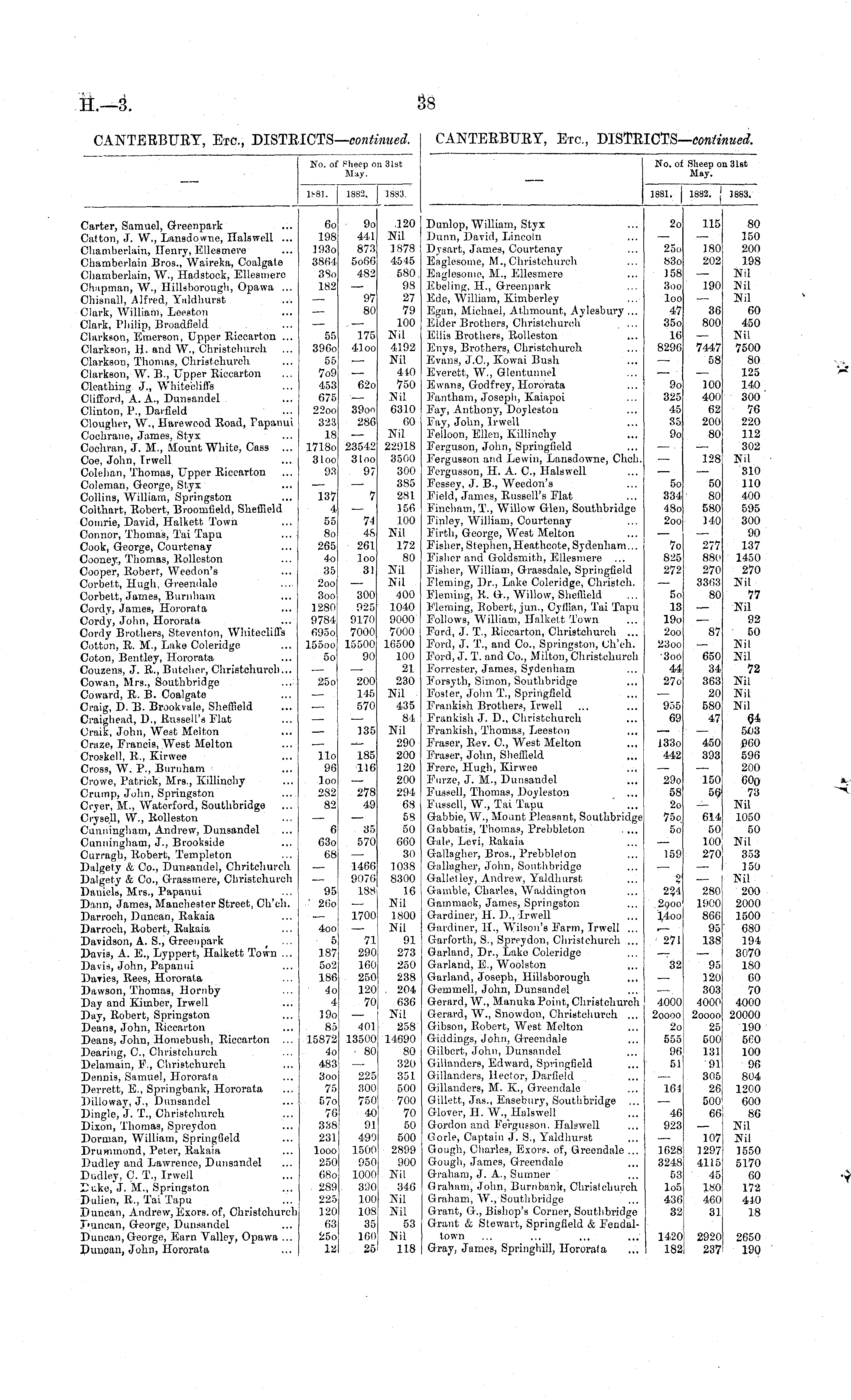 No. of Sheop on 31st May. Ifc81. 1882. 1883. Carter, Samuel, Groenpark Cat ton, J. Wi, Lansdowne, Halswell ... Chamberlain, Henry, Ellesmere Chamberlain Bros., Waireka, Coalgate Chamberlain, W., Hadstock, Ellesmerc Chapman, W., Hillsborough, Opavva ... Chisnall, Alfred, Ynldburst Clark, William, Leeston Clark, Philip, Broadfield. Clarkson, Eraereon, Upper Eiccarton ... Clarkaon, H. and W., Christohureh Clarkeon, Thomas, Christchuroh Clarkson, W. B., Upper Eiccarton Cleathing J., Whiteclifls Clifford, A. A., Duneandel Clinton, P., Darfield Clougher, W., Harewood Eoad, Fapanui Cochrane, James, Styx Coohran, J. M., Mount White, Cass Coe, John, Irwell Colehan, Thomas, Upper Eicearton Coleman, George, Styx ... Collins, William, Springston Colthart, Eobert, Broomfield, Sheffield Coriirie, David, Halkett Town Connor, Thomas, Tai Tapu Cook, George, Courtenay Cooney, Thomas, Rollesbon Cooper, Koberr, Weedon's Corbctit, Hugh, Greendale Corbett, James, Burnham Cordv, James, Hororata Cordy, John, Hororata Cordy Brothers, Steventon, Whiteeliffs Cotton, E. M., Lake Coleridge Coton, Bentley, Hororata Couzens, J. R., Butcher, Christehurch... Cowan, Mrs., Southbridge Coward, E. B. Coalgate Craig, D. H. Brookvale, Sheffield Ci'aighend, D., Eussell'e Flat Oraik, John, West Melton Craze, Francis, West Melton Croskell, K., Kirwee Cross, W. P., Burnham Crowe, Patrick, Mrs., Killinohy Crump, John, Springston Cryer, M., Waterford, Southbridge Cryse.ll, W., Eolleston Cunningham, Andrew, Dunsandel Cunningham, J., Brookside Curragh, Eobert, Templeton Dalgety & Co., Dunsandel, Chritchurch Dalgety & Co., Grassmere, Christehurch Daniels, Mrs., Papanui Dann, James, Manchester Street, Ch'eh. Darroch, Duncan, Eakaia Darroch, Kobert, Eakaia Davidson, A. S., Greeupark Davis, A. E., Lyppert, Halkett Town ... Davis, John, Papanui Davies, Eees, Hororata Dawson, Thomas, Hornby Day and Kirnber, Irwell Day, Eobert, Springston Deans, John, Eiccarton Deans, John, Homebush, Eiccarton Dealing, C, Christehurch Delamain, P., Christehurch Dennis, Samuel, Hororala Derrett, E., Springbank, Hororata Dilloway, J., Dunsandel Dingle, J. T., Christchureb. Dixon, Thomas, Spreydon Dorman, William, Springfield Drummond, Peter, Eakaia Dudley and Lawrence, Dunsnndel Dudley, C. T., Irwell J. M., Springston Dulien, E., Tai Tapu Duncan, Andrew, Exors. of, Christehurch X'uncan, George, Dunsandel Duncan, George, Earn Valley, Opawa ... Puncan, John, Hororata 60 9o 120 198 441 Nil 193o 873 1878 3864 5o66 4545 3So 482 580 182 — 98 — 97 27 — 80 79 — . — 100 55 175 Nil 396o 41oo 41.92 55 — Nil 7o9 — 440 453 62o 750 675 — Nil 22oo 39on 6310 323 286 60 18 — Nil 1718o 23542 22918 3 loo 3 loo 3500 93 97 300 — — 385 137 7 281 4 — 156 55 74 100 80 48 Nil 265 261 172 4o loo 80 35 31 Nil 2oo — Nil 3oo 300 400 1280 925 1040 9784 9170 9000 69oo 7000 7000 155oo 15500 10500 5o 90 10O — 21 25o 200 230 — 145 Nil — 570 435 — — 84 — 335 Nil _ — 290 llo 185 200 96 116 120 100 — 200 282 278 294 82 49 68 — — 58 6 35 50 63o 570 660 68 — 30 — 1466 1038 — 9076 8300 95 188 16 ' 2(>o — Nil — 1700 1800 4oo — Nil 5 71 91 187] 290 273 5o2 160 250 186 250 238 4o 120 204, 4 70 636 19o — Nil 85 401 258 15872 13500 14690 4o ■ 80 80 483 — 320 3oo 225 351 75 300 500 57o 750 700 76 40 70 388 91 50 231 4,90 500 looo 1500 2899 250 950 900 680 1000 Nil 289 390 346 225 100 Nil 120 108 Nil 63 35 53 25o 160 Nil 12 25 118 60 198 193o 3864 3So 182 55 396o 55 7o9 453 675 22oo 323 18 1718o 31oo 93 137 4 55 80 265 4o 35 2op 3oo 1280 9784 695o 155oo 5o 25o 9o 441 873 5o66 482 97 80 175 41oo 62o 39oo 286 23542 31oo 97 7 74 48 261 ]oo 31 300 925 9170 7000 15500 90 200 145 570 ]35 llo 96 ]oo 282 82 185 116 278 49 6 63o 68 35 570 1466 9076 188 95 ■ 26o 1700 4oo 5 187] 6o2 186 do 4 19o 85 15872 4o 483 3oo 75 57o 76 388 231 looo 250 680 289 225 120 63 25o la 71 290 160 250 120 70 401 13500 ' 80 225 300 750 40 91 490 1500 950 1000 390 100 108 35 160 25