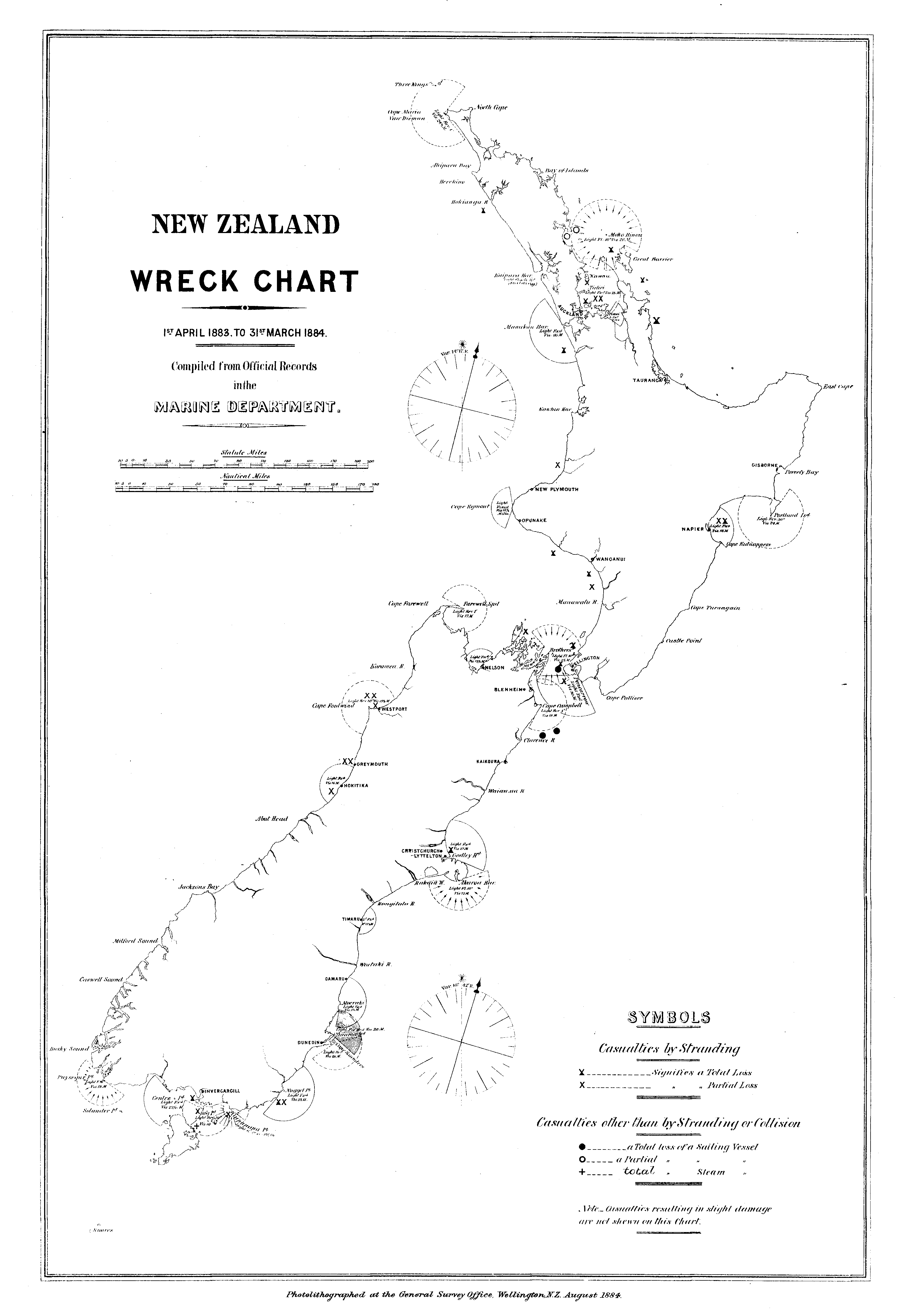 NEW ZEALAND WRECK CHART 1 s t APRIL 1883, TO 31st MARCH 1884. Compiled from Official Records in the MARINE DEPARTMENT.