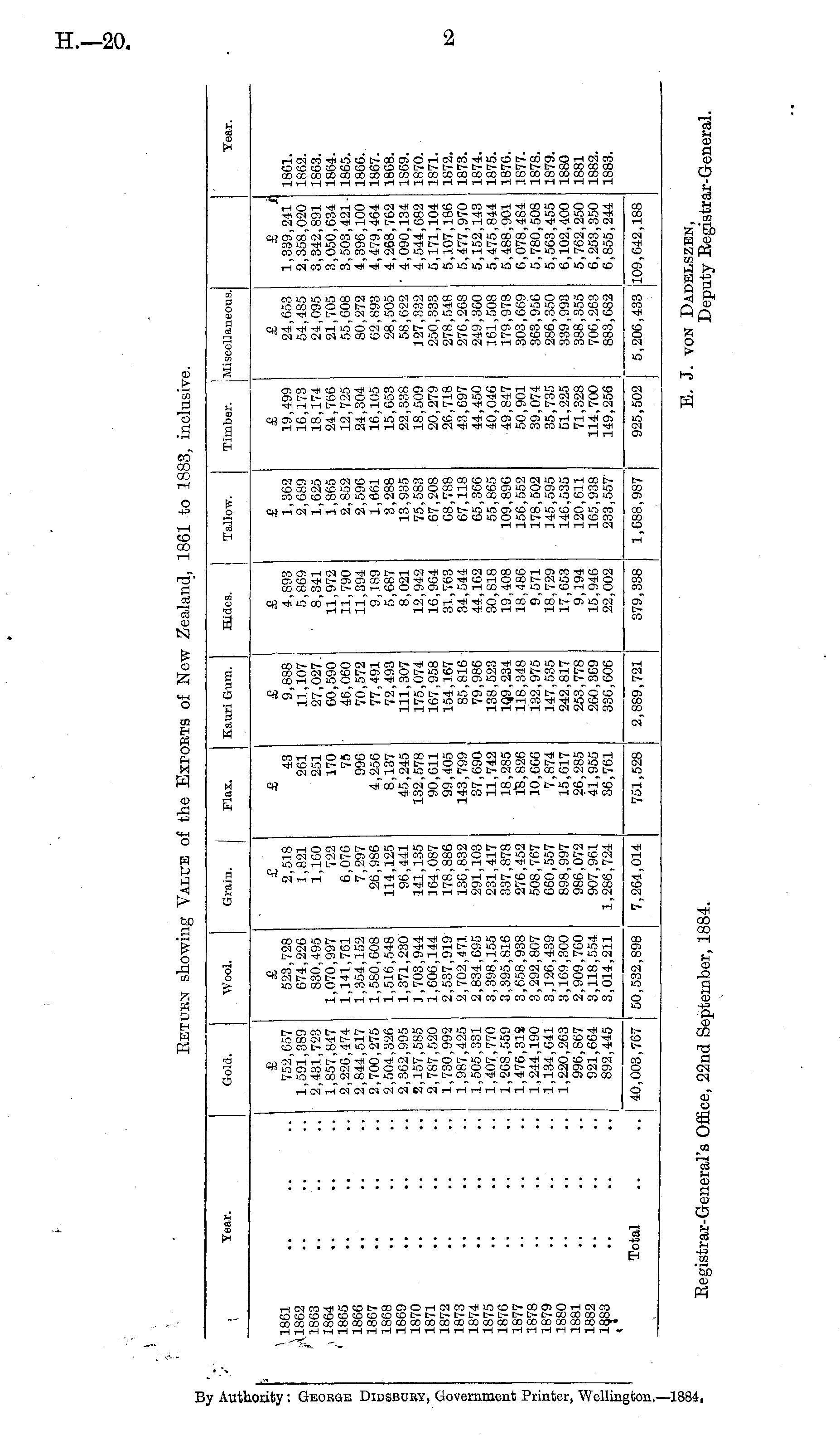 Return showing Value of the Exports of New Zealand, 1861 to 1883, inclusive.
