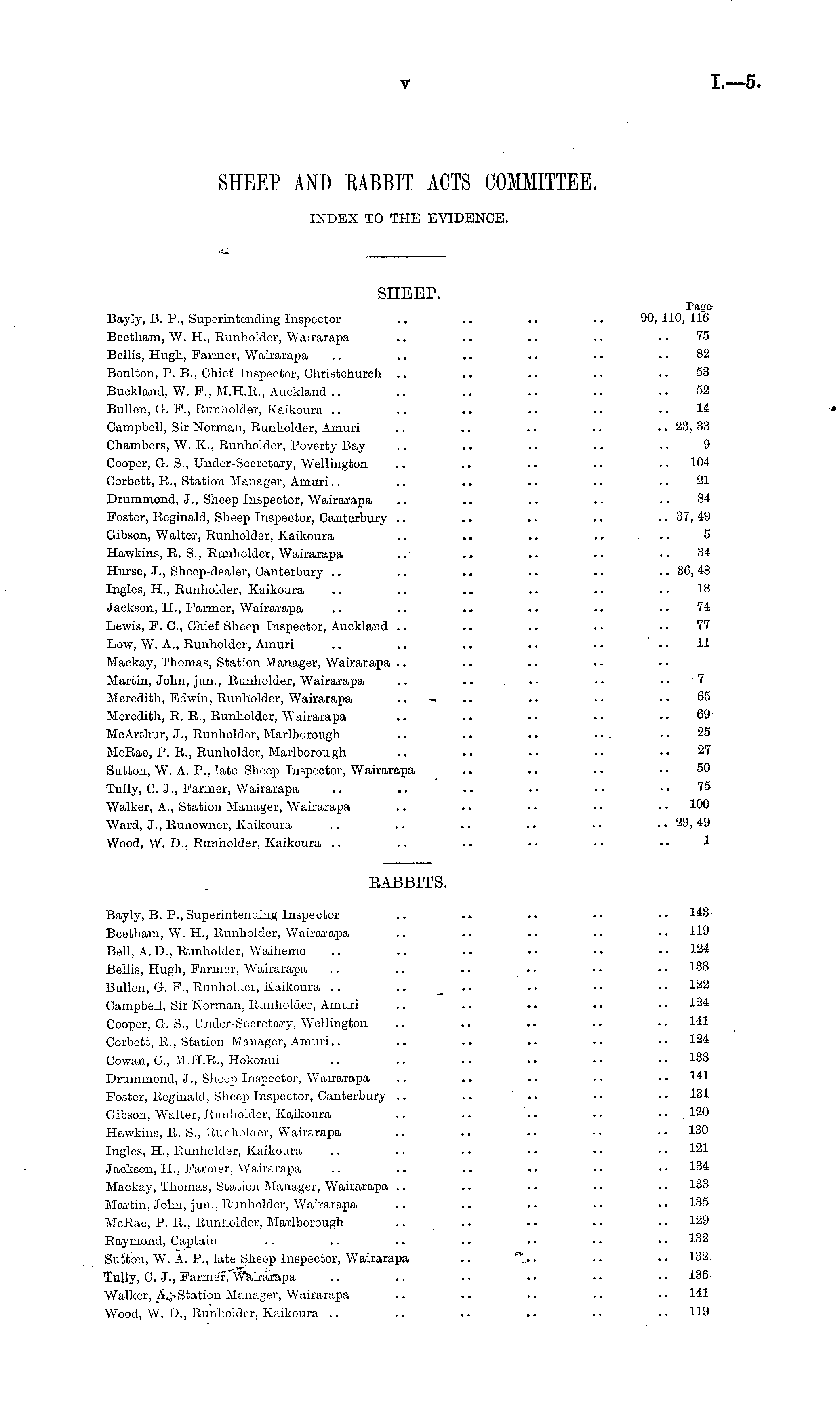 SHEEP AND RABBIT ACTS COMMITTEE. INDEX TO THE EVIDENCE.