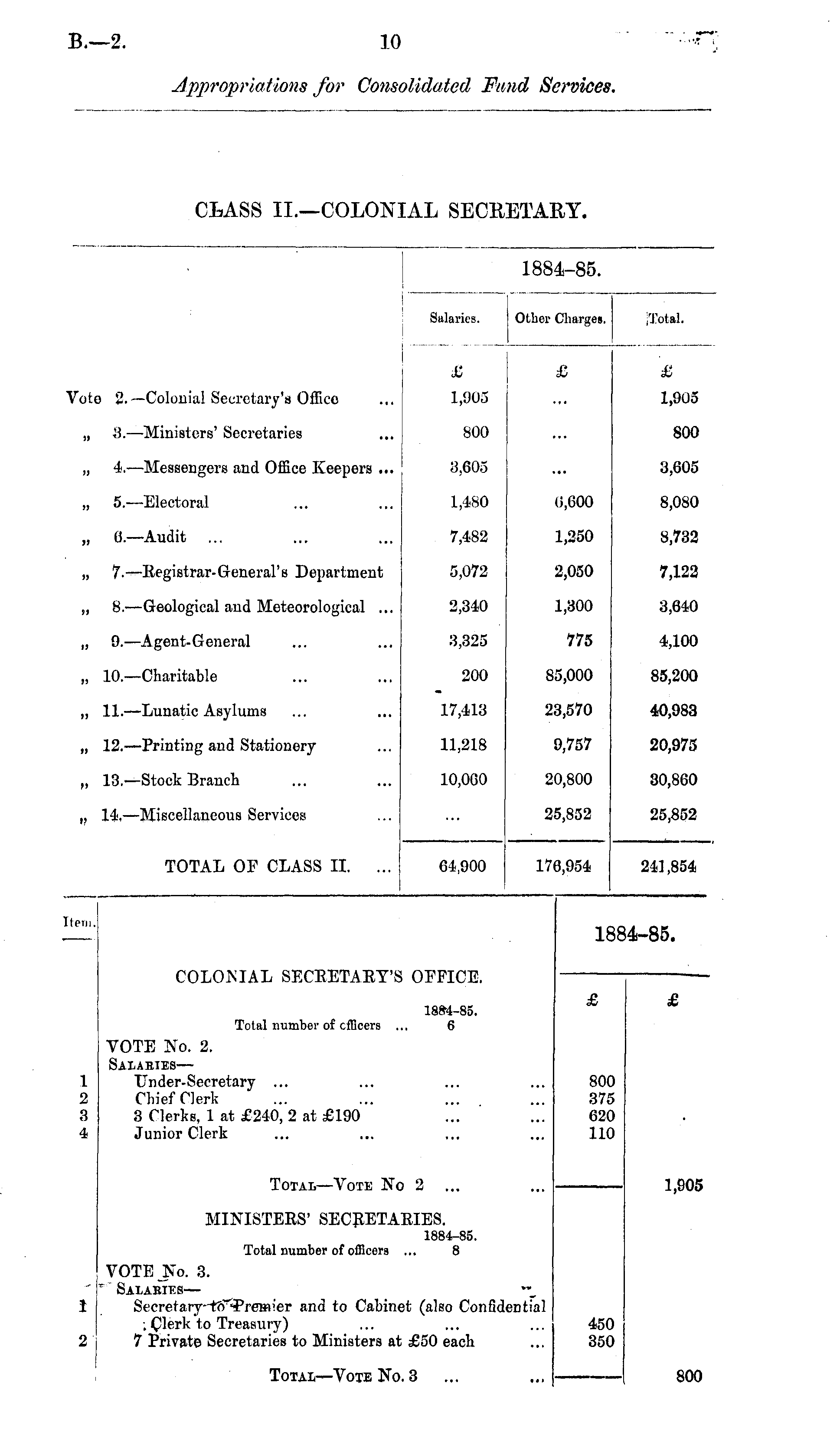 CLASS II.—COLONIAL SECRETARY.