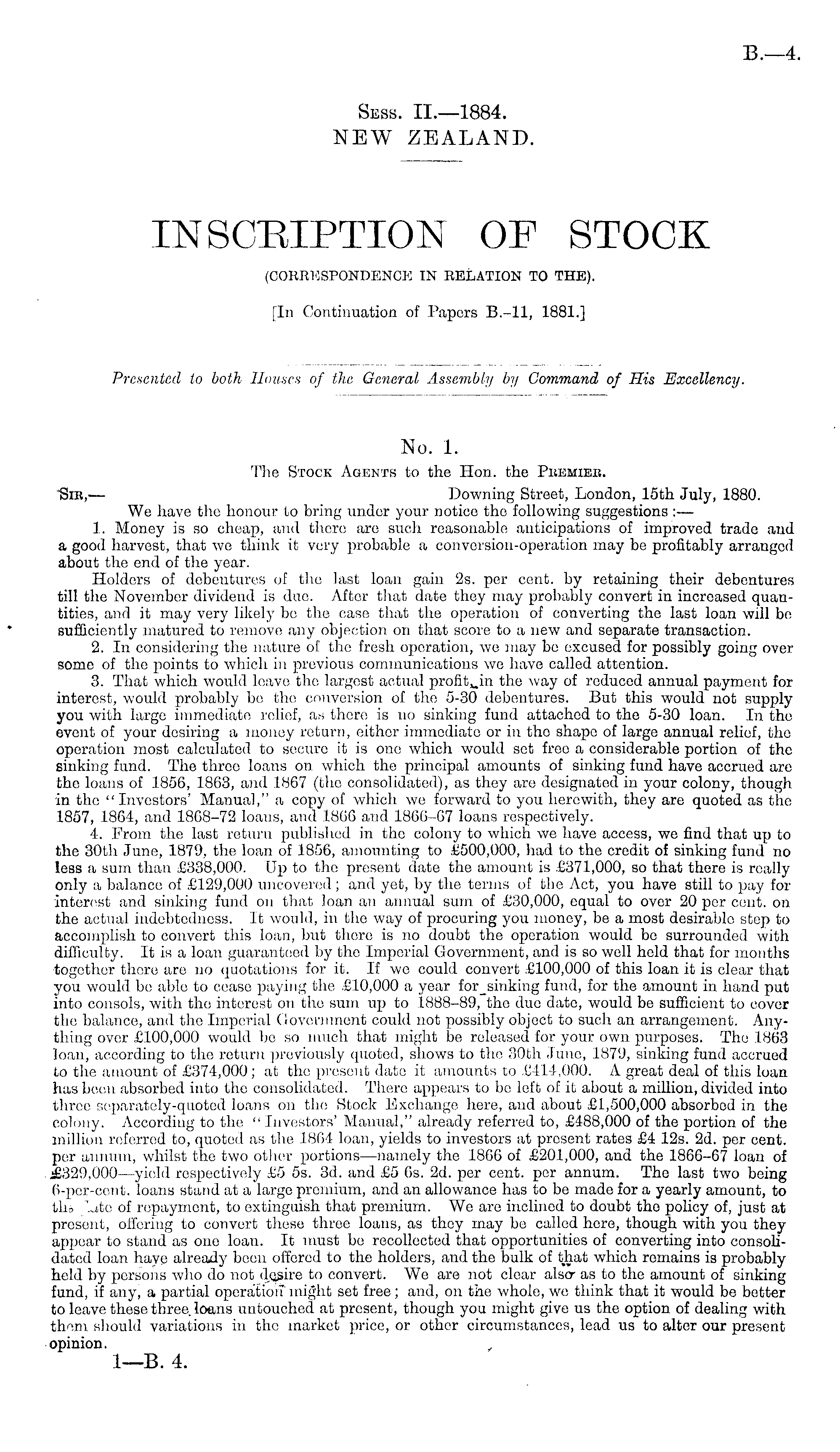 INSCRIPTION OF STOCK (CORRESPONDENCE IN RELATION TO THE). [In Continuation of Papers B.-11, 1881.]
