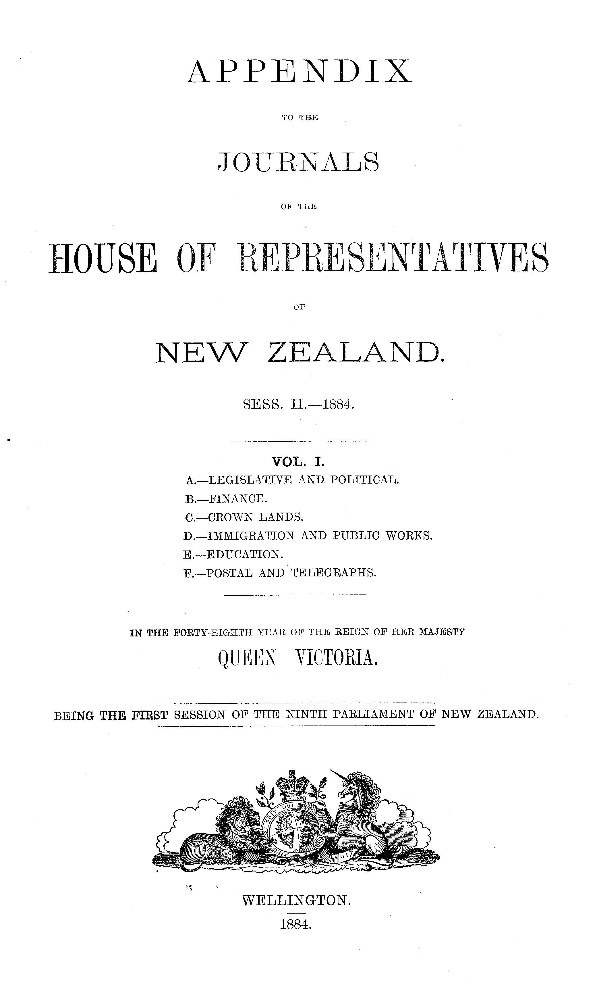 APPENDIX OF THE JOURNALS OF THE HOUSE OF REPRESENTATIVES OF NEW ZEALAND. SESS. II. 1884.