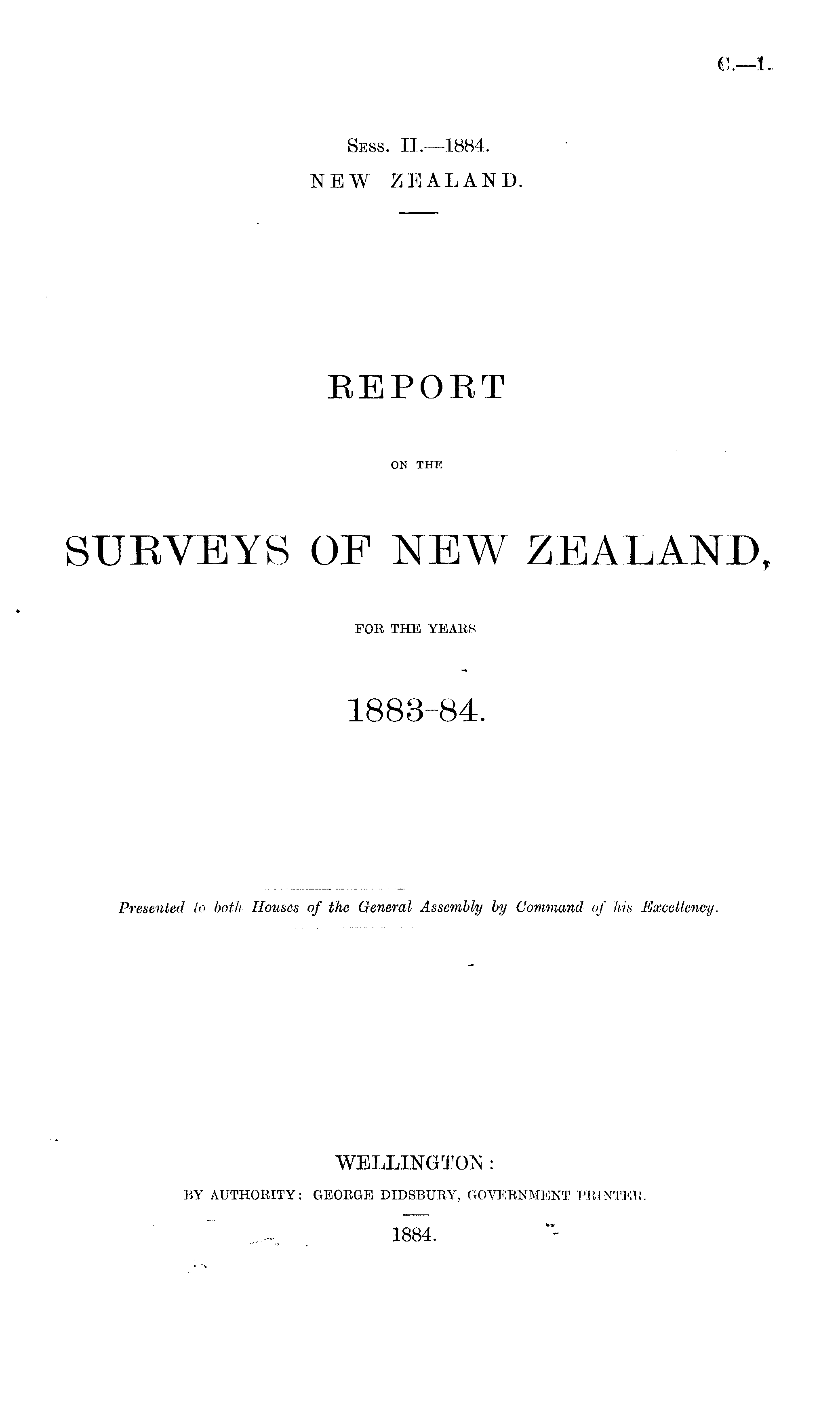 REPORT ON THE SURVEYS OF NEW ZEALAND, FOR THE YEARS 1883-84.