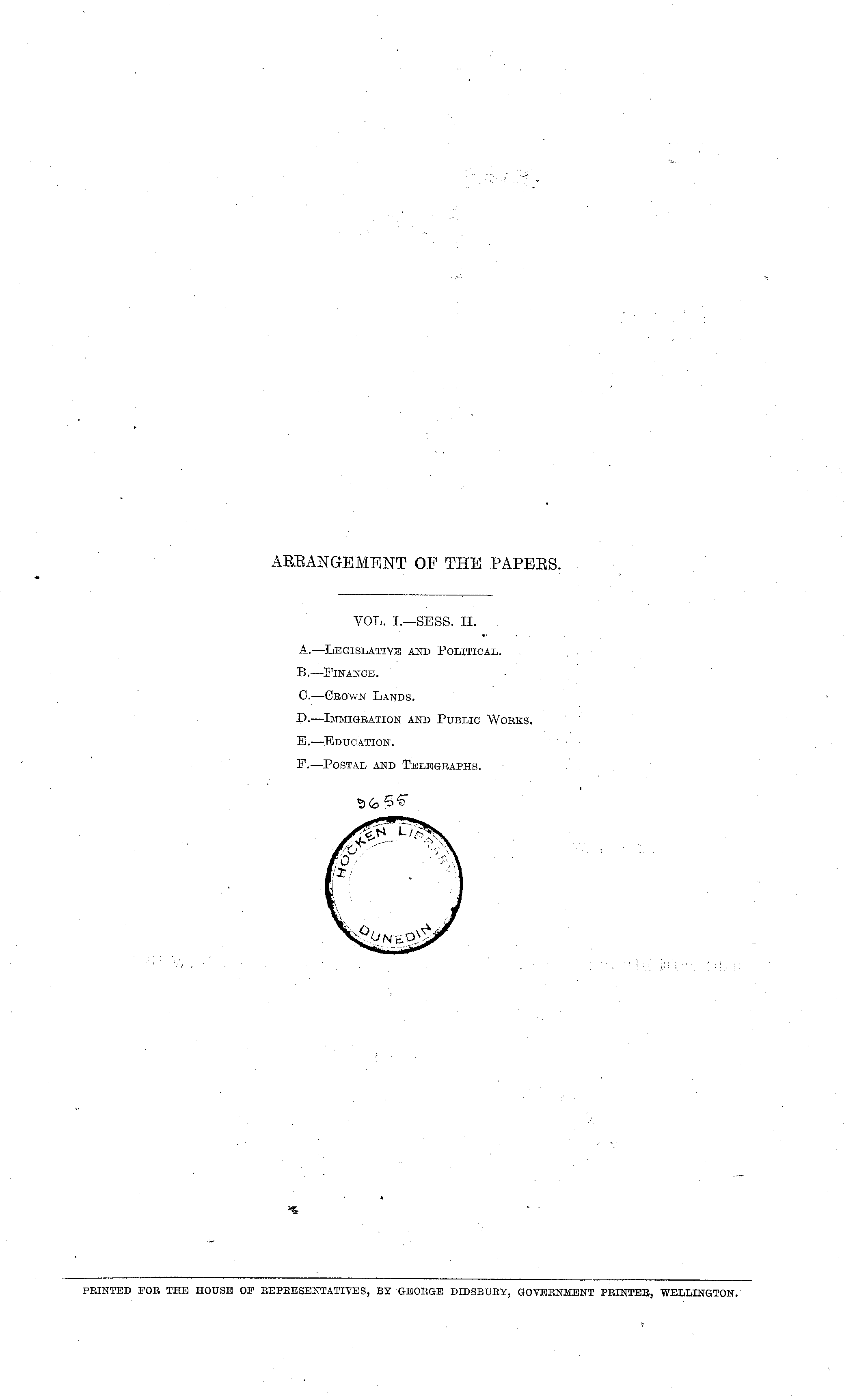 VOL. I.—SESS. 11. A. —Legislative and Political. B.—Finance. o.—Gbows Lands. D.—lmmigbation and Puelic Woeks. E. —Education. F.—Postal and Telegbaphs.
