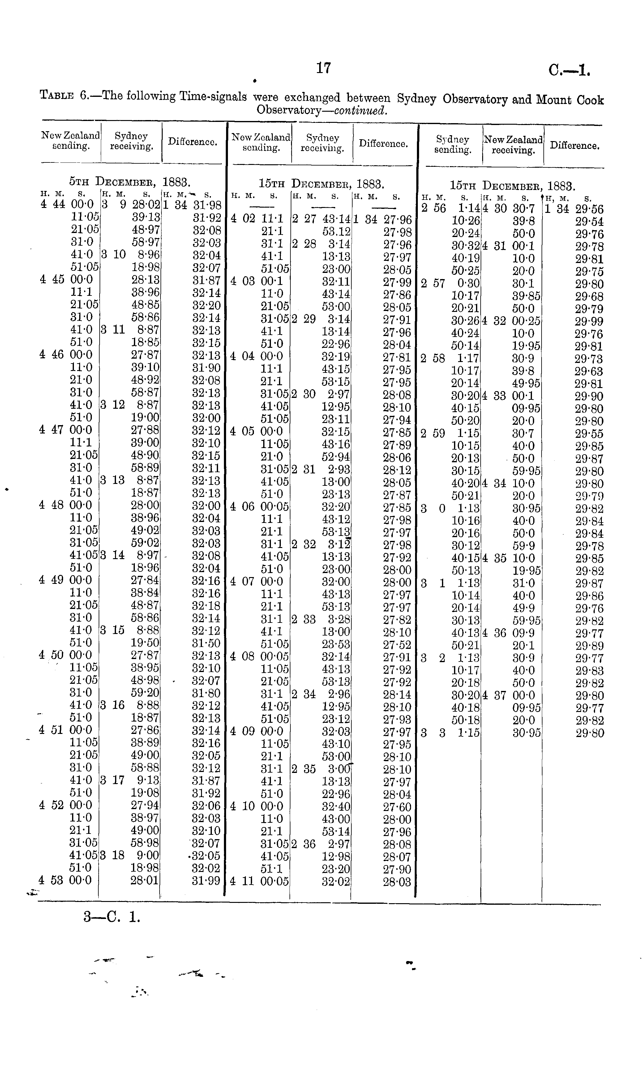 Table 6.—The following Time-signals were exchanged between Sydney Observatory and Mount Cook Observatory— continued.