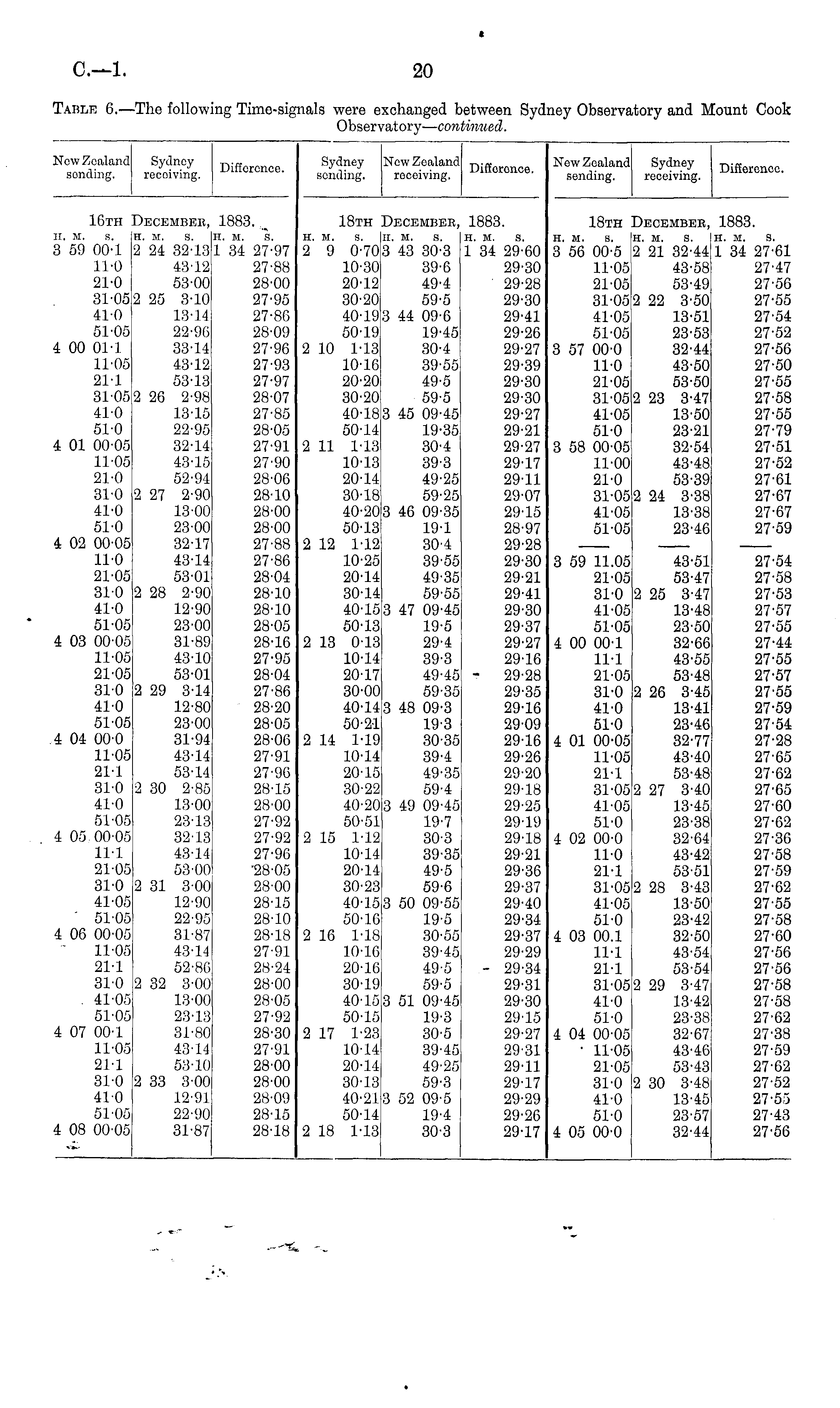 Table 6.—The following Time-signals were exchanged between Sydney Observatory and Mount Cook Observatory— continued.
