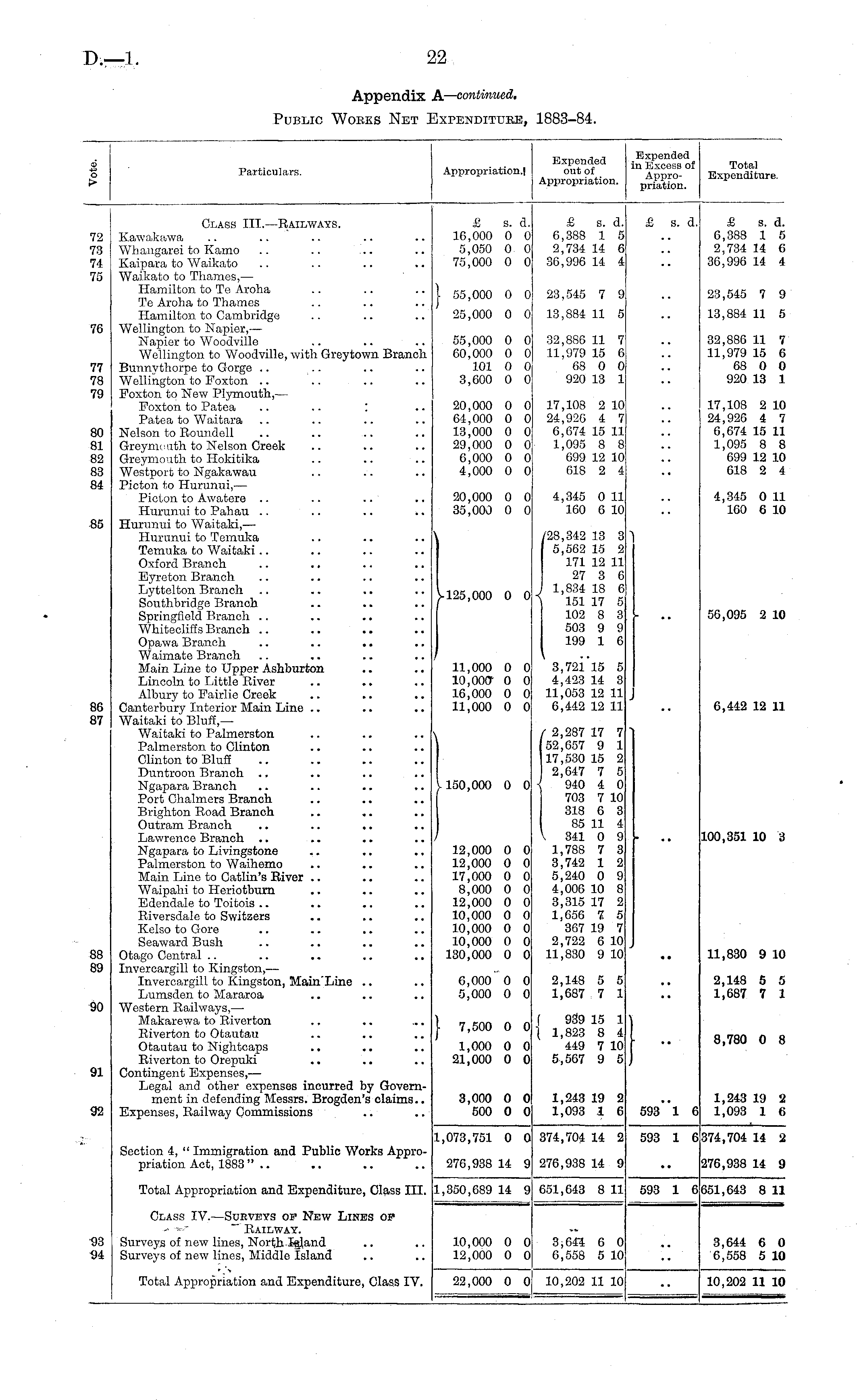 Appendix A—continued. Public Works Net Expenditure, 1883-84.