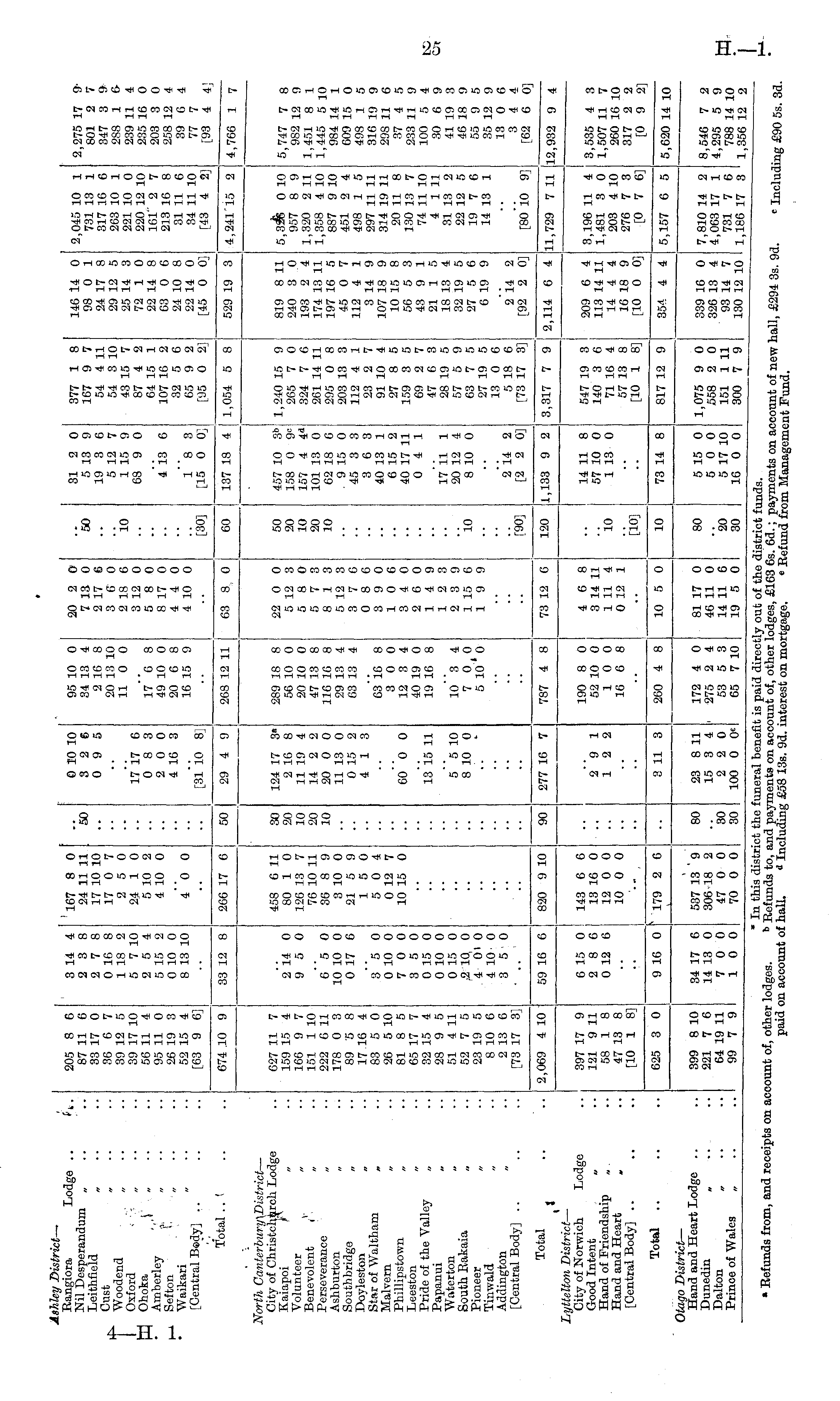 * In this district the funeral benefit is paid directly out of the district funds • Refunds from, and receipts on account of, other lodges. •> Eefunds to, and payments on account of, other lodges, £163 6s. 6d.; payments on account of new hall £294 3s 9d « TndnrKno eon <■ ?i paid on account of hall. " Including £58 13s. 9d. interest on mortgage. « Refund from Jlanagement Fund. ' mciuamg tyo ss. 3d.