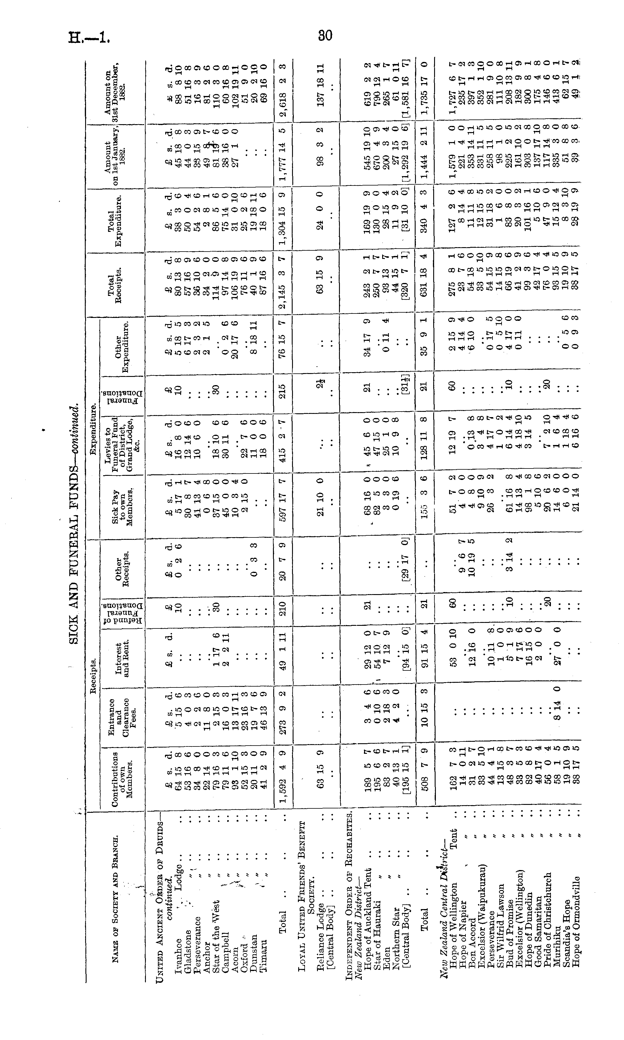 Name or Society and Branch. Contributions of own Members. Entrance and Clearance Fees. Interest and Kent. ih W Other Receipts. Sick Pay to own Members, Levies to Funeral Fund of District, Grand Lodge, &c. ?! Other Expenditure. Total Eeceipts. Total Expenditure. Amount on 1st January, 1882. Amount on 31st December, 1883. [Jkited Ancient Osder of Deuids — continued. Ivanhoe , Lodge Gladstone „ , .. Perseverance „ Anchor „ Star of the West „ .. Campbell „ Acorn \ „ Oxford ■' „ .. Dunstan k „ Timaru ■ „ £ s. a. 64 15 8 53 16 6 34 8 0 22 14 0 79 16 3 79 11 6 93 1 10 52 15 3 20 11 0 41 2 9 £ s. d. 5 15 6 4 0 3 2 2 6 11 8 0 2 15 3 16 0 3 13 17 11 23 16 3 19 7 6 46 13 9 £ s. d. 117 6 2 2 11 £ 10 '30 £ s. d. 0 2 6 £ s. d. 5 17 1 30 8 7 41 13 4 0 6 8 37 15 0 45 0 0 10 3 4 2 15 0 £ s. d. 16 8 0 12 14 6 10 C 0 18*10 6 30 11 6 £ 10 30 £ s. d. 5 18 5 6 17 3 2 3 2 2 15 £ s. d. 80 13 8 57 16 9 36 10 6 34 2 0 114 9 0 97 14 8 106 19 9 76 11 6 40 1 9 87 16 6 £ s. d. 38 3 6 50 0 4 54 2 6 2 8 1 86 5 6 75 14 0 31 0 10 25 2 6 19 18 11 18 0 6 £ s. d. 45 18 8 44 0 3 38 15 9 49 8 7 81 19 6 38 16 0 27 1 0 £ s. d. 88 8 10 51 16 8 16 3 9 81 2 6 110 3 0 60 16 8 102 19 11 51 9 0 20 2 10 69 16 0 02 6 20 17 6 o"3 3 22 7 6 11 0 0 18 0 6 8*18 11 Total .. 415 2-7 76 15 7 2,145 3 7 1,304 15 9 1,777 14 5 2,618 2 3 1,592 4 9 273 9 2 49 1 11 210 20 7 9 597 17 7 215 Loyal United Fkiends' Benefit Society. Reliance Lodge [Central Body] 63 15 9 21 10 0 21 63 15 9 24 0 0 98 3 2 137 18 11 Independent Okdeb of Eechabites. Neiv Zealand District — Hope of Auckland Tent Star of Hauraki Eden Northern Star [Central Body] 189 5 7 195 6 6 83 2 7 40 13 1 [195 15 1] 3 4 6 0 10 6 2 18 3 4 2 0 29 12 0 54 10 7 7 12 9 21 - 68 16 0 82 5 0 3 3 0 0 19 6 45 6 0 47 15 0 25 1 0 10 9 8 21 34 17 9 0 11 4 243 2 1 250 7 7 93 13 7 44 15 1 [320 7 1] 169 19 9 130 0 0 28 15 4 11 9 2 [31 10 0] 545 19 10 670 4 9 200 3 4 27 15 0 [1,292 19 6" 619 2 2 790 12 4 265 1 7 61 0 11 ri, 581 16 7 [94*15 0] [29 17 0J [31J] •• Total .. 508 7 9 10 15 3 91 15 4 21 155 3 6 128 11 8 21 35 9 1 631 18 4 340 4 3 1,444 2 11 1,735 17 0 New Zealand Central District — Hope of Wellington Tent Hope of Napier „ Bon Accord „ Excelsior (Waipukurau) „ Perseverance „ Sir Wilfrid Lawson „ Bud of Promise „ Excelsior (Wellington) „ Hope of Dunedin „ Good Samaritan „ Pride of Christchurch „ Muriliiku „ Scandia's Hope „ Hope of Ormondville „ 162 7 3 14 0 11 31 2 7 33 5 10 44 4 1 13 15 8 48 3 7 33 5 3 82 8 6 40 17 4 56 0 4 58 1 5 19 10 9 38 17 5 53 0 10 12*ie o 10 11 8 10 0 5 19 7 17 6 10 15 0 2 0 0 60 10 9 6 7 10 19 5 - 3 14 2 51 7 2 4 0 0 4 8 0 9 10 9 26 3 2 61 16 8 14 13 4 98 1 8 5 10 6 20 6 2 14 6 0 6 0 0 21 14 0 12 19 7 0 13 8 3 4 8 4 17 7 10 2 6 14 4 4 18 10 3 14 5 60 'io 2 15 9 4 14 4 6 10 0 0 17 5 0 5 10 4 17 0 0 11 0 275 8 1 23 7 6 54 18 0 33 5 10 54 15 9 14 15 8 66 19 6 41 2 9 99 3 6 42 17 4 76 0 4 93 15 5 19 10 9 3S 17 5 127 2 6 8 14 4 11 11 8 12 15 5 31 18 2 16 0 83 8 0 20 3 2 101 16 1 5 10 6 47 9 0 15 12 4 8 3 10 28 19 9 1,579 1 0 221 i 0 353 14 11 331 11 5 258 11 5 98 1 0 225 2 5 161 10 2 303 0 8 137 17 10 117 14 8 335 3 0 51 8 8 39 3 6 1,727 6 7 235 17 2 397 1 3 352 1 10 281 9 0 111 10 8 208 13 11 182 9 9 300 8 1 175 4 8 146 6 0 413 6 1 62 15 7 4? 1 2 - ao 7 2 10 16 4 1 18 4 6 16 6 '20 814 0 27*0 0 0 5 6 0 9 3 .. ..