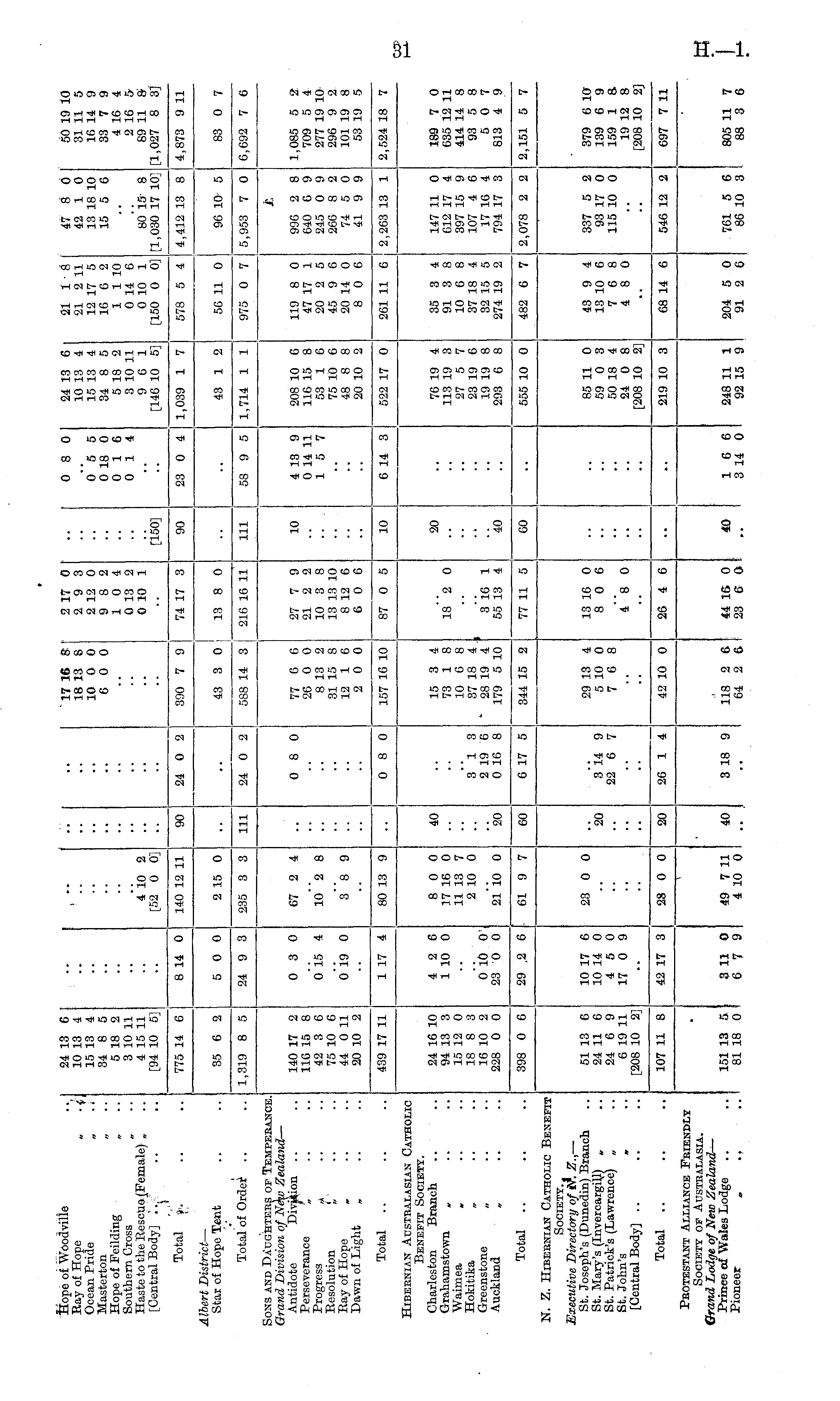 Hope o£ Woodville Ray of Hope „ ., Ocean Pride „ Masterton „ Hope of Feilding , Southern Cross „ Haste to the Ecscue (Female) „ [Central Body] Total .. 24 13 6 10 13 4 15 13 4 34 8 5 5 18 2 3 10 11 4 15 11 [94 10 5] -• " •• - I 17 16 8' 18 13 8 10 0 0 6 0 0 2 17 0 2 9 3 2 12 0 9 8 2 10 4 0 13 2 0 10 1 t 0 8 0 0 5 5 0 18 0 0 16 0 14 24 13 6 10 13 4 15 13 4 34 8 5 5 18 2 3 10 11 9 6 1 [146 10 5] 21 1-8 21 2 11 12 17 5 16 6 2 1 1 10 0 14 6 0 10 1 [150 0 0] 47 8 6 42 1 0 13 18 10 15 5 6 50 19 10 31 11 5 16 14 9 33 7 9 4 16 4 2 16 5 89 11 8f [1,027 8 3] - 410 2 [52 0 0] [150] 80 15 8 [1,030 17 10] 775 14 6 8 14 0 140 12 11 90 24 0 2 390 7 9 74 17 3 4,873 9 11 00 23 0 4 1,039 1 7 578 5 4 4,412 13 8 Albert District — Star of Hope Tent Total of Order .. 35 6 2 5 0 0 2 15 0 •■ 43 3 0 13 8 0 43 1 2 56 11 0 96 10 5 83 0 7 1,319 8 5 24 9 3 235 3 3 111 24 0 2 588 14 3 216 16 11 6,692 7 6 111 58 9 5 1,714 1 1 975 0 7 5,953 7 0 Sons and Daughters op Temperance. Grand Division of New Zealand — ■ Antidote Division Perseverance „ Progress „ ;, Eay of Hope „ Dawn of Light „ I |. 140 17 2 110 15 8 42 3 6 75 10 6 44 0 11 20 10 2 0 3 0 0 15 4 G7 2 4 10 2 8 0 8 0 77 6 6 26 0 0 8 13 2 31 15 8 12 1 6 2 0 0 27 7 9 21 2 2 10 3 8 13 13 10 8 12 6 6 0 0 10 4 13 9 0 14 11 15 7 208 10 6 116 15 8 53 1 6 75 10 6 48 8 8 20 10 2 119 8 0 47 17 1 20 2 5 45 9 6 20 14 0 8 0 6 996 2 8 G40 6 9 245 0 9 2G6 8 2 74 5 0 41 9 9 1,085 5 2 709 5 4 277 19 10 296 9 2 101 19 8 53 19 5 0 19 0 3"8 9 Total .. 439 17 11 1 17 4 80 13 9 0 8 0 157 16 10 87 0 5 10 6 14 3 522 17 0 261 11 6 2,263 13 1 2,524 18 7 Hibernian Australasian Catholic Benefit Society. Charleston Branch Grahamstown „ Waimea „ Hokitika „ Greenstone „ Auckland , .1 I 24 16 10 94 13 3 15 12 0 18 8 3 16 10 2 228 0 0 4 2 6 1 10 0 40 8 0 0 37 16 0 11 13 7 2 10 0 3 13 2 19 6 0 16 8 15 3 4 73 1 8 10 G 8 37 18 4 28 19 4 179 5 10 18"2 0 20 76 19 4 113 19 3 27 5 7 23 19 6 19 19 8 293 6 8 35 3 4 91 3 8 10 6 8 37 18 4 32 15 5 274 19 2 147 11 0 612 17 4 397 15 9 107 4 6 17 16 4 794 17 3 189 7 0 635 12 11 414 14 8 93 5 8 5 0 7 813 i 9 0 10 0 23 0 0 2110 0 -20 3 16 1 55 13 4 '40 Total .. 60 398 0 6 29 2 6 61 9 7 6 17 5 344 15 2 77 11 5 GO 555 10 0 482 6 7 2,078 2 2 2,151 5 7 N. Z. Hibernian Catholic Benefit Society. , Executive Directory of N. Z., — St. Joseph's (Dunedin) Branch St. Mary's (Invereargill) „ St. Patrick's (Lawrence) „ St. John's „ [Central Body] 51 13 6 24 11 6 24 6 9 6 19 11 [208 10 2] 10 17 6 10 14 0 4 5 0 17 0 9 23 0 0 '20 3 14 9 22 6 7 29 13 4 5 10 0 7 6 8 13 16 0 8 0 6 85 11 0 59 0 3 50 18 4 24 0 8 [208 10 2] 43 9 4 13 10 6 7 6 8 4 8 0 337 5 2 93 17 0 115 10 0 379 6 10 139 6 9 159 1 a 19 12 8 [208 10 2] 4 8 0 Total .. 107 11 8 42 17 3 23 0 0 20 26 1 4 42 10 0 26 4 6 219 10 3 68 14 6 546 12 2 697 7 11 psotestant alliance friendly Society of Australasia. Grand Lodge of New Zealand— Prince of Wales Lodge Pioneer „ ., .. 151 13 5 81 18 0 761 5 6 86 10 3 I 805 11 7 88 3 6 3 11 0 6 7 9 49 7 11 i 10 0 40 3 18 9 118 2 6 64 2 & U 16 0 23 6 0 ■to 16 6 3 14 0 248 11 1 92 15 9 204 5 0 91 2 6 * >