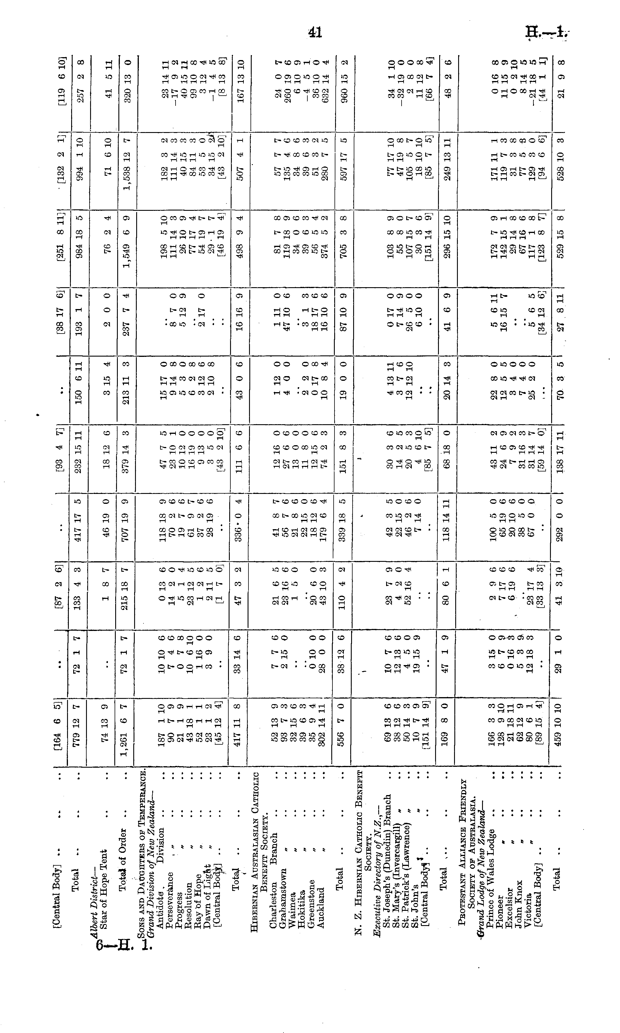 [Central Body] .. .. .. I [164 6 5] [87 2 6] [93 4 7] [38 17 6] [251 8 11] [132 2 1] [119 6 10] Total .. 779 12 7 72 1 7 133 4 3 417 17 5 232 15 11 150 6 11 193 1 7 984 18 5 994 1 10 257 2 8 Albert District — Star of Hope Tent 74 13 9 18 7 46 19 0 18 12 6 3 15 4 2 0 0 76 2 4 71 6 10 41 5 11 Total of Order 1,261 6 7 72 1 7 215 18 7 707 19 9 379 14 3 213 11 3 237 7 4 1,549 6 9 1,538 12 7 320 13 0 Sons and Daughters of Temperance. Grand Division of New Zealand — Antidote . Division Perseverance „ Progress „ Resolution Bay of Hope Dawn of Light „ [Central Body] 187 1 10 90 7 9 21 1 9 43 18 1 52 1 1 23 1 2 [45 12 4] 10 10 6 7 4 6 0 7 8 10 6 10 1 16 0 3 9 0 0 13 6 14 2 0 5 14 23 12 5 12 6 2 11 5 [1 7 0] 118 18 9 70 2 6 19 7 6 61 9 7 37 2 6 28 19 6 47 7 5 23 10 1 10 12 0 16 19 0 9 13 0 3 5 0 [43 2 10] 15 17 0 9 14 8 5 3 0 6 2 8 3 12 6 2 10 8 8' 7 0 5 12 9 198 5 10 111 14 3 26 10 9 77 17 4 54 19 7 29- 1 7 [46 19 4] 182 3 2 111 14 3 40 15 3 84 11 3 53 5 0 34 15 2i" [43 2 10] 23 14 11 -17 9 2 40 15 11 99 10 8 3 12 4 -14 5 [8 13 8] a"i7 o Total 417 11 8 33 14 6 47 3 2 336-0 4 111 6 6 43 0 6 16 16 9 498 9 4 507 4 1 167 13 10 Hibernian Australasian Catholic Benefit Society. Charleston Branch Grahamstown „ Waimea „ Hokitika „ Greenstone „ Auckland „ 52 13 9 93 7 3 32 15 6 39 6 3 35 9 4 302 14 11 7 7 6 2 15 0 21 6 5 23 16 6 15 0 41 8 7 56 7 6 21 8 6 22 15 0 18 12 6 179 6 4 12 16 0 27 6 6 13 0 0 11 8 0 12 15 6 74 2 3 1 12 0 4 0 0 1 11 0 47 10 6 81 7 8 119 18 9 34 0 6 39 6 3 56 5 4 374 5 2 57 7 7 135 4 G 34 8 6 39 6 3 51 3 2 280 7 5 24 0 7 260 19 6 6 10 9 -4 5 1 36 10 0 632 14 4 010 0 28 0 0 20' 0 0 43 10 3 2 2 0 0 17 8 10 8 4 3 13 18 17 6 16 10 6 Total .. 556 7 0 38 12 6 110 4 2 339 18 5 151 8 3 19 0 0 87 10 9 705 3 8 597 17 5 960 15 2 N. Z. Hibernian Catholic Benefit Society. Executive Directory of N.Z., — St. Joseph's (Dunedin) Branch St. Mary's (Invercargill) „ St. Patrick's (Lawrence) „ St. John's „ [Central Body?'.. 69 13 6 38 12 6 50 14 3 10 7 9 [151 14 9J 10 7 6 12 13 6 4 5 0 19 15 9 23 7 9 4 2 0 52 10 4 42 3 5 22 15 0 46 2 6 7 14 0 30 3 6 14 2 5 20 5 3 4 6 10 [85 7 5] 4 13 11 3 7 6 12 12 10 0 17 0 7 14 9 26 5 0 6 10 0 103 8 9 55 8 0 107 15 7 30 3 6 [151 14 9] 77 17 10 47 19 8 105 5 7 18 10 10 [85 7 5] 34 1 10 -32 19 0 2 8 0 11 12 8 [66 7 4] Total .. 169 8 0 47 1 9 80 6 1 118 14 11 68 18 0 20 14 3 41 6 9 296 15 10 249 13 11 48 2 6 Protestant Alliance Friendly Society of Australasia. Grand Lodge of New Zealand — Prince of Wales Lodge Pioneer » Excelsior „ John Knox „ Victoria „ [Central Body] 166 3 3 128 9 10 21 18 11 62 12 9 80 6 1 [89 15 4] 3 IS 0 6 7 9 0 16 3 5 3 9 12 18 3 2 9 6 7 17 6 6 19 6 100 5 0 65 19 6 20 10 0 38 5 0 67 0 0 43 11 2 24 6 9 7 9 2 31 16 3 31 14 7 [59 14 01 22 8 0 12 5 5 3 4 0 7 4 0 25 2 0 5 6 11 16 15 7 172 7 9 142 15 1 29 14 8 67 16 6 117 1 8 [123 8 7] 171 11 1 119 7 3 31 3 8 77 5 3 129 3 0 [94 6 6] 0 16 8 11 15 9 0 2 10 8 14 5 -21 18 5 [44 1 1] 23 17 4 [33 13 3] 5 6 5 [34 12 6] Total .. 459 10 10 29 1 0 41 3 10 292 0 0 138 17 11 70 3 5 27 8 11 529 15 8 528 10 3 21 9 8