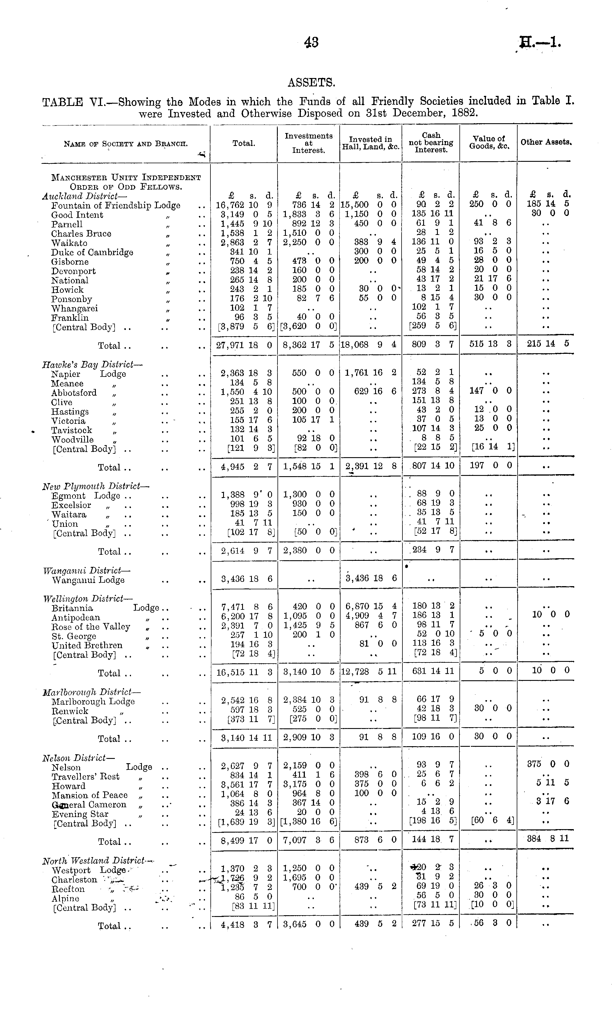 ASSETS. TABLE VI.—Showing the Modes in which the Funds of all Friendly Societies included in Table I. were Invested and Otherwise Disposed on 31st December, 1882.