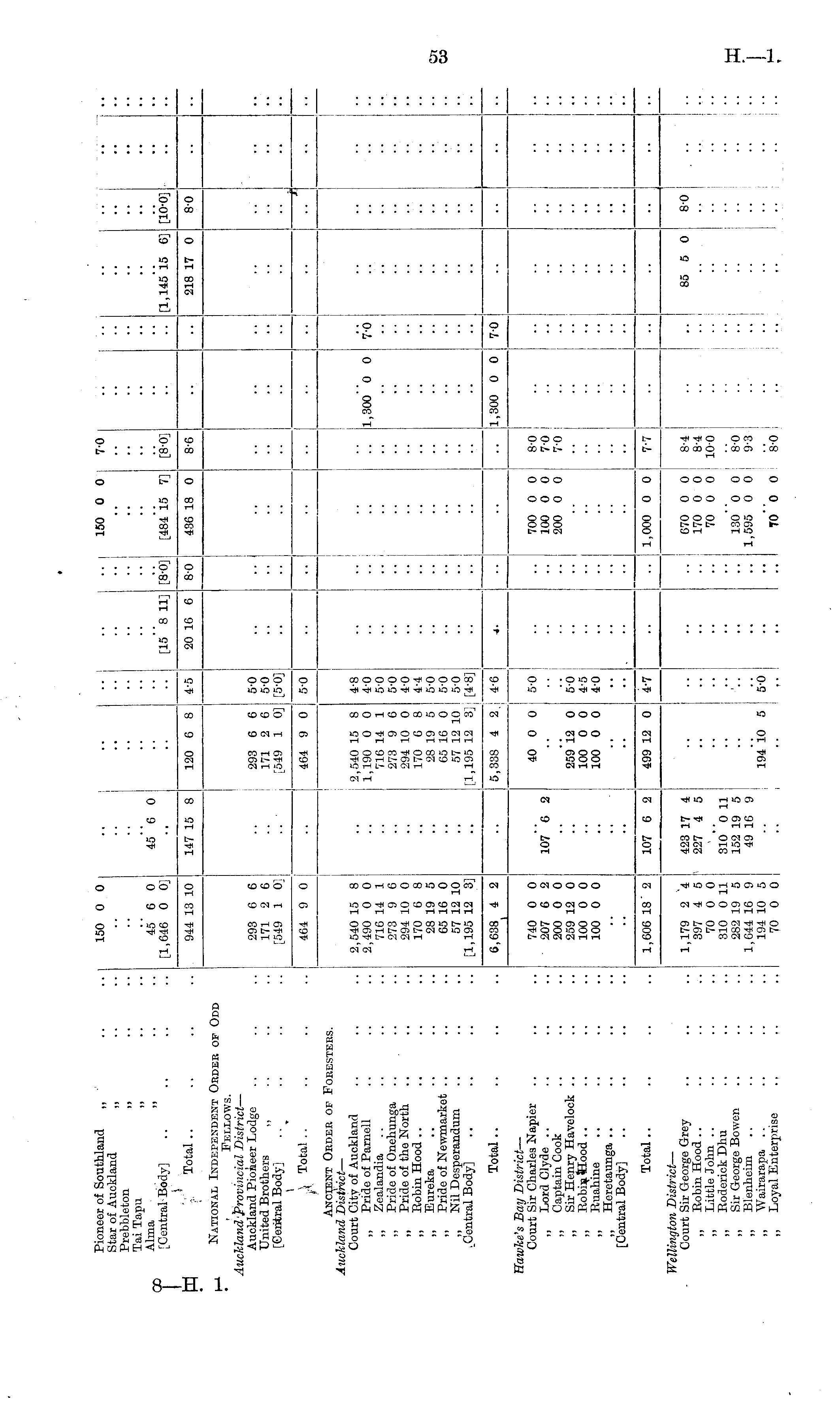 Pioneer of Southland ,, Star of Auckland „ Prebbleton ,, Tai Tapu Alma ,, [Central Body] Total 150 0 0 I 45' 6 0 [1,646 0 0] 944 13 10 45"6 0 [15 "8 11] [8-6] 150 0 0 [484 15 7] 7-0 , i [8-0] 8-6 [1,145 15 6] •• 1 [10-0] 8-0 I •• 147 15 8 120 6 8 4'5 20 16 6 8-0 436 18 0 218 17 0 •- National Independent Oedeb op Odd Fellows. Auckland Provincial District — Auckland Pioneer Lodge United Brothers ,, [Central Body] Total 293 6 6 171 2 6 [549 1 Q293 6 6 171 2 6 [549 1 0] 5-0 I 5-0 ! [5-0] J 5-0 •• •• •• •• •• .. ■ ■ ! ■j I 1 i 464 9 0 464 9 0 .. 1 •• ! ■■ " ' : ; ! 1 Ancient Obdeb op Fobestees. iuckland District — Court City of Auckland ,, Pride of Parnell ,, Zealandia ,, Pride of Onehunga ,, Pride of the North „ Bobin Hood ,, Eureka ,, Pride of Newmarket .. ,, Nil Desperandum Uentral Body] 2,540 15 8 2,490 0 0 716 14 1 273 9 6 294 10 0 170 6 8 28 19 5 65 16 0 57 12 10 [1,195 12 3] 2,540 15 8 1,190 0 0 716 14 1 273 9 6 294 10 0 170 0 8 28 19 5 65 16 0 57 12 10 [1,195 12 3] 4-8 4-0 50 5-0 4-0 4-4 50 5-0 50 [4-8] • • '' •• : " 1,300 0 0 "' 7'0 i '• .. .. •• : ; •• •• •• - - .. •• •• I - i •• Total .. . \ 6,638 4 2 5,338 4 2 4-6 1,300 0 0 j 7-0 I 1 •• •• •• ■• Hawke's Bay District — Court Sir Charles Napier ,, Lord Clyde .. „ Captain Cook „ Sir Henry Havelock ,, Bobin Hood ,. ,, Buahine ,, Heretaunga [Central Body] I ! 1 740 0 0 207 6 2 200 0 0 259 12 0 100 0 0 100 0 0 107 6 2 40 0 0 50 700 0 0 100 0 0 200 0 0 i 8-0 7-0 7-0 • I •• 259 12 0 100 0 0 100 0 0 5-0 4-5 4-0 .. ! ■• •• " " i "" I - - I " •■ "• I • " • - I . ; l •■ ! - - - • - .. •• •• I •• i • • i • • ■• • • ! •• •• •■ Total 1,606 18' 2 : 107 6 2 I 499 12 0 4-7 1,000 0 0 7-7 Wellington District — Court Sir George Grey ,, Bobin Hood .. ,, Little John .. ,, Boderick Dhu ,, Sir George Bowen ,, Blenheim ,, Wairarapa .. ,, Loyal Enterprise .. ,. 1,179 2 4 397 4 5 70 0 0 310 0 11 282 19 5 1,644 16 9 194 10 5 70 0 0 423 17 4 227 4 5 310 0 11 152 19 5 49 16 9 I •• i 670 0 0 170 0 0 70 0 0 130 "0 0 1,595 0 0 8-4 8-4 100 I 1 85 5 0 ! 8-o ; ■• I I . . I . . 8-0 93 I 194 io 5 5-6 8-0 I •• I '• T0"0 0 ! .. I