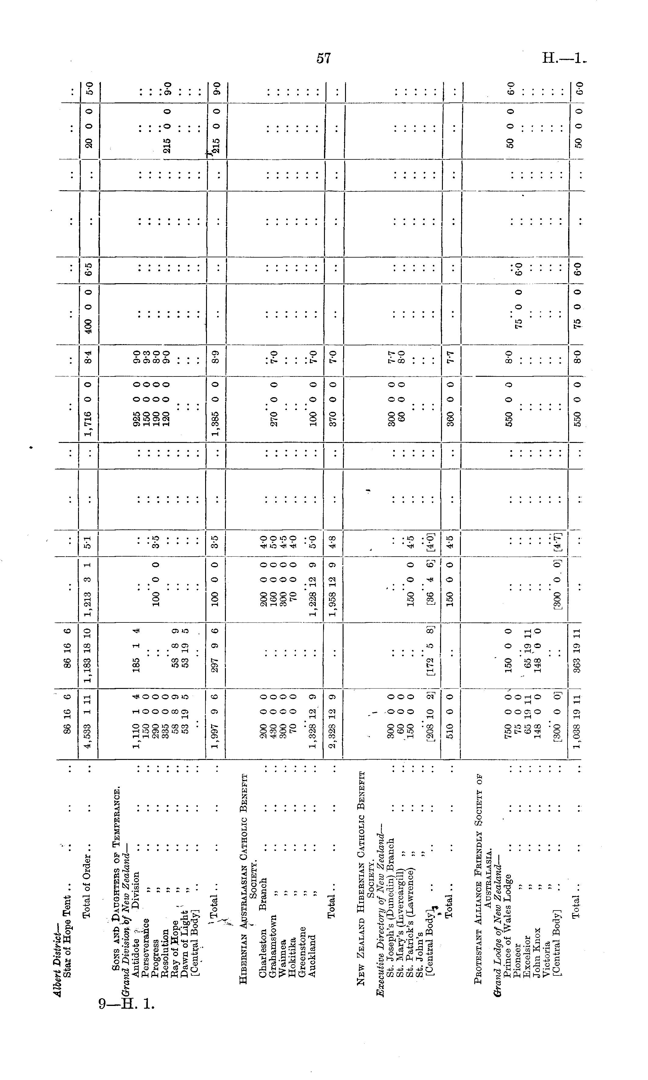 Ibert District — Star of Hope Tent .. .If , 86 16 6 I 86 16 6 •• •■ Total of Order 4,533 1 11 6-5 1,183 18 10 1,213 3 1 | 5-1 •• 1,716 0 0 8-4 400 0 0 j 20 0 0 j 5-0 •• i l Sons and Daughtees of Tempeeance. Wand Division of New Zealand — Antidote Division Perseverance ,, Progress ,, Besolution ,, Bay of Hope , „ Dawn of Light „ [Central Body] 1,110 1 4 150 0 0 290 0 0 335 0 0 58 8 9 53 19 5 185 1 4 •• 100 "o 0 ■• 3*5 925 0 0 150 0 0 190 0 0 120 0 0 9-0 9-3 8-0 9-0 - " 58**8 9 53 19 5 •• - | 215 '6 0 90 - i •• " I •• Total 1,997 9 6 297 9 6 100 0 0 I 3-5 8-9 215 0 0 | i i 9-0 ! ' •• •• 1,385 0 0 i i •• 1 •• — •• ! •• hlbeenian austbalasian catholic benefit Society. Charleston Branch Grahamstown ,, Waimea ,, Hokitika ,, Greenstone ,, Auckland ,, 200 0 0 430 0 0 300 0 0 70 0 0 200 0 0 160 0 0 300 0 0 70 0 0 4-0 5-0 4-5 40 •• 270 "o 0 7-0 •• •■ .. j i .. .. - 1,328 12 9 1,228*12 9 5*6 100 "o 0 7*0 •• •• •• Total 2,328 12 9 1,958 12 9 4-8 370 0 0 7-0 ! | ; I i l • — New Zealand Hieebnian Catholic Benefit Society. Ixecutive Directory of New Zealand — St. Joseph's (Dunedin) Branch St. Mary's (Invereargill) ,, St. Patrick's (Lawrence) ,, St. John's ,, [Central Body], Total 300 0 0 60 0 0 150 0 0 - 150**0 0 ' •• 4-5 •■ 300 0 0 60 0 0 7-7 8-0 •■ •• ■• •• ■• .. .. ' [208 10 8] 510 0 0 [172 5 8] [36 4 6] 150 0 0 [4*6] I i •• i •■ ' '■ i I 360 0 0 7-7 I j L_ I I 1 .. .. •• .. ' I I i ■ i , ' Pbotestant Alliance Friendly Society op Australasia. Wand Lodge of Neil) Zealand — Prince of Wales Lodge Pioneer ,, Excelsior ,, John Knox ,, Victoria ,, [Central Body] 750 0 0 75 0 0 65 19 11 148 0 0 150 0 0 65 19 11 148 0 0 •■ 550 0 0 8-0 I 75 "o 0 ! 6-6 50 0 0 I 6-0 ! '* !•• .. .. I •• [300 0 0] [300 0.0]' [4*7] - - •■ - - Total 1,038 19 11 I 363 19 11 i I I 550 0 0 8-0 ! 00 •• 75 0 0 6-0 50 0 0