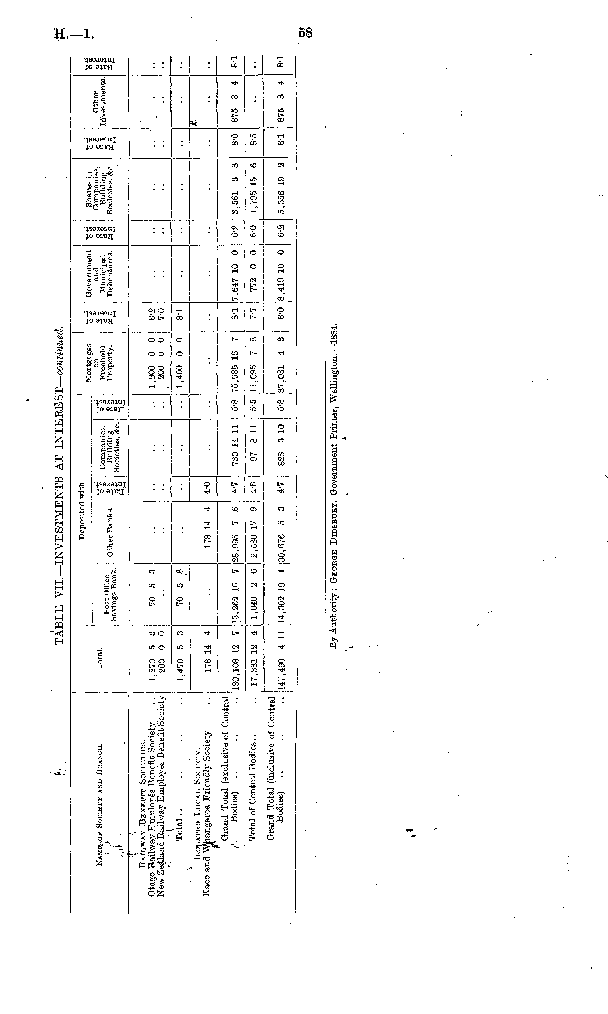 Name of Society and Beanch. Post Office n+1-.ov n«nVa ® £ Savings Bank. Other Hank*. Deposited with Oil Freehold Property. i -§2 j M5 Government and Municipal Debentures. 1H +i Shares in Companies, Building Societies, &c. 5S ■ Other Investments. II Total. Companies, Building Societies, &c. PiAilv.'ay Benefit Societies. Otago Railway Emplo^res Benefit Society New Zealand Railway Employes Benefit Society Total I 1,270 5 3 200 0 0 70 5 3 j ■• •• I •■ 1,200 0 0 i 8-2 200 0 0 j 7-0 1,400 0 0 I 8-1 ■■ •• | 1,470 5 3 1 ! 70 5 3 I i • ■ •• I I •• I I Isolated Local Society. Kaeo and Whangaroa Friendly Society Grand Total (exclusive of Central Bodies) 178 14 4 178 14 4 4-0 — H 5-8 75,935 16 7 . . I •• !— I • ■ 4-7 7,047 10 0 ! &A 81 130,108 12 7 13,962 16 7 128,095 7 6 730 14 11 8-1 I I 3,561 3 8 ; 8-0 875 3 4 Total of Central Bodies 2,580 17 9 4-8 97 8 11 5-5 111,00S 7 8 ' 5-8 87,031 4 3 i 7-7 772 0 0 \ 6-0 1 I 1,795 15 6 i 1 I 8-5 ■■ 17,381 12 4 1,040 2 6 Grand Total (inclusive of Central Bodies) I i ' i . ! 1 14,302 19 1 [30,676 5 3 ! 4-7 828 3 10 8-0 8,419 10 0 1 I 6-2 5,356 19 2 ; 8-1 875 3 4 8-1 [147,490 4 11