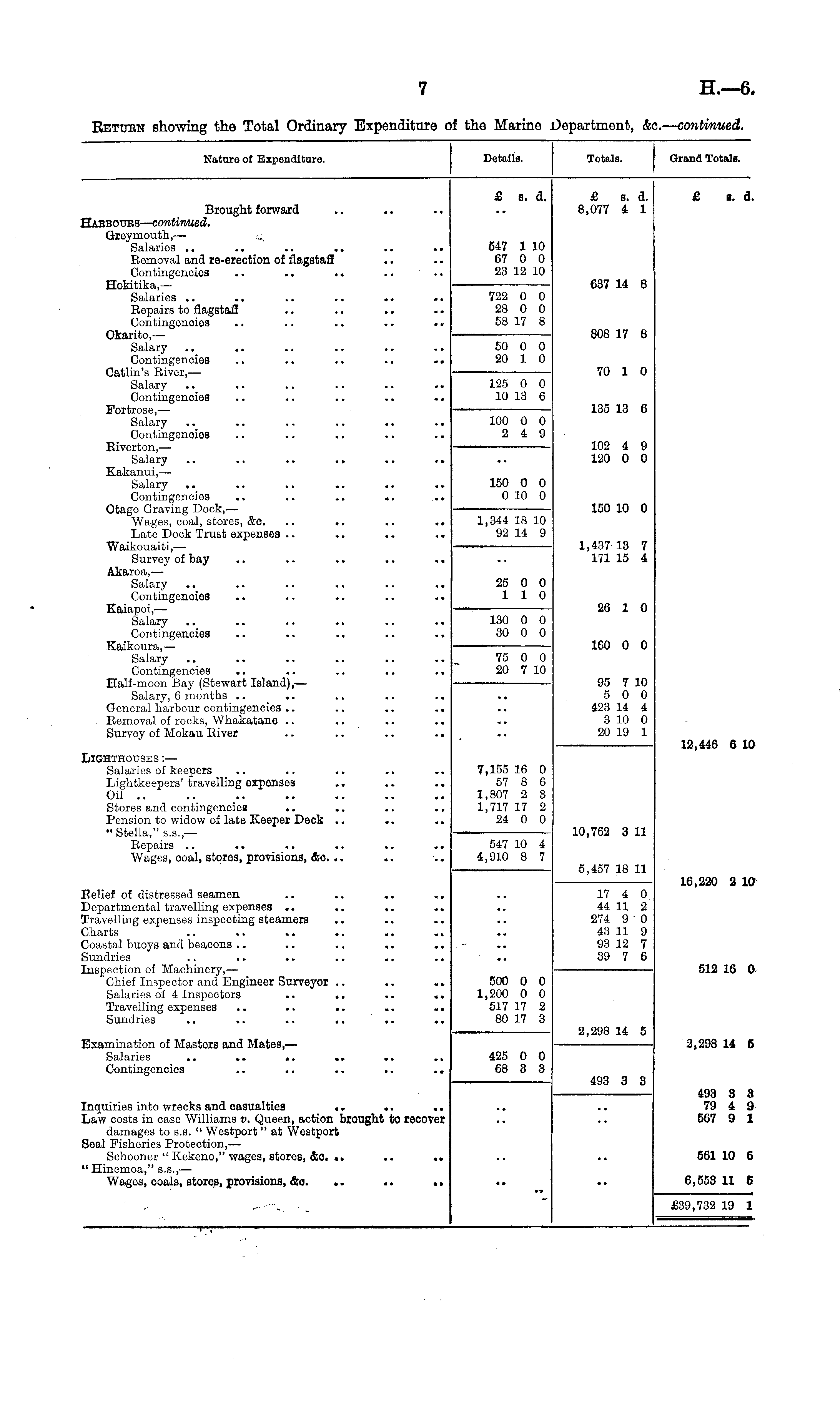 Return showing the Total Ordinary Expenditure of the Marine Department, &c. — continued.