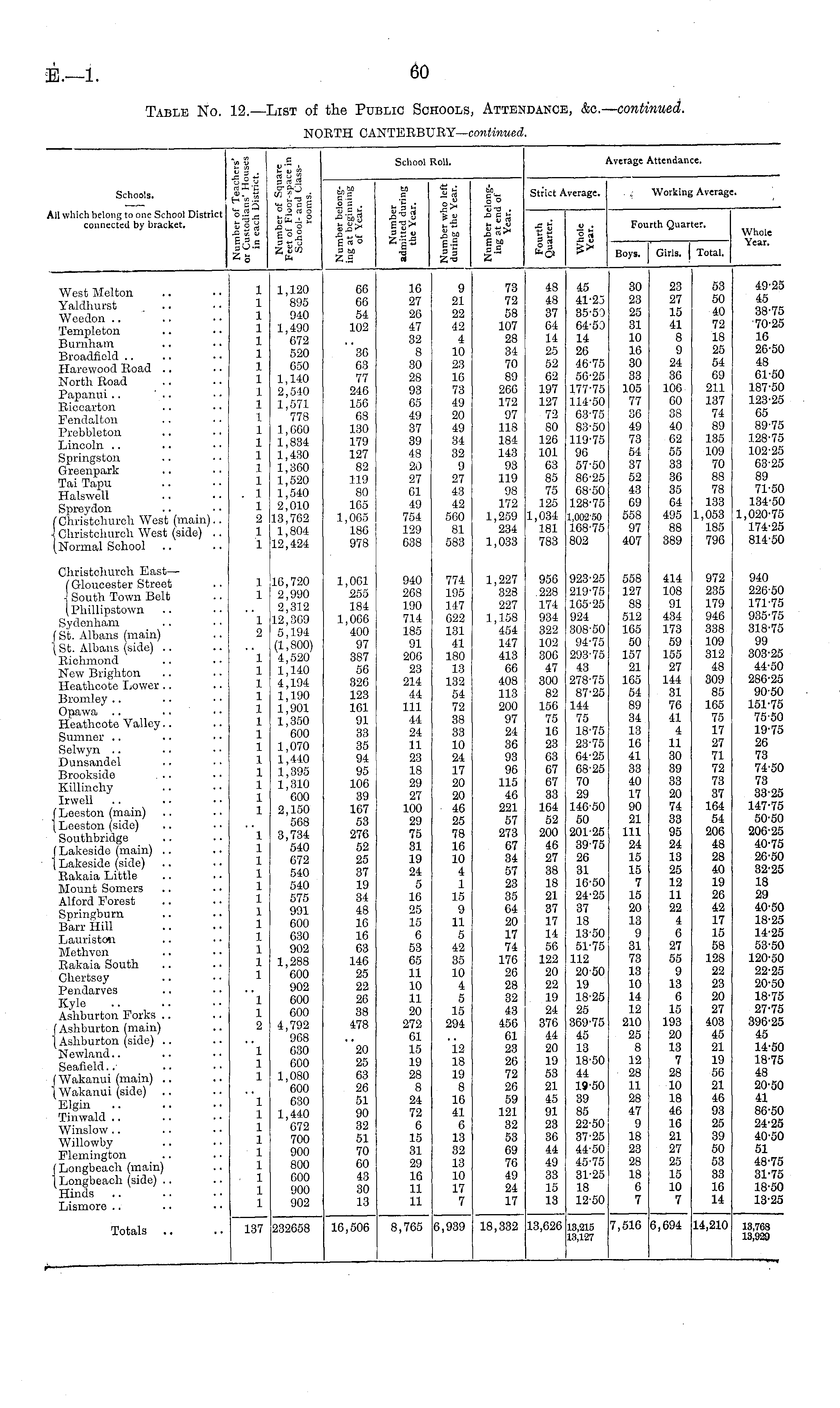 Table No. 12.—List of the Public Schools, Attendance, &c. — continued. NORTH CANTERBURY— continued.