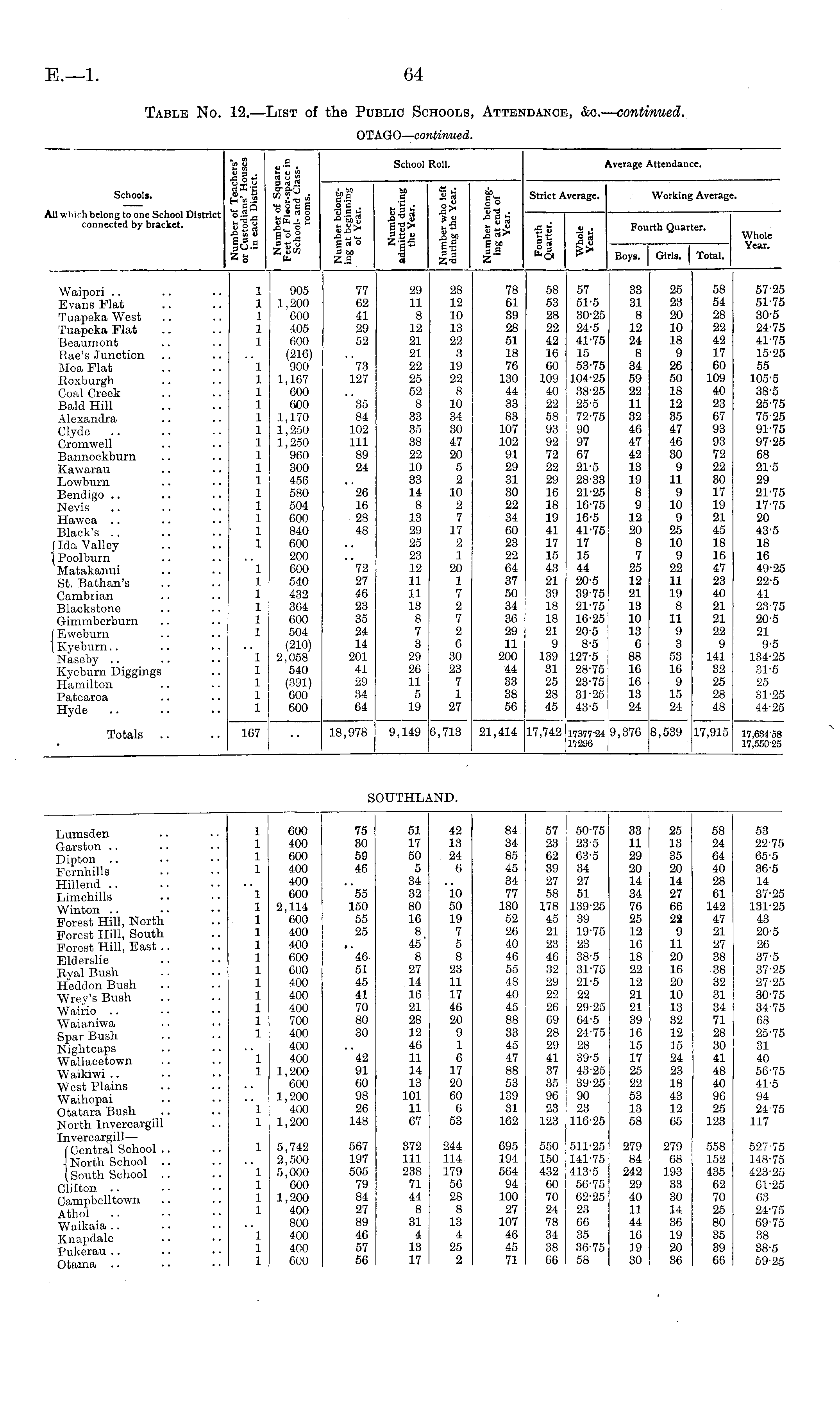 Table No. 12.—List of the Public Schools, Attendance, &c.— continued. OTAGO— continued.