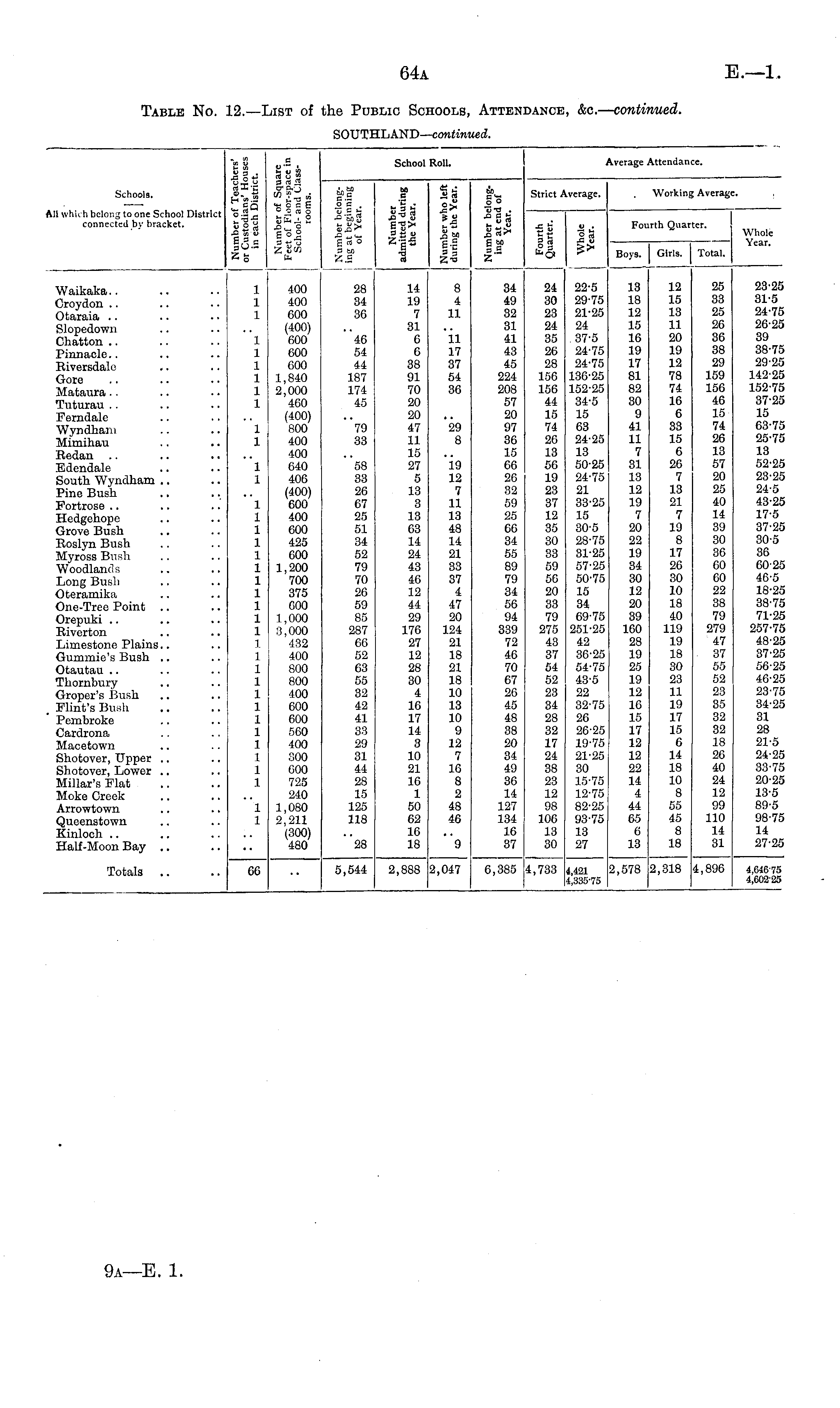 Table No. 12. —List of the Public Schools, Attendance, &c.— continued. SOUTHLAND— continued.