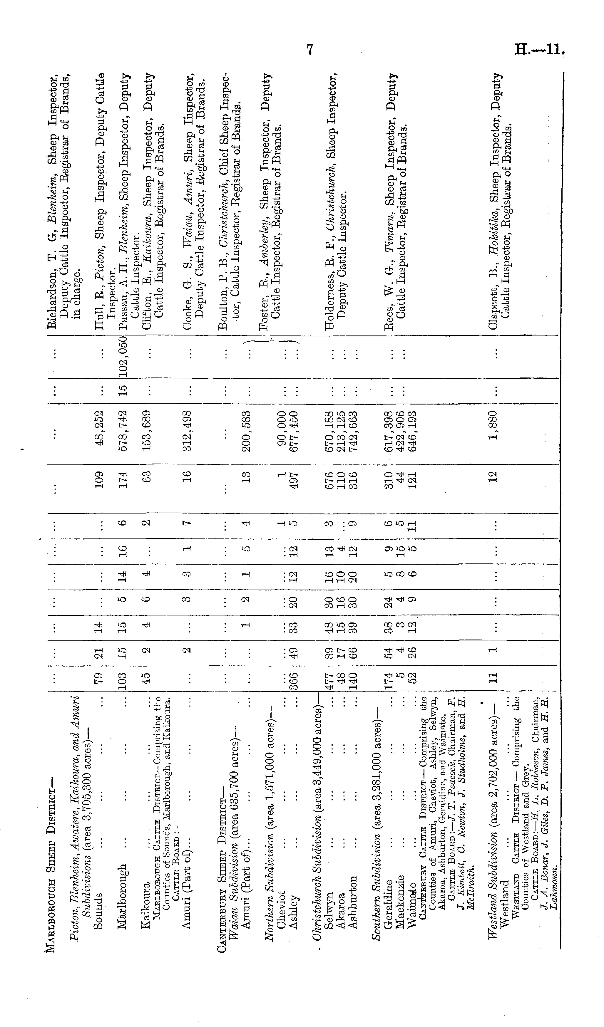 Marlborough Sheep Disteict — Picton, Blenheim, Awatere, Kaikoura, and Amuri Subdivisions (area 3,705,300 acres) — Sounds Bichardson, T. G, Blenheim, Sheep Inspector, Deputy Cattle Inspector, Begistrar of Brands, in charge. 109 48,252 Hull, B., Picton, Sheep Inspector, Deputy Cattle Inspector. Passau, A. H., Blenheim, Sheep Inspector, Deputy Cattle Inspector. Clifton, E., Kaihoura, Sheep Inspector, Deputy Cattle Inspector, Begistrar of Brands. 79 21 14 Marlborough 103 15 15 5 14 16 6 174 578,742 15 102,050 Kaikoura Marlborough Cattle District —Comprising the Counties of Sounds, Marlborough, and Kaikoura. Cattle Board :— Amuri (Part of)... 45 2 4 6 4 2 63 153,689 16 312,498 Cooke, G. S., Waiau, Amuri, Sheep Inspector, Deputy Cattle Inspector, Begistrar of Brands. Danteebuey Sheep Disteict — Waiau Subdivision (area 635,700 acres) — Amuri (Part of)... Boulton, P. B., Christchurch, Chief Sheep Inspector, Cattle Inspector, Begistrar of Brands. 1 2 1 5 4 13 200,583 "I Northern Subdivision (area 1,571,000 acres)— Cheviot Ashley 1 5 1 497 90,000 677,450 Foster, B., Amberley, Sheep Inspector, Deputy Cattle Inspector, Begistrar of Brands. 366 49 33 20 12 12 . Christchurch Subdivision (area 3,449,000 acres) — Selwyn Akaroa Ashburton 477 48 140 89 17 66 48 15 39 30 16 30 16 10 20 13 4 12 3 676 110 316 670,188 213,125 742,663 Holderness, B. F., Christchurch, Sheep Inspector, Deputy Cattle Inspector. 9 Southern Subdivision (area 3,281,000 acres) — Geraldine Mackenzie Waima-te Canterbury Cattle District — Comprising the Counties of Amuri, Cheviot, Ashley, Selwyn, Akaroa, Ashburton, Geraldine, and Waimate. Cattle Board :— J. T. Peacock, Chairman, F. J. Eimbell, C. Newton, J. Studholme, and H. Mcllraith. 174 52 54 4 26 38 12 24 4 9 5 8 6 9 15 5 6 5 11 310 44 121 617,398 422,906 646,193 [ •" ... Bees, W. G., Timaru, Sheep Inspector, Deputy Cattle Inspector, Begistrar of Brands. Westland Subdivision (area 2,702,000 acres)— Westland Westland Cattle District — Comprising the Counties of Westland and Grey. Cattle Board: — H. L. Bobinson, Chairman, J. A. Bonar, J. Giles, D. P. James, and S. H. Lahmann. Clapcott, B., Hokitika, Sheep Inspector, Deputy Cattle Inspector, Begistrar of Brands. 11 12 1,880