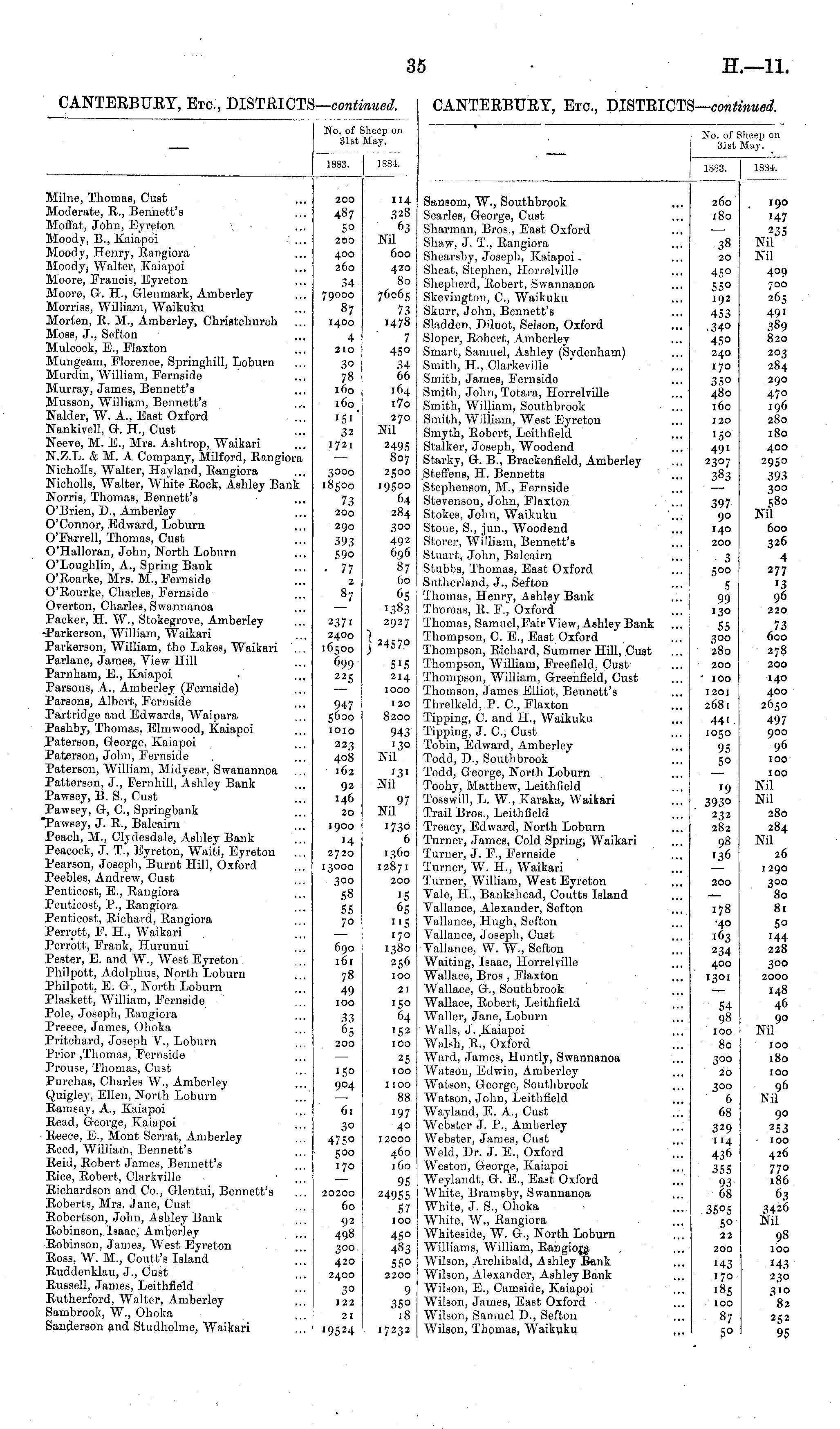 No. of 31st Iheep on May. 1883. [ 1884. Milne, Thomas, Cust Moderate, R., Bennett's Moffat, John, Eyreton Moody, B., Kaiapoi Moody, Henry, Rangiora Moody ; Walter, Kaiapoi Moore, Francis, Eyreton Moore, G. H, Glenmark, Amberley Morriss, William, Waikuku Morten, R. M., Amberley, Christchurch Moss, J., Sefton Mulcock, E., Fiaxton Mungeam, Florence, Springhill, Loburn Murdin, William, Fernside Murray, James, Bennett's Musson, William, Bennett's Nalder, W. A., East Oxford Nankivell, G. H, Cust Neeve, M. E., Mrs. Asbtrop, Waikari N.Z.L. & M. A Company, Milford, Rangiora Nicholls, Walter, Havland, Rangiora Nicholls, Walter, Wliite Rock, Ashley Bank Norria, Thomas, Bennett's O'Brien, D., Amberley O'Connor, Edward, Loburn O'Farrell, Thomas, Cust O'Halloran, John, North Loburn O'Loughlin, A., Spring Bank O'Roarke, Mrs. M., Fernside O'Rourke, Charles, Fernside Overton, Charles, Swannanoa Packer, H W., Stokegrove, Amberley -Parkerson, William, Waikari Parkerson, William, the Lakes, Waikari ... Parlane, James, View Hill Parnham, E., Kaiapoi Parsons, A., Amberley (FernBide) Parsons, Albert, Fernside Partridge and Edwards, Waipara Pashby, Thomas, Elmwood, Kaiapoi .Paterson, George, Kaiapoi Paterson, John, Fernside Paterson, William, Midyear, Swanannoa Patterson, J., Fernhill, Ashley Bank Pawsey, B. S., Cust Pawsey, G, C, Springbank "Pawsey, J. R., Balcairn Peach, M., Clydesdale, Ashley Bank Peacock, J. T., Eyreton, Waiti, Eyreton Pearson, Joseph, Burnt Hill, Oxford Peebles, Andrew, Cust Penticost, E., Rangiora Penticost, P., Rangiora Penticost, Richard, Rangiora Perrptt, F. H, Waikari .'„ Perrott, Frank, Hurunui Pester, E. and W., West Eyreton Philpott, Adolphus, North Loburn Philpott, E. G., North Loburn Plaskett, William, Fernside Pole, Joseph, Rangiora Preece, James, Ohoka Pritchard, Joseph V., Loburn Prior ,Thomas, Fernside Prouse, Thomas, Cust Purchas, Charles W., Amberley Quigley, Ellen, North Loburn Ramsay, A., Kaiapoi Read, George, Kaiapoi Reece, E., Mont Serrat, Amberley Reed, William, Bennett's Reid, Robert James, Bennett's Rice, Robert, Clarkville Richardson and Co., Glenlui, Bennett's Roberts, Mrs. Jane, Cust Robertson, John, Ashley Bank Robinson, Isaac, Amberley Robinson, James, West Eyreton Ross, W. M., Coutt's Island '". Ruddenklau, J., Cust Russell, James, Leithfield Rutherford, Walter, Amberley Sambrook, W., Ohoka Sanderson and Studholme, Waikari 200 487 5° 200 114 328 '63 Nil 600 400 260 34 79000 87 1400 a2o 80 76065 73 1478 4 210 30 78 160 160 151' 32 1721 7 45° 34 66 164 i7o 270 Nil 3000 18500 73 200 290 393 59° • 77 2 _! 7 2495 807 2500 19500 64 284 300 492 696 87 60 65 1383 2927 2371 2400 16500 699 225 ] 24570 515 214 IOOO 947 5600 IOIO 120 8200 943 '3° Nil 223 4°8 162 92 146 20 1900 '4 2720 13000 300 58 55 70 690 161 78 49 100 131 Nil 97 Nil '73o 6 1360 12871 200 '5 65 "5 170 1380 256 100 21 33 65 200 150 64 152 100 150 904 61 30 4750 500 170 25 100 1100 88 197 40 12000 460 160 20200 60 92 498 300 420 95 24955 57 100 4SO 48.3 550 2200 2400 30 122 9 350 18 17232 21 '9524