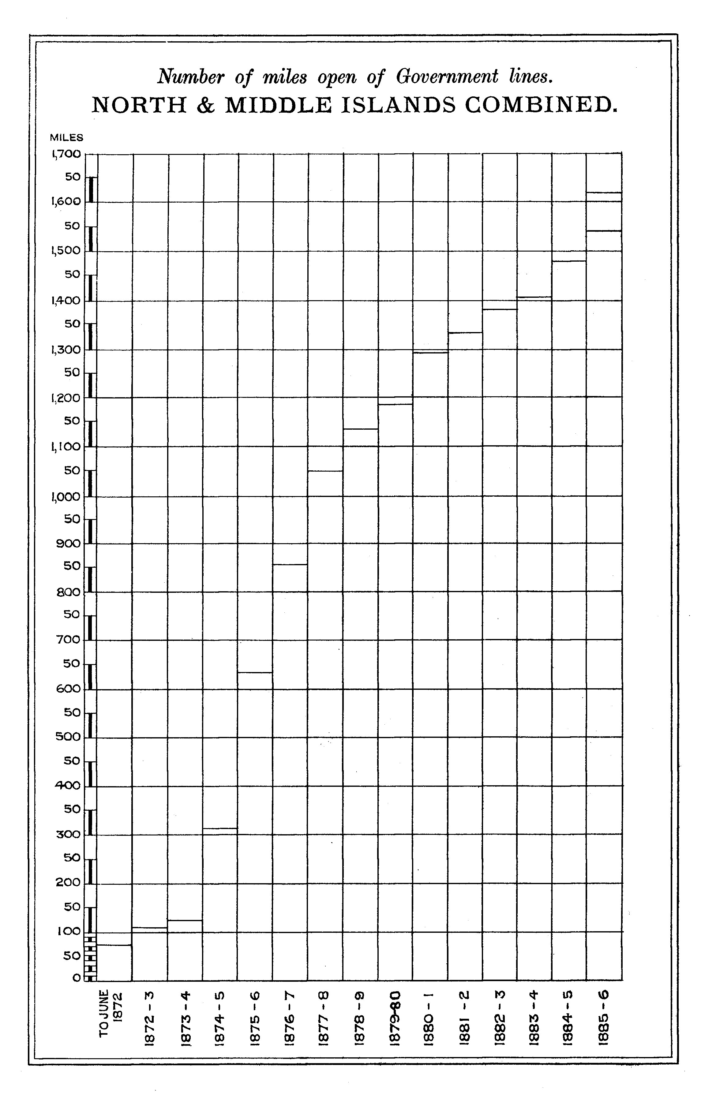 Number of miles open of Government lines. NORTH & MIDDLE ISLANDS COMBINED.
