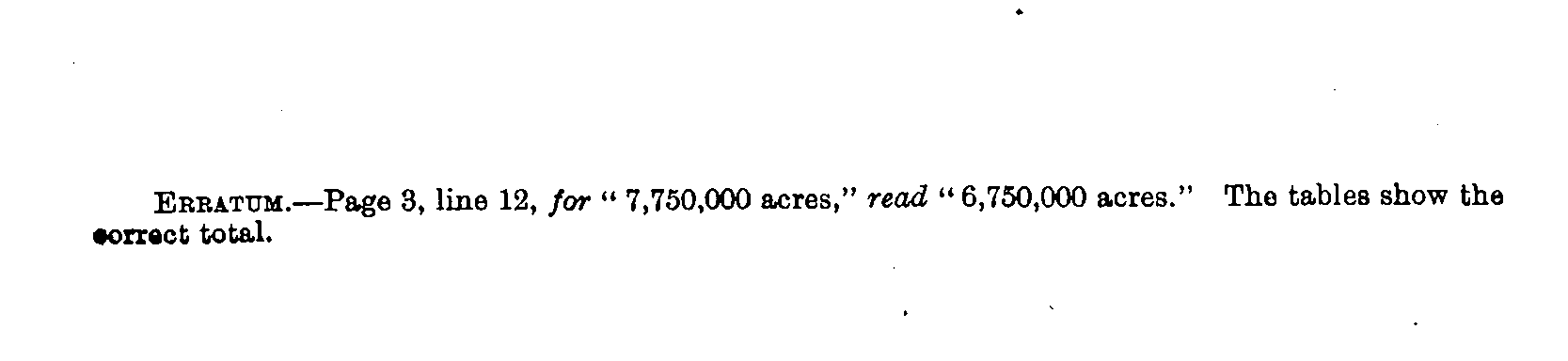 Erratum.—Page 3, line 12, for " 7,750,000 acres," read " 6,750,000 acres." The tables show the correct total.