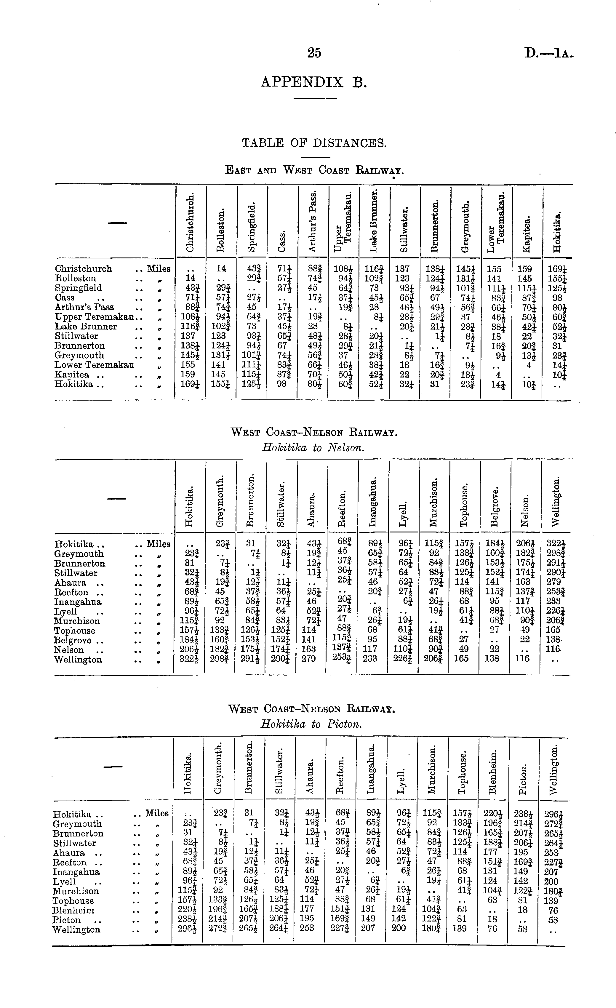 pi M 3 O K 3 o B I H m g i eg E o a) I p I 00 a H t5' i to 2 3 d a o I '3 a s d o o d o Hokitika .. Greymouth Brunnerton Stillwater Ahaura .. Eeefton .. Inangahua Lyoll .. Murchison Tophouse Blenheim Picton Wellington .. Miles 23-i 31 32J 43i 68| 89J 96J 115| 157| 220J 288J 296J 23} "7i 8* 19} 45 65} 72J 92 1888 196} 214} 272} 31 4 37} 58J G5£ 84} 126J 166} 207J 265J 32J 8* 1* Hi 36J 57J 64 83J 125J 188J 206J 264J 19| 124 11J 68f 45 37} 36J 25J 89J 65| 58J 57J 46 20J 96J 72J 65J 64 52| 27J 6f 115§ 92 84} 83J 72J 47 26J 19J 157J 133} 126§ 125| 114 88} 68 61| 41} 220J 196J 165| 188J 177 151} 131 124 104} 63 238J 214} 207| 206J 195 169} 149 142 122} 81 18 2964 272| 265J 264| 253 227f 207 200 180f 139 76 58 25J 46 52J 72£ 114 177 195 253 20j 27J 47 88§ 151| 169| 227| Of 26J 68 131 149 207 19* 6l| 124 142 200 41f 104} 122| 180} 63 81 139 18 7G 58