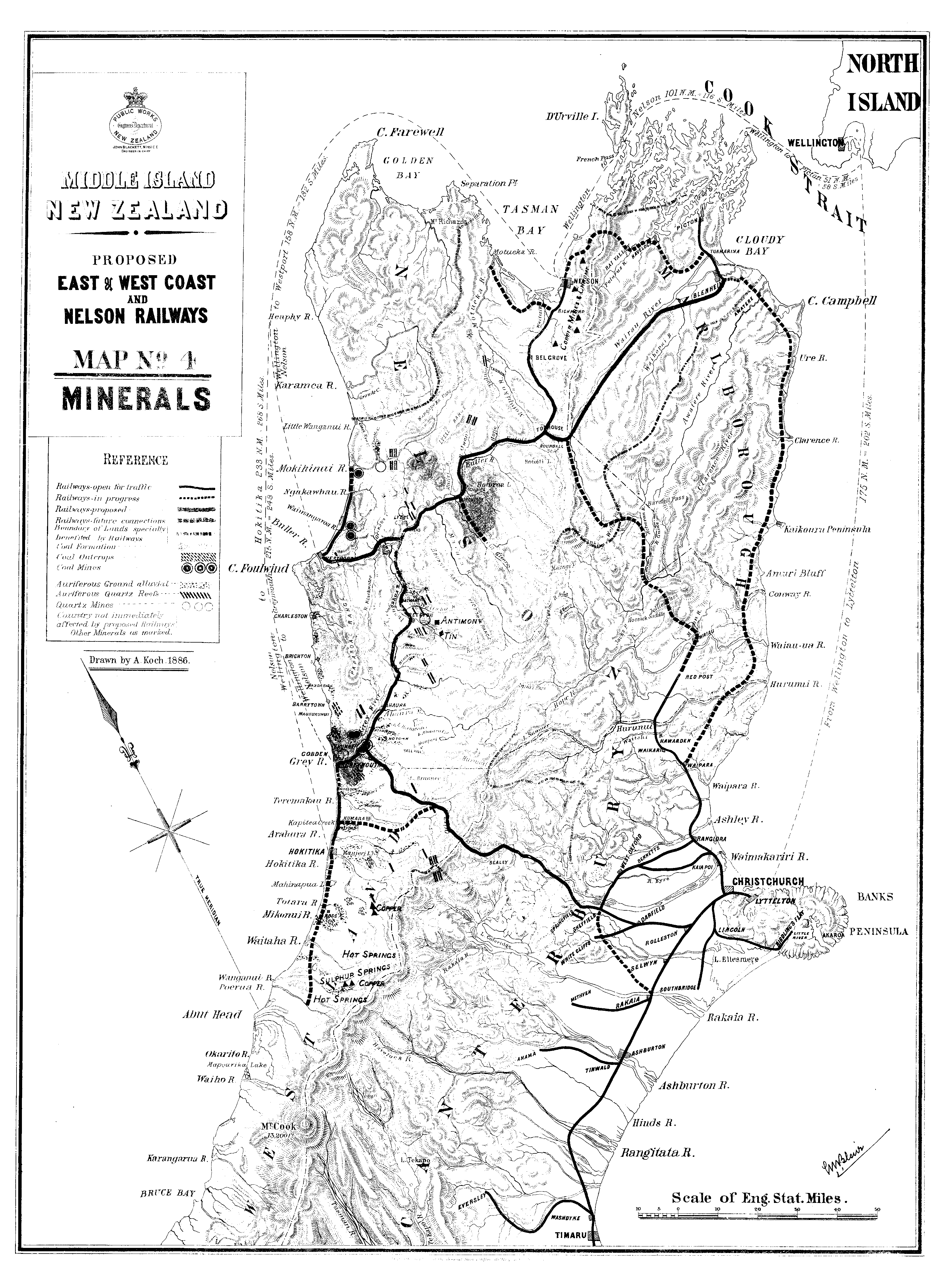 MIDDLE ISLAND NEW ZEALAND PROPOSED LAST & WEST COAST AND NELSON RAILWAYS MAP NO. 4 MINERALS