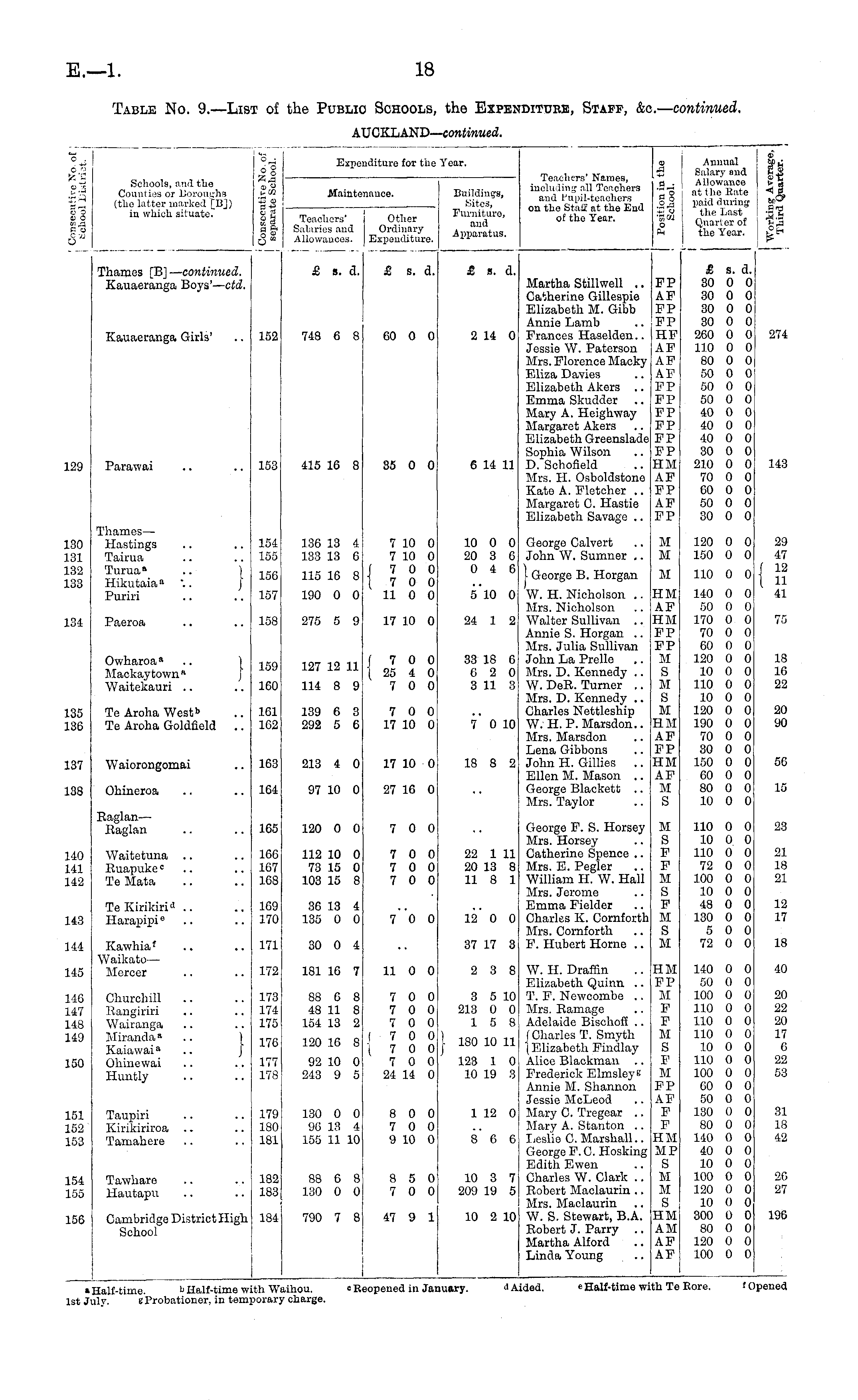 Table No. 9.—List of the Public Schools, the Expenditure, Staff, &c.— continued. AUCKLAND— continued.