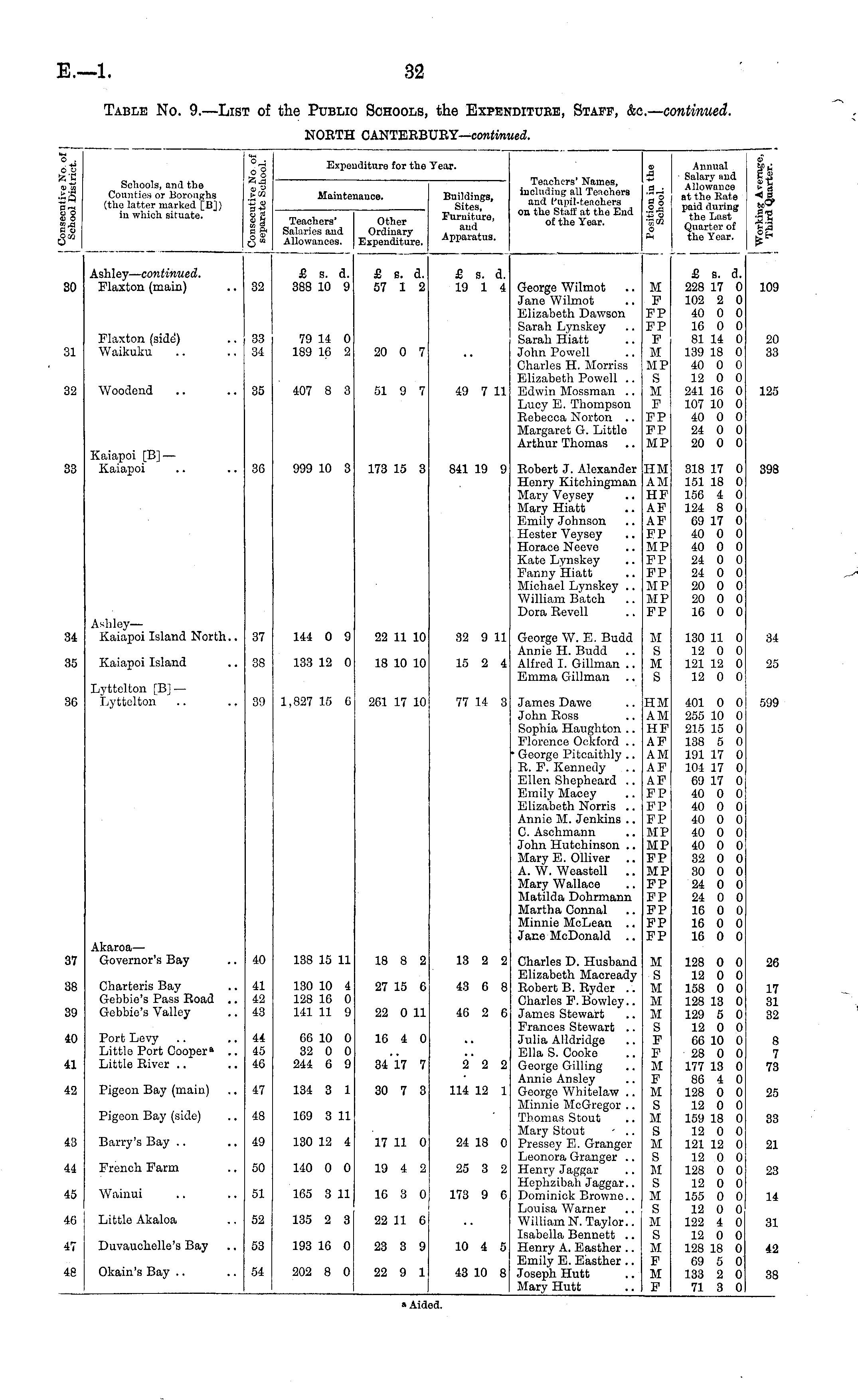 Table No. 9.—List of the Public Schools, the Expenditure, Staff, &c. — continued. NORTH CANTERBURY— continued.