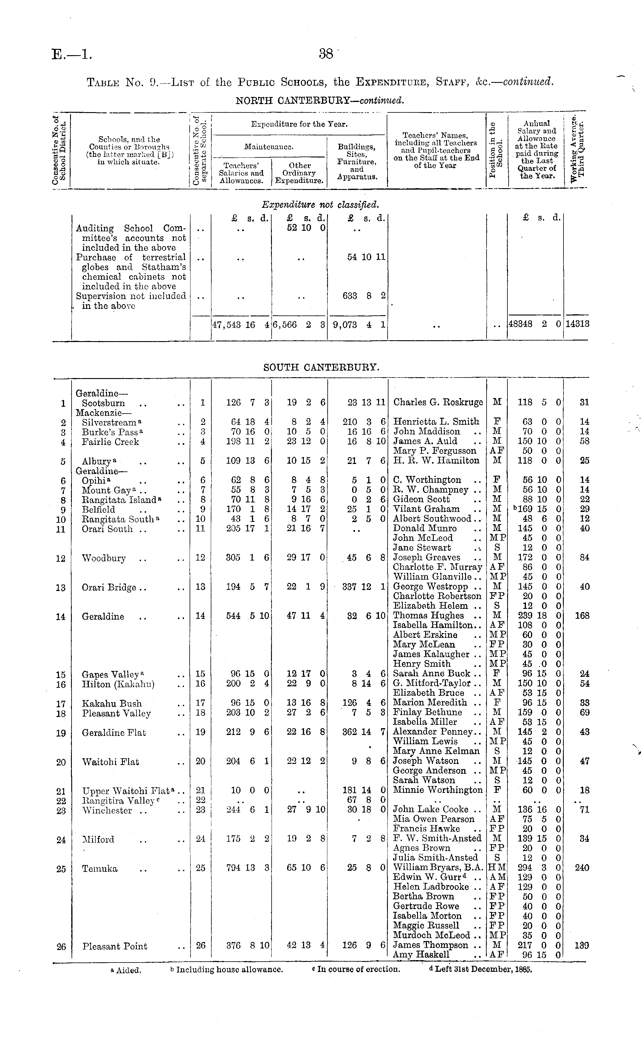 1 2 3 4 Geraldine— Sootsburn Mackenzie — Silverstream" Burke's Pass" Fairlie Creek 1 2 8 4 126 7 3 64 18 4 70 16 0 138 11 2 19 2 6 8 2 4 10 5 0 23 12 0 23 13 11 210 3 6 16 16 0 1C 8 10 Charles G. Eoskrugo Henrietta L. Smith John Maddison James A. Auld Mary P. Forgusson H. B. W. Hamilton M F M M AF M 118 5 0 63 0 0 70 0 0 150 10 0 50 0 0 118 0 0 31 14 14 58 5 Albury" Geraldine— Opihi" Mount Gay a .. Bangitata Island" Belfield Eangitata South" Orari South 5 109 13 6 10 15 2 21 7 0 25 6 7 8 9 10 11 6 7 8 9 10 11 62 8 6 55 8 3 70 11 8 170 1 8 43 1 6 205 17 1 8 4 8 7 5 3 9 10 6 14 17 2 8 7 0 21 16 7 5 10 0 5 0 0 2 6 25 1 0 2 5 0 C. Worthington R. W. Champney .. Gideon Scott Vilant Graham Albert Soutlrwood .. Donald Munro John McLeod Jane Stewart Joseph Greaves Charlotte F. Murray William Glanville .. George Westropp .. Charlotte Eobertson Elizabeth Helem .. Thomas Hughes .. Isabella Hamilton.. Albert Erskine Mary McLean James Kalaugher .. Henry Smith Sarah Anne Buck .. G. Mitford-Taylor .. Elizabeth Bruce .. Marion Meredith .. Finlay Bethune Isabella Miller Alexander Penney.. William Lewis Mary Anne Kelman Joseph Watson George Anderson .. Sarah Watson Minnie Worthington F M M M M M MP S M AF MP M FP S M AF MP pp MP MP F M AF F M AF M MP S M MP S F 56 10 0 56 10 0 88 10 0 "169 15 0 48 6 0 145 0 0 45 0 0 12 0 0 172 0 0 86 0 0 45 0 0 145 0 0 20 0 0 12 0 0 239 18 0 108 0 0 60 0 0 30 0 0 45 0 0 45 0 0 96 15 0 150 10 0 53 15 0 96 15 0 159 0 0 53 15 0 145 2 0 45 0 0 12 0 0 145 0 0 45 0 0 12 0 0 60 0 0 14 14 22 29 12 40 12 Woodbury 12 305 1 6 29 17 0 45 6 8 84 18 Orari Bridge 13 194 5 7 22 1 9 337 12 1 40 14 Geraldine 1-1 544 5 10 47 11 4 32 6 10 168 Gapes Valley • Hilton (Kakahu) 96 15 0 200 2 4 3 4 6 8 14 6 18 16 15 16 12 17 0 22 9 0 24 54 17 18 Kakahu Bush Pleasant Valley 17 18 96 15 0 203 10 2 13 16 8 27 2 6 126 4 6 7 5 3 33 69 18 Geraldine Plat 19 212 9 6 22 16 8 362 14 7 43 20 Waitohi Plat 20 204 6 1 22 12 2 9 8 6 47 21 2'2 23 Upper Waitohi Flat" .. Rangitira Valley ° Winchester .. 21 22 23 10 0 0 181 14 0 67 8 0 30 18 0 18 244' 6 1 27"9 10 John Lake Cooke .. Mia Owen Pearson Francis Hawke F. W. Smith-Ansted Agnes Brown Julia Smith-Ansted WilliamBryars, B.A. Edwin W. Gurr d .. Helen Ladbrooke .. Bertha Brown Gertrude Eowe Isabella Morton Maggie Eussell Murdoch McLeod .. James Thompson .. Amy Haskell M AF FP M FP S EM AM AF F P FP FP FP MP M AF 136 16 0 75 5 0 20 0 0 139 15 0 20 0 0 12 0 0 294 3 0 129 0 0 129 0 0 50 0 0 40 0 0 40 0 0 20 0 0 35 0 0 217 0 0 96 15 0 "Vi Milford 175 2 2 19 2 8 7 2 8 34 24 24 25 Temuka 25 794 13 3 G5 10 6 25 8 0 240 Pleasant Point 139 26 26 376 8 10 42 13 4 126 9 6 a Aided, b Including house allowance. «In course of erection. A Left 31st December, 1885.
