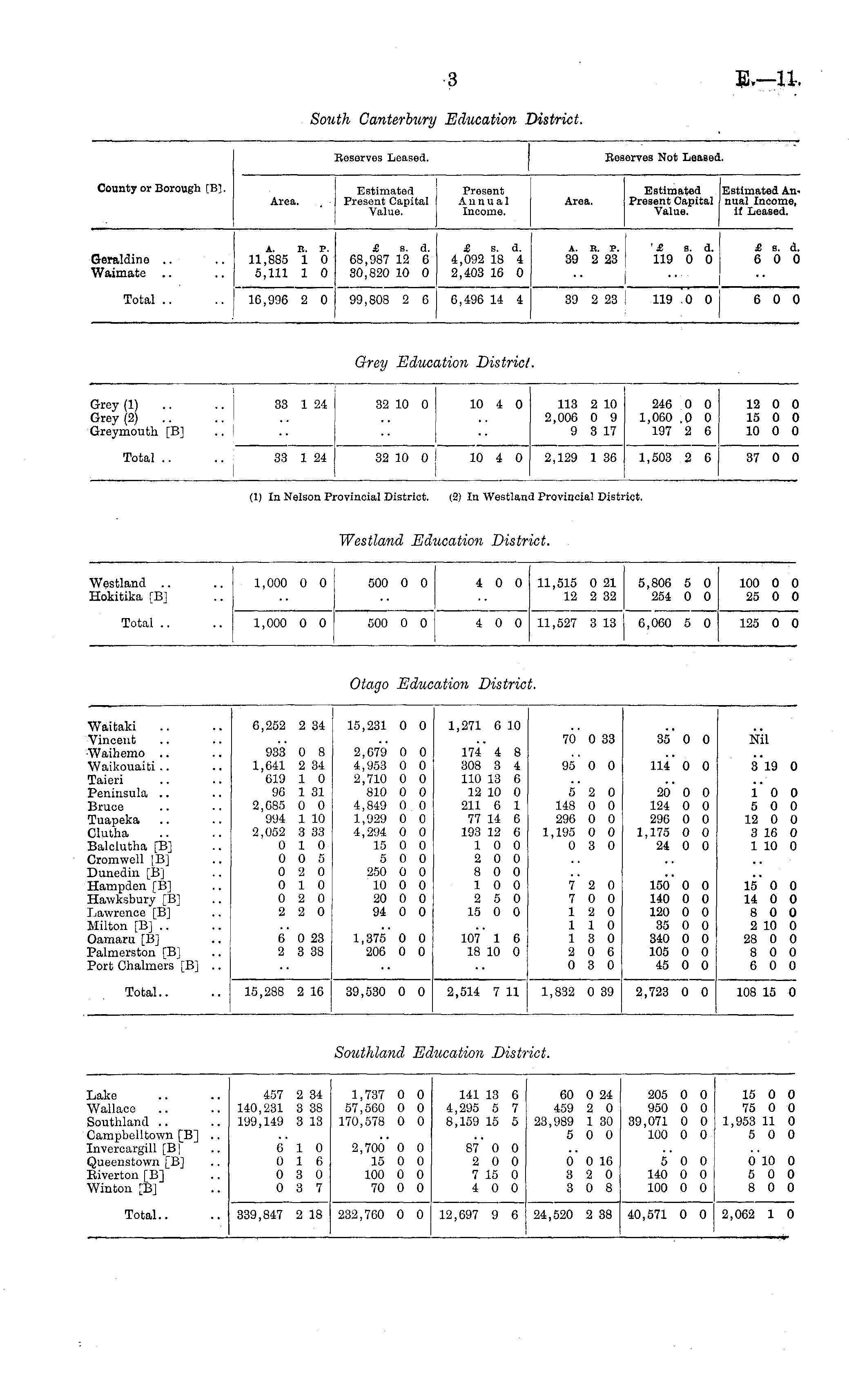 Westland .. iokitika [B] 1,000 0 0 500 0 0 4 0 0 11,515 0 21 12 2 32 5,800 5 0 254 0 0 100 0 0 25 0 0 Total .. 1,000 0 0 500 0 0 4 0 0 11,527 8 13 6,060 5 0 125 0 0