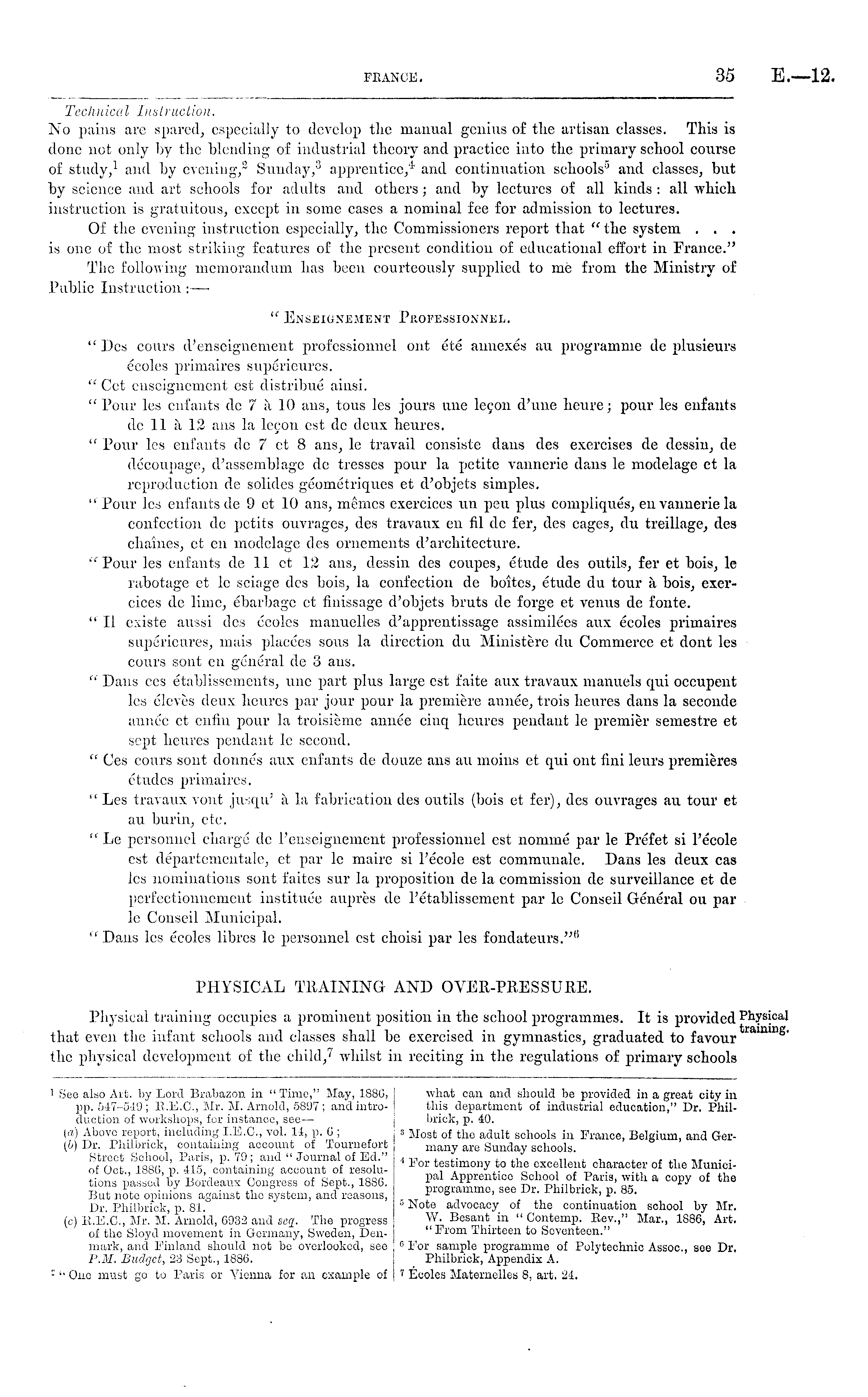 l See also Art. by Lord Brabazon. in " Time," May, 1880, pp. 547-549; R.E.C, Mr. M. Arnold, 5897; andintroduction of workshops, for instance, see— (a) Above report, including I.E.C, vol. 14, p. 0 ; (6) Dr. Philbrick, containing account of Tournefort Street School, Paris, p. 79; and " Journal of Ed." of Oct., 18S0, p. 415, containing account of resolutions passed'bPy Bordeaux Congress of Sept., 1886. But note opinions against the system, and reasons, Dr. Philbrick, p. 81. (c) R.E.C, Mr. M. Arnold, 0932 and seq. The progress of the Sloyd movement in Germany, Sweden, Denmark, and Finland should not be overlooked, see P.M. Budget, 23 Sept., 1886. 2" One must go to Paris or Vienna for an example of