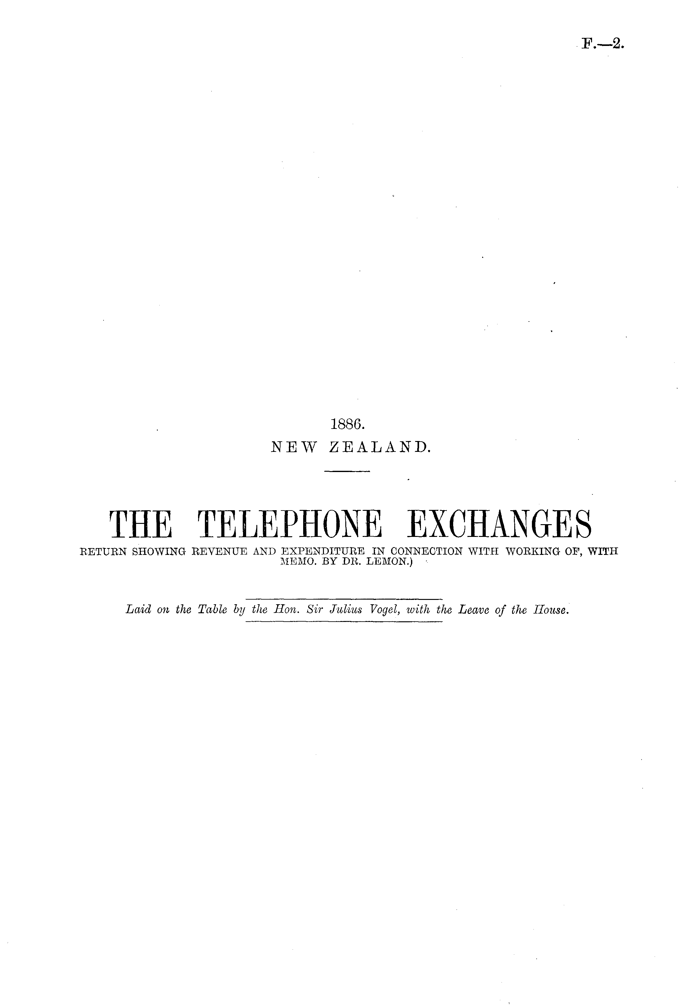 Laid on the Table by the Hon. Sir Julius Vogel, with the Leave of the House.