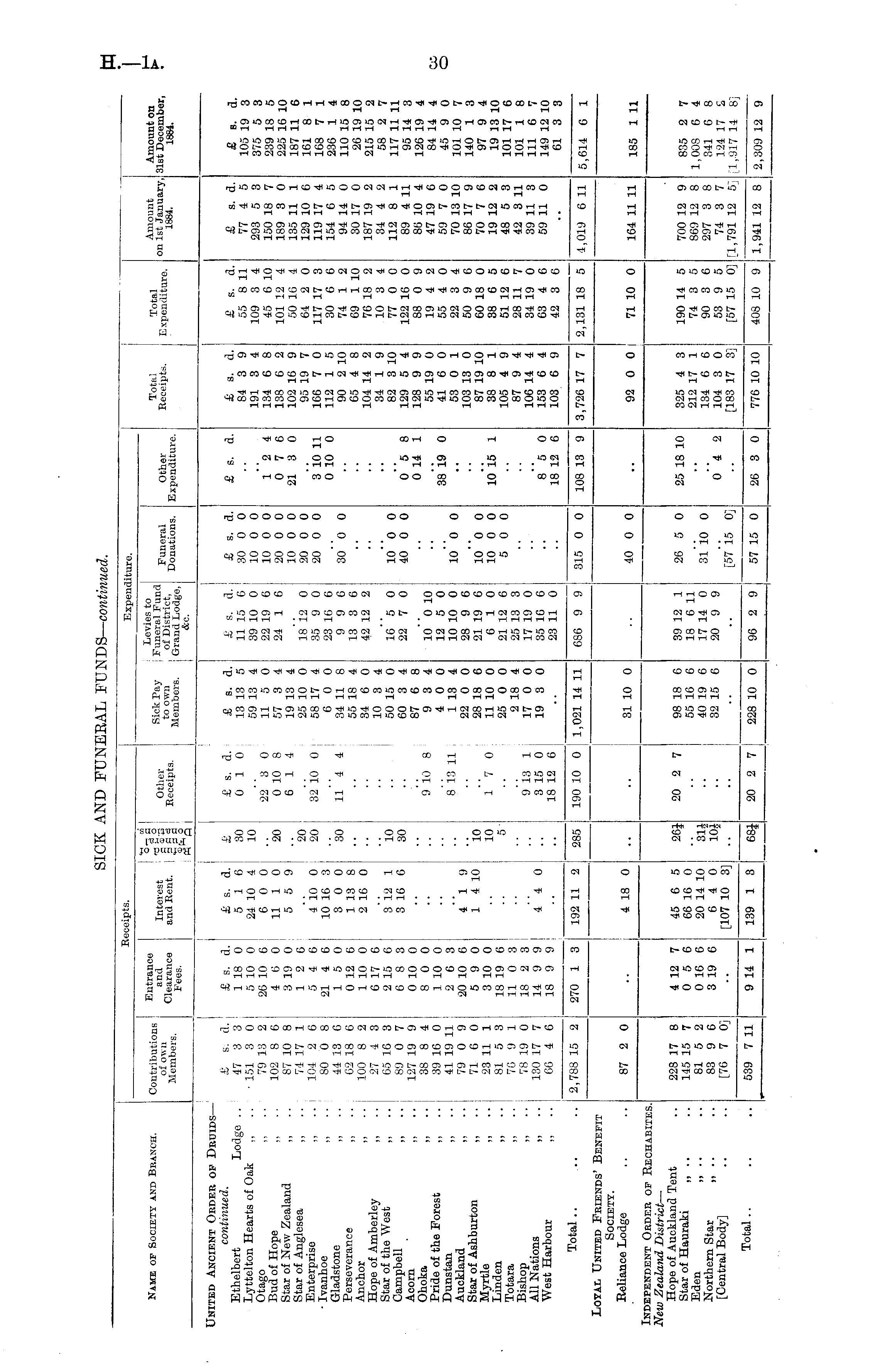 Beceipts. Expenditure. Other Expenditure. Total Keceipts. Name or Society and Bbanch. Contributions of own Members. Entrance and Clearance Fees. Interest "S g-J and Eent. Sag Other Receipts. Sick Pay to own Members. Levies to Funeral Fund' -p , &c. Total Expenditure. Amount on 1st January, 1884. Amount on 31st December, 1884. United Ancient Obder of Deuids —: continued. Ethelbert Lodge .. Lyttelton Hearts of Oak ,, Otago ,, Bud of Hope ,, Star of New Zealand ,, Star of Anglesea ,, Enterprise ,, • Ivanhoe ,, Gladstone „ .. Perseverance ,, Anchor ,, Hope of Amberley ,, Star of the West ,, Campbell ,, Acorn ,, .. I Ohoka „ .. Pride of the Forest ,, Dunstan „ Auckland ,, Star of Ashburton ,, Myrtle ,, Linden ,, Totara ,, Bishop ,, All Nations ,, West Harbour „ £ s. d. 47 3 3 ■ 151 3 0 79 13 2 102 8 6 87 10 8 74 17 1 104 2 6 80 0 8 44 13 G G2 18 6 100 8 2 27 4 3 65 16 3 89 0 7 127 19 9 38 8 4 39 16 0 41 19 11 79 0 9 71 G 0 23 11 1 81 5 3 7G 9 1 78 19 0 130 17 7 6G 4 6 £ s. d. 1 18 0 5 10 0 26 10 6 4 6 0 3 19 0 12 6 5 4 6 21 4 6 15 0 0 12 6 1 10 0 6 17 0 2 15 G 6 8 3 0 10 0 8 0 0 1 10 0 2 G 3 20 10 6 5 9 0 3 10 0 18 19 6 11 0 3 18 2 3 14 9 9 18 9 9 £ s. d. 5 16 24 10 4 6 0 0 11 1 0 5 5 9 4 10 0 10 16 3 3 0 0 1 13 8 2 16 0 312 1 3 16 6 £ 30 10 » 20 20 30 10 30 £ s. d. 0 1 0 | 22 3 0 0 10 8 6 14 32'io 0 11 4 4 9 10 8 8 18 11 17 0 9 13 1 3 15 0 18 12 6 £ s. d. 13 13 5 59 13 4 11 5 0 57 3 4 19 13 4 25 10 0 58 17 4 6 0 0 34 11 8 55 18 4 34 6 0 10 3 4 50 15 0 60 3 4 87 6 8 9 3 4 4 0 0 1 13 4 22 0 0 28 18 6 11 10 0 25 0 0 2 18 4 17 0 0 19 3 0 £ s. d. 11 15 6 39 10 0 22 19 6 24 1 6 18 12 0 35 9 0 23 16 6 9 9 G 13 3 6 42 12 2 ie"5 0 22 7 0 £ s. a. 30 0 0 10 0 0 10 0 0 20 0 0 10 0 0 20 0 0 20 0 0 30 0 0 10**0 0 40 0 0 £ s. d. 12 4 0 7 6 21 3 0 3 10 11 0 10 0 £ s. d. 84 3 9 191 3 4 134 6 8 138 6 2 102 16 9 95 19 7 166 7 0 112 1 5 90 2 10 65 4 8 104 14 2 34 1 9 82 3 10 129 5 4 128 9 9 55 19 0 41 6 0 53 0 1 103 13 0 87 19 10 38 8 1 105 4 9 87 9 4 106 14 4 153 6 4 103 6 9 £ s. d. 55 8 11 109 3 4 45 6 10 101 12 4 50 16 4 64 2 0 117 17 3 30 6 6 74 1 2 G9 1 10 76 18 2 10 3 4 77 0 0 122 16 0 88 0 9 19 4 2 55 4 0 22 3 4 50 9 6 60 18 0 38 6 5 51 12 6 28 11 7 34 19 0 63 4 6 42 3 6 £ s. d. 77 4 5 293 5 3 150 18 7 189 3 0 135 11 1 129 10 6 119 17 4 154 6 5 94 14 0 30 17 0 187 19 2 34 4 2 112 8 1 89 4 11 86 10 4 47 19 6 59 7 0 70 13 10 86 17 9 70 7 6 19 12 2 48 5 3 42 3 11 39 11 3 59 11 0 £ S. d. 105 19 3 375 5 3 239 18 5 225 16 10 187 11 6 1G1 8 1 168 7 1 236 1 4 110 15 8 26 19 10 215 15 2 58 2 7 117 11 11 95 14 3 126 19 4 84 14 4 45 9 0 101 10 7 140 1 3 97 9 4 19 13 10 101 17 6 101 1 8 111 6 7 149 12 10 61 3 3 o"5 8 0 14 1 4*1 0 1 4 10 10 10 5 10 0 10 12 5 0 10 10 0 28 9 6 21 19 6 6 10 21 12 6 I 25 13 3 17 19 0 I 35 16 6 ! 23 11 0 1 io"o o 10 0 0 10 0 0 5 0 0 3819 0 1015 1 4 4 0 8*5 0 18 12 6 Total .. ... .. j : 2,788 15 2 2,788 15 2 270 1 3 j 192 11 2 285 190 10 0 686 9 9 315 0 0 108 13 9 1,021 14 11 3,726 17 7 2,131 18 5 4,019 6 11 I ! ! 5,614 6 1 Loyal United Fbiends' Benefit Society. Reliance Lodge 87 2 0 87 2 0 4 18 0 •• 31 10 0 40 0 0 92 0 0 71 10 0 164 11 11 185 1 11 Independent Order of Rechabites. Neio Zealand District — Hope of Auckland Tent Star of Hauraki ,, .. Eden „ .. Northern Star „ .. [Central Body] 228 17 8 145 15 7 81 5 2 83 9 6 [76 7 0] i 228 17 8 145 15 7 81 5 2 83 9 6 [76 7 0] 539 7 11 4 12 7 0 5 6 0 16 6 3 19 6 45 G 5 66 16 0 20 14 10 6 4 0 [107 10 3] 26£ 1OJ 20 2 7 98 18 6 55 16 6 40 19 6 32 15 6 39 12 1 18 6 11 17 14 0 20 9 9 26 5 0 31 10 0 25 18 10 0 4 2 325 4 3 212 17 1 134 6 6 104 3 0 [183 17 3] 190 14 5 74 3 5 90 3 6 53 9 5 [57 15 0] 700 12 9 869 12 8 297 3 8 74 3 7 n,791 12 5" 835 2 7 1,008 6 4 341 6 8 124 17 £ -1,917 14 8" [57 15 0] •• Total 539 7 11 9 14 1 139 1 3 68J 20 2 7 228 10 0 96 2 9 57 15 0 26 3 0 776 10 10 408 10 9 1,941 12 8 2,303 12