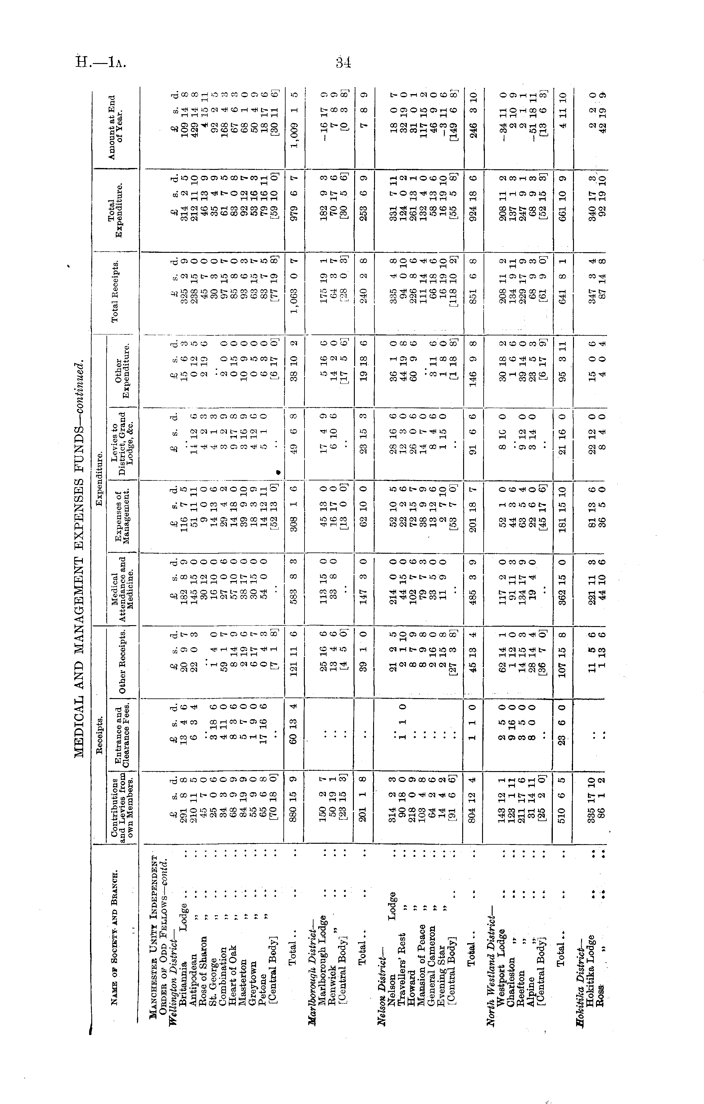 Eeceipts. Expenditure. Name op Society and Branch. Contributions and Levies from own Members. Entrance and Clearance Fees. Medical Attendance and Medicine. Expenses of Management. Levies to nth or Expire. Total Receipts. Total Expenditure. Amount at End of Year. Other Eeceipts. Manchester Unit* Independent Okdee of Odd Fellows — contd. Wellington District — Britannia Lodge Antipodean „ Rose of Sharon „ St. George „ Combination „ Heart of Oak ,, Masterton ,, Greytown ,, Petone „ [Central Body] £ s. d. 291 8 8 210 11 5 45 7 0 25 0 6 34 3 0 68 9 9 84 19 9 55 9 0 65 6 8 [70 18 0] £ s. d. 13 4 G 6 3 4 3 18 6 4 11 0 8 3 6 5 7 0 19 0 17 16 6 £ s. a. 20 9 7 22 0 3 14 0 59 1 7 8 14 9 2 19 6 6 17 7 0 4 3 [7 1 8T £ s. d. 182 8 9 145 15 0 30 12 0 16 10 0 27 0 6 57 10 0 38 17 0 30 15 0 54 0 0 £ s. d. 116 7 5 51 11 11 9 0 0 14 13 6 29 4 2 14 18 0 39 9 10 18 3 9 14 12 11 [52 13 0] • £ s. d. It 12 6 4 2 3 4 13 3 2 9 9 17 8 3 16 9 4 12 G 5 1 0 £ s. d. 15 6 3 0 12 5 2 19 6 2* 0 0 0 15 0 10 9 0 0 5 0 6 3 0 [6 17 0] £ s. d. 325 2 9 238 15 0 45 7 0 30 3 0 97 15 7 85 8 0 93 6 3 63 15 7 83 7 5 [77 19 8] £ s. d. 314 2 5 212 11 10 46 13 9 35 4 9 61 7 5 83 0 8 92 12 7 53 16 3 79 16 11 [59 10 0] £ s. d. 109 14 8 429 14 8 4 15 11 92 2 5 168 4 3 67 6 3 68 1 0 50 4 9 18 17 G [30 11 6 1 Total .. 880 15 9 60 13 4 121 11 6 583 8 3 308 1 6 49 6 8 38 10 2 1,063 0 7 979 6 7 1,009 1 5 Marlborcmgli District — Marlborough Lodge Renwick „ [Central Body] 150 2 7 50 19 1 [23 15 3] 25 16 6 13 4 6 r4 5 0] 113 15 0 33 8 0 j 45 13 0 16 17 0 [13 0 0] 62 10 0 17 4 9 0 10 6 5 16 G 14 2 0 [17 5 G] 19 18 6 I i 175 19 1 64 3 7 [28 0 3] 240 2 8 182 9 3 70 17 6 [30 5 6] 253 6 9 -16 17 9 7 8 9 [0 3 8] •• Total 201 1 8 39 1 0 ! 147 3 0 23 15 3 7 8 9 Nelson District — Nelson Lodge Travellers' Rest „ Howard ,, Mansion of Peace ,, General Cameron „ Evening Star ,, [Central Body] . ! | 314 2 3 90 18 0 218 0 9 103 4 8 64 2 6 14 4 2 [91 G 6] 110 21 2 5 2 1 10 8 7 9 8 9 8 2 16 0 2 15 8 [27 3 8] 214 0 0 44 15 0 102 7 6 79 7 3 33 5 0 11 9 0 52 10 5 22 2 6 72 15 7 38 9 9 13 12 6 2 7 10 [53 7 0] 28 16 6 12 3 0 26 0 6 14 7 0 8 4 0 1 15 0 36 1 0 44 19 8 60 9 6 335 4 8 94 0 10 226 8 6 111 14 4 66 18 6 16 19 10 [118 10 2] 331 7 11 124 0 2 261 13 1 132 4 0 58 13 6 16 19 10 [55 5 8] 18 0 7 32 19 0 31 0 1 117 15 2 46 9 0 -3 11 6 [149 6 8' 3 11 6 18 0 [1 18 8] 146 9 8 • • Total .. 804 12 4 110 45 13 4 485 3 9 201 18 7 91 C 6 851 6 8 924 18 6 246 3 10 North Westland District — Westport Lodge Charleston ,, Reef ton „ Alpine ,,. [Central Body] 143 12 1 123 1 11 211 17 6 31 14 11 [25 2 0] 510 6 5 2 5 0 9 16 0 3 5 0 8 0 0 62 14 1 1 12 0 14 15 3 28 14 4 [36 7 0] 117 2 0 91 11 3 134 17 9 19 4 0 52 1 0 44 3 6 63 5 4 22 6 0 [45 17 61 8 1C 0 912 0 3 14 0 30 18 2 16 6 39 14 0 23 5 3 [6 17 9] 208 11 2 134 9 11 229 17 9 68 9 3 [61 9 0] 208 11 2 137 1 3 247 9 1 68 9 3 [52 15 3] -34 11 0 2 10 9 2 11 -51 18 11 [13 6 3: TotaK. 23 6 0 107 15 8 362 15 0 181 15 10 21 16 0 95 3 11 641 8 1 661 10 9 4 11 10 Hokitika District — Hokitika Lodge .. .. Boss „ 2 2 0 42 19 9 335 17 10 86 1 2 11 5 6 1 13 6 221 11 3 44 10 6 81 13 6 36 5 0 22 12 0 8 4 0 15 0 6 4 0 4 347 3 4 87 14 8 340 17 3 92 19 10