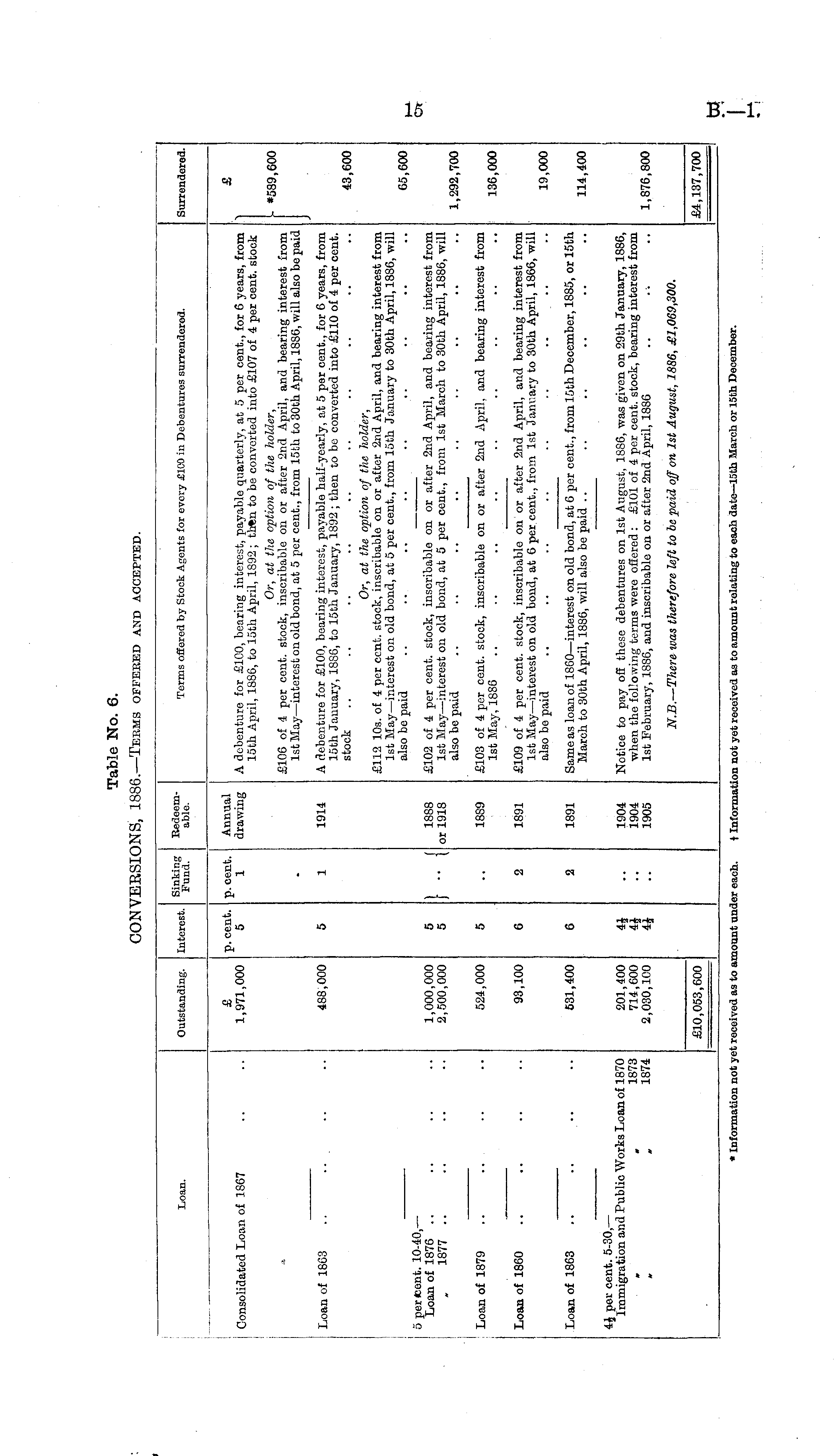 Table No. 6. CONVERSIONS, 1886.— Terms offered and accepted.