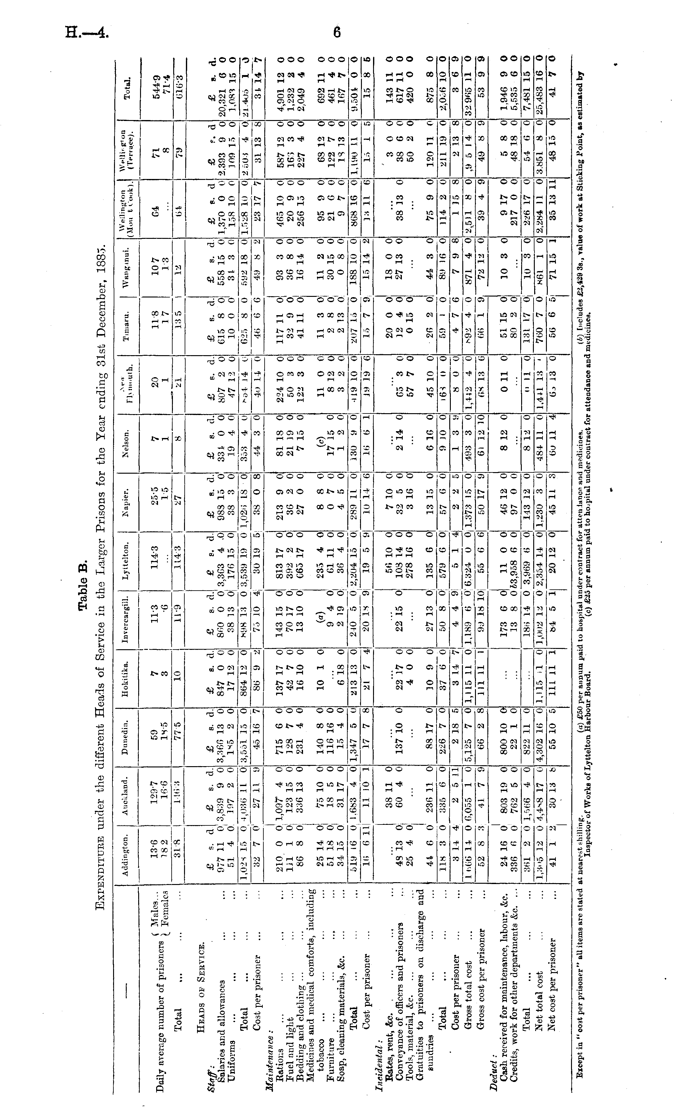 Table B. Expenditure under the different Heads of Service in the Larger Prisons for the Year ending 31st December, 1885.