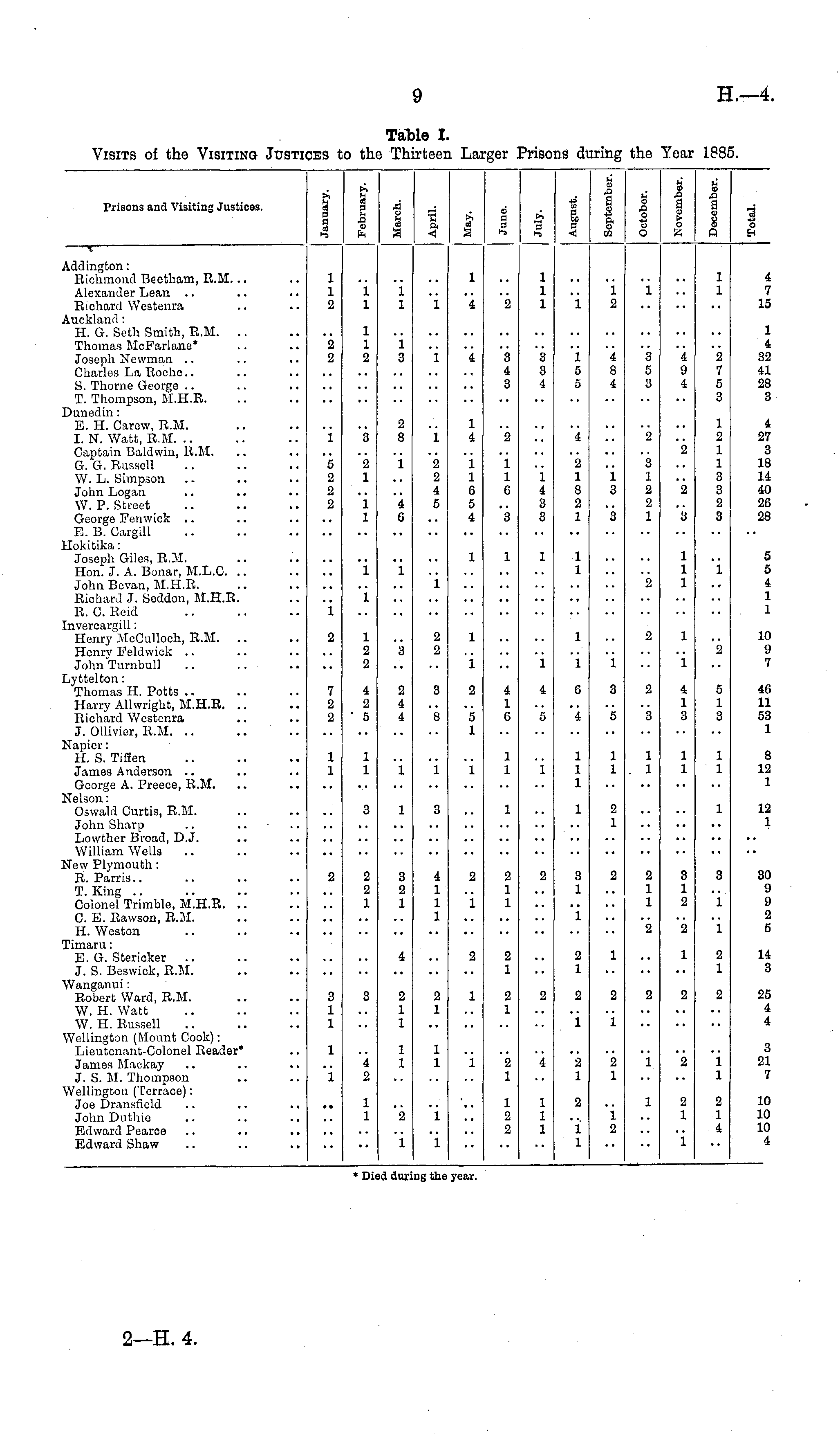 Table I. Visits of the Visiting Justices to the Thirteen Larger Prisons during the Year 1885.