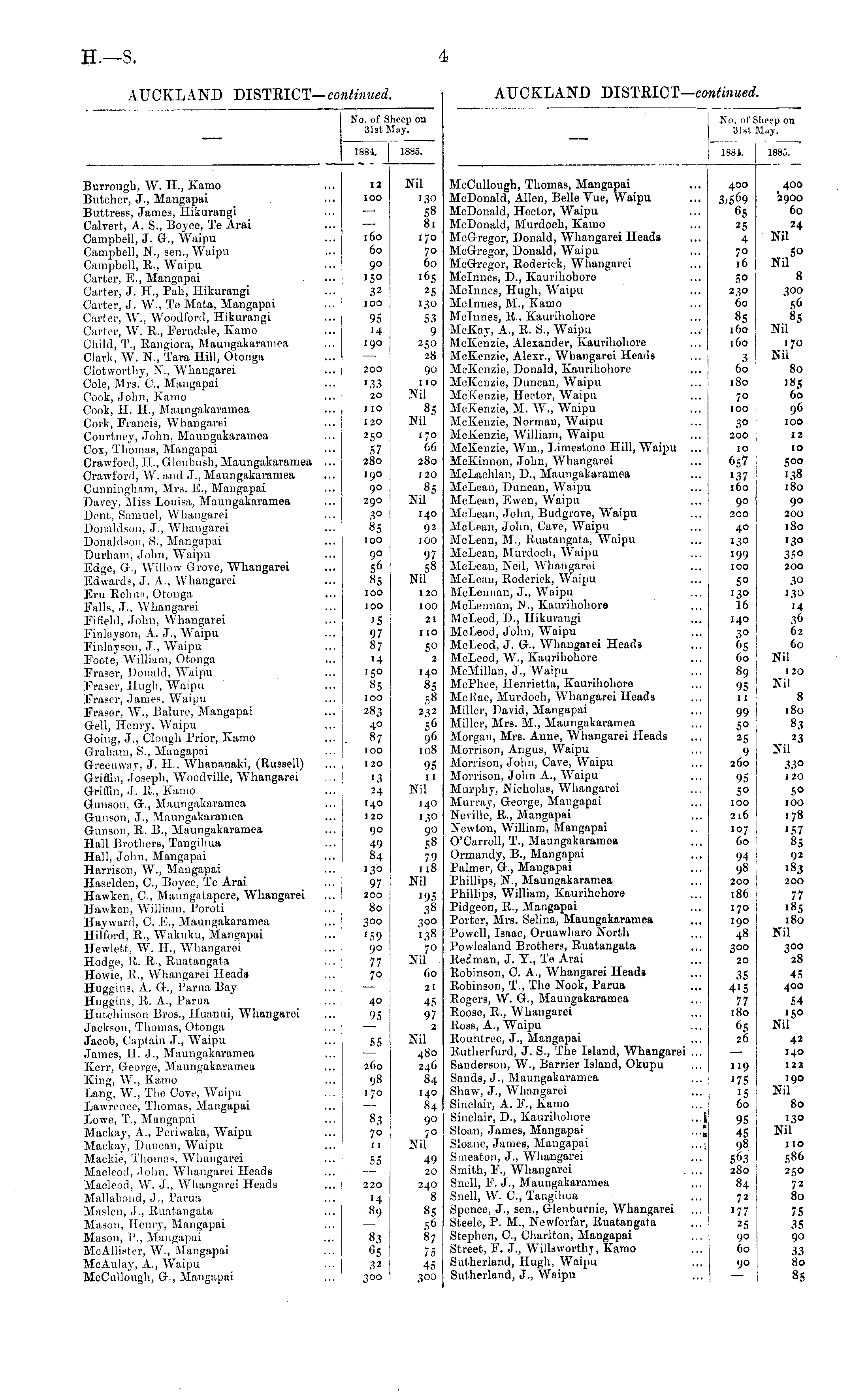 Ho. of Sheep on 31st May. 188i. I 1885. Burrougb, W. H., Kamo Butcher, J., Mangapai Buttress, James, Hikurangi Oalvert, A. S., Boyce, Te Arai Campbell, J. G., Waipu Campbell, N., sen., Waipu Campbell, R., Waipu Carter, E., Mangapai Darter, J. II., Pah, Hikurangi Carter, J. W., Te Mata, Mangapai Carter, W., Woodford, Hikurangi Darter, W. E., Ferndale, Kamo Cbild, T., Bangiora, Maungakaramea Clark, W. N., Tara Hill, Otonga Clot worthy, N., Whangarei Cole, Mrs. C, Mangapai Cook, John, Kamo Cook, II. 11., Maungakaramea Cork, Francis, Whangarei Courtney, John, Maungakaramea Cox, Thomas, Mangapai Crawford, II., Grlcnbush, Maungakaramea ... Crawford, W. and J., Maungnkaramea Cunningham, Mr3. E., Mangapai Davey, Miss Louisa, Maungakaramea Dent, Samuel, Whangarei Donaldson, J., Whangarei Donaldson, S., Mangapai Durham, John, Waipu Edge, Gr., Willow Grove, Whangarei Edwards, J. A., Whangarei Eru Beliun, Otonga Falls, J., Whangarei Fifield, John, Whangarei Finlayson, A. J., Waipu Finlayson, J., Waipu Foote, William, Otonga Frasor, Donald, Waipu Fraser, Hugh, Waipu Frasor, James, Waipu Fraser, W., Balure, Mangapai Gell, Henry, Waipu . ... Going, J., Clough Prior, Kamo Graham, S., Mangapai Greenway, J. H., Whananaki, (Russell) Griffin, Joseph, Woodville, Whangarei Griffin, J. R., Kamo Gunson, G., Maungakai-amea Gunson, J., Maungakaramea Gunson, R. 13., Maungakaramea Hall Brothers, Tangihua Hall, John, Mangapai Harrison, W., Mangapai Haseldcn, C, Boyce, Te Arai Hawken, C, Maungatapere, Whangarei Hawken, W Tilliam, I Joroti Hay ward, C. E., Maungakaramea Hilford, R., Wakuku, Mangapai Hewlett, W. II., Whangarei Hodge, ji. R , Ruatangata. Howie, 11., Whangarei Heads Huggins, A. G., Parua Bay Huggins, R. A., Parua Hutchinson Bros., Huanui, Whangarei Jackson, Thomas, Otonga Jacob, Captain J., AVaipu James, H. J., Maungakaramea Kerr, George, Maungakaramea King, W., Kamo Lang, W., The Core, Waipu Lawrence, Thomas, Mangapai Lowe, T., Mangapai Maekny, A., Periwaka, Waipu Maekay, Duncan, Waipu Mackio, Thomas, Wliangarei Macleod, .Tolm, Whangarei Heads Macleod, \V. J., AVhangarei Heads Mallabond, J., Parua Maslen, J., Ruatangala Mason, Henry, Mangapai Mason, 1'., Mangapai McAllister, W., Mangapai McAulay, A., Waipu McCiillough, Gr., Mangapai 12 IOO 160 60 90 150 3* 100 95 14 190 200 20 j 10 120 250 57 280 190 90 290 3° 85 100 9° 56 85 100 100 IS 97 87 14 15° 85 100 283 40 87 100 Nil 130 58 81 170 7° 60 165 25 130 53 9 250 28 90 110 Nil 85 Nil 170 66 280 120 85 Nil 140 92 100 97 58 Nil 120 100 21 110 50 2 140 85 .S 8 232 =6 96 108 95 11 Nil 120 '3 24 140 120 90 49 84 130 97 200 80 140 ■30 90 58 79 118 Nil «95 38 300 138 7° Nil 60 300 ■59 90 77 7° 40 95 21 45 97 2 55 260 98 170 Nil 480 246 84 140 84 90 7° Nil 83 7° 11 55 220 '4 89 49 20 240 8 85 56 87 75 45 300 83 65 32 300