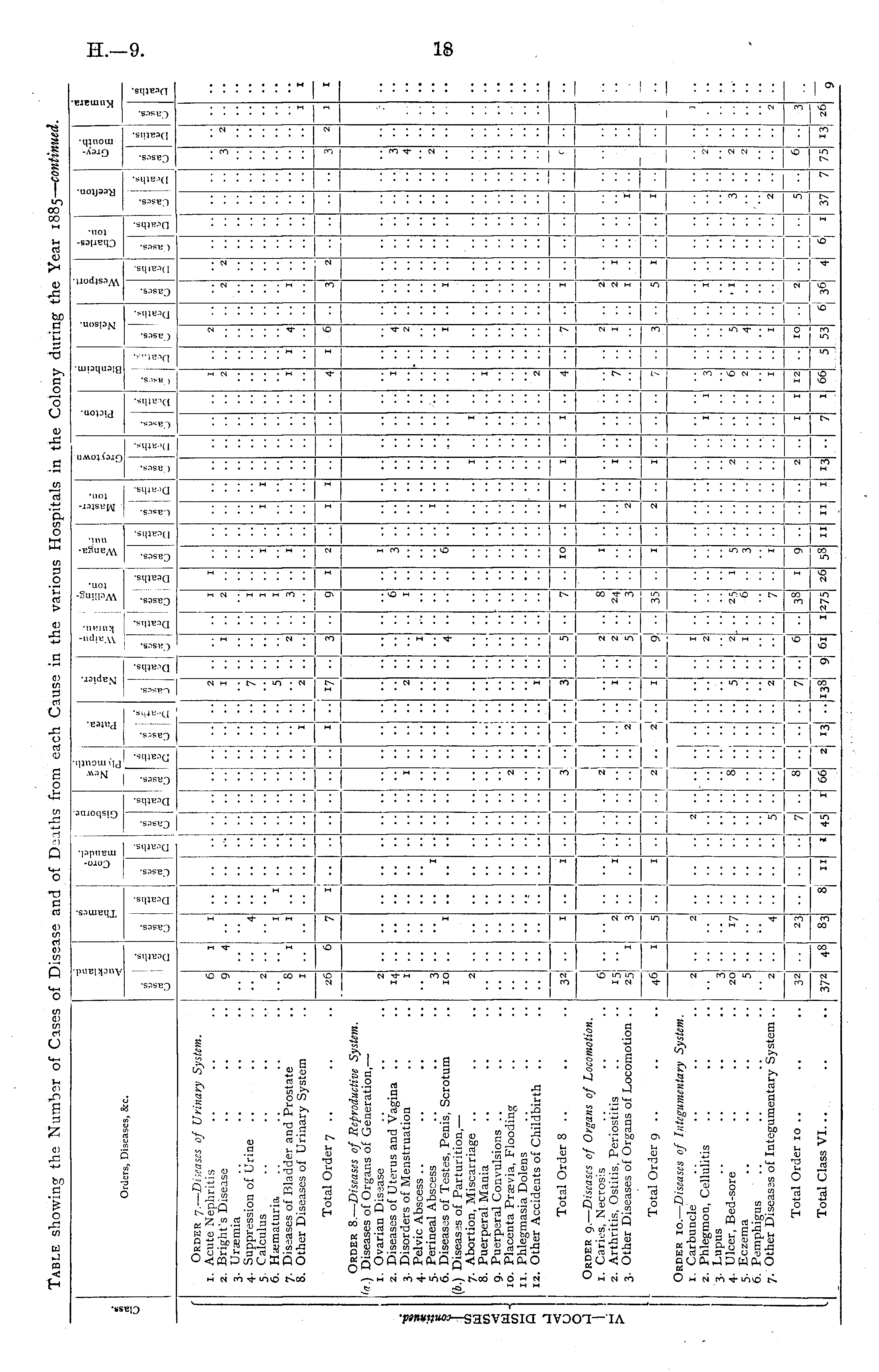 Table showing the Number of Cases of Disease and of Deaths from each Cause in the various Hospitals in the Colony during the Year 1885— continued.