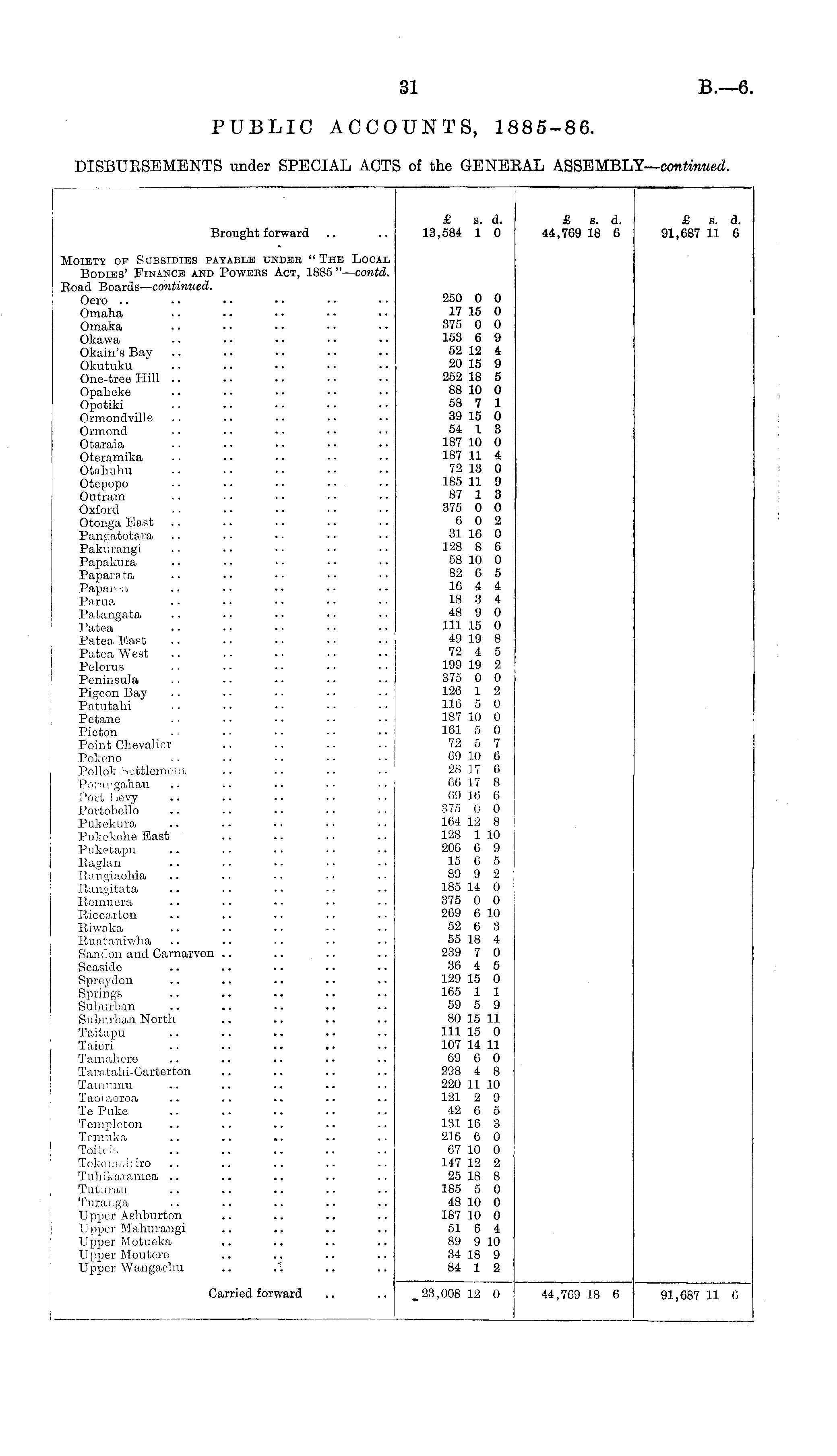 Brought forwara £ s. d. 13,584 1 0 £ s. d. 44,769 18 6 £ s. d. 91,687 11 6 Moiety of Subsidies payable under " The Local Bodies' Finance and Powers Act, 1885 " — contd. Roaa Boaras— continued. Oero Omaha Omaka Okawa Okain's Bay Okutuku One-tree Hill Opaheke Opotiki Ormonaville Ormona Otaraia Oteramika Otnhuhu Otepopo .. • • • • Outram Oxfora Otonga East Pangatotara Pakiirangi Papakura Papara ta Papari a Parua Patangata Patea Patea East Patea West Pelorus Peninsula Pigeon Bay Patutahi Petane Picton Point Chevalier Pokeno Pollok Settlement Pom pgahau Port Levy Portobello Pukekura Pukekohe East Puketapu Raglan Rangiaohia Rangitata Rcmuera Riccarton Riwaka Ruataniwha Sandon and Carnarvon Seaside Spreydon Springs Suburban Suburban North Taitapu Taieri Tamahere Taratalii-Carterton Tamumu Taotaoroa Te Puke Templeton Temuka Toiixis Tokomairiro Tub ikaramea Tuturau Turanga Upper Ashburton U pper Mahurangi V pper Motueka Upper Moutere Upper Wangachu 250 0 0 17 15 0 375 0 0 153 6 9 52 12 4 20 15 9 252 18 5 88 10 0 58 7 1 39 15 0 54 1 3 187 10 0 187 11 4 72 13 0 185 11 9 87 1 3 375 0 0 0 0 2 31 16 0 128 8 6 58 10 0 82 0 5 16 4 4 18 3 4 48 9 0 111 15 0 49 19 8 72 4 5 199 19 2 375 0 0 126 1 2 116 5 0 187 10 0 101 5 0 72 5 7 09 10 6 28 17 6 G6 17 8 09 16 6 375 0 0 164 12 8 128 1 10 206 0 9 15 6 5 89 9 2 185 14 0 375 0 0 269 6 10 52 6 3 55 18 4 239 7 0 3G 4 5 129 15 0 165 1 1 59 5 9 80 15 11 111 15 0 107 14 11 69 0 0 298 4 8 220 11 10 121 2 9 42 0 5 131 16 3 216 6 0 07 10 0 147 12 2 25 18 8 185 5 0 48 10 0 187 10 0 51 6 4 89 9 10 34 18 9 84 1 2 Carried forward „23,008 32 0 44,769 18 6 91,687 11 6