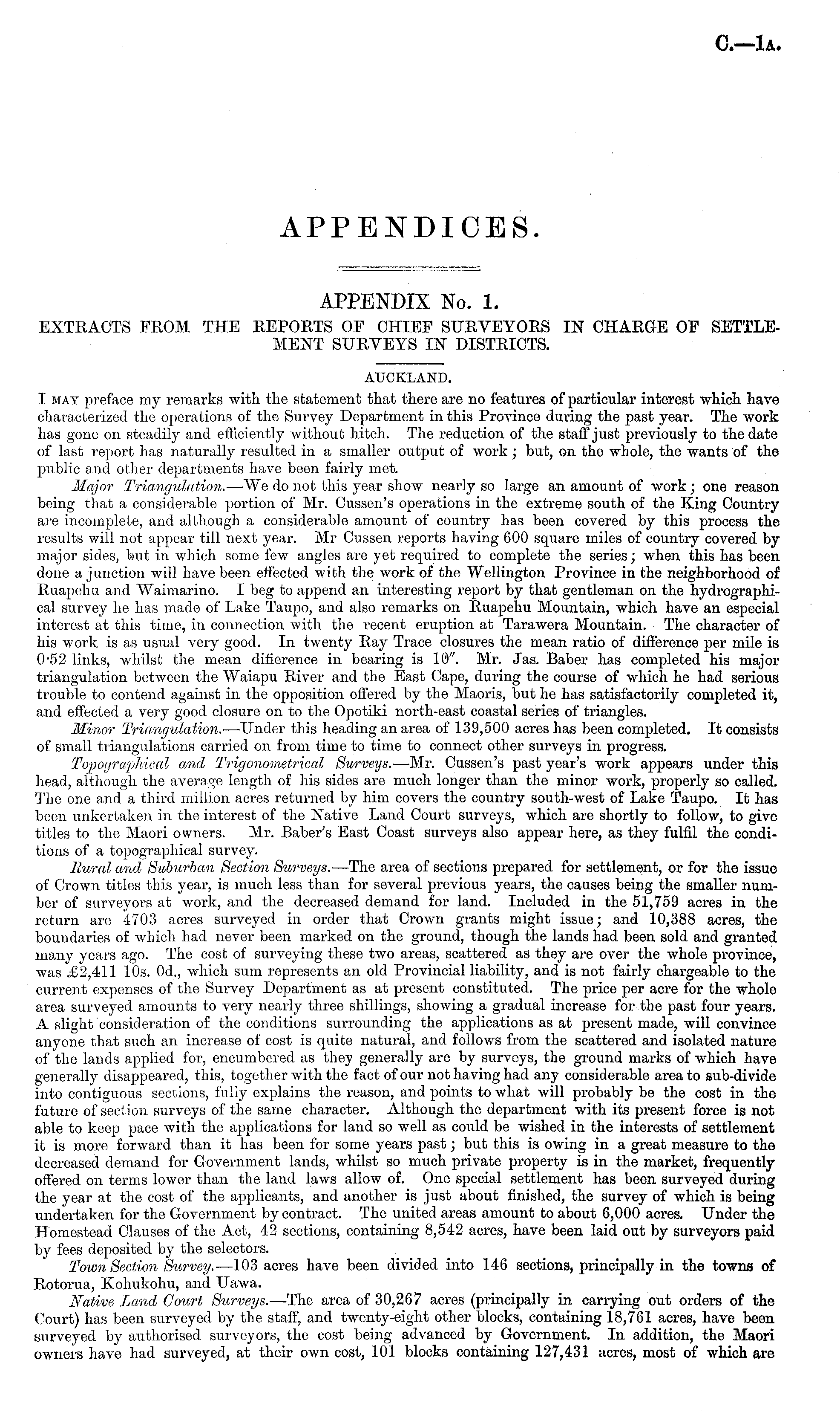 APPENDIX No. 1. EXTRACTS FROM THE REPORTS OF CHIEF SURVEYORS IN CHARGE OF SETTLEMENT SURVEYS IN DISTRICTS.