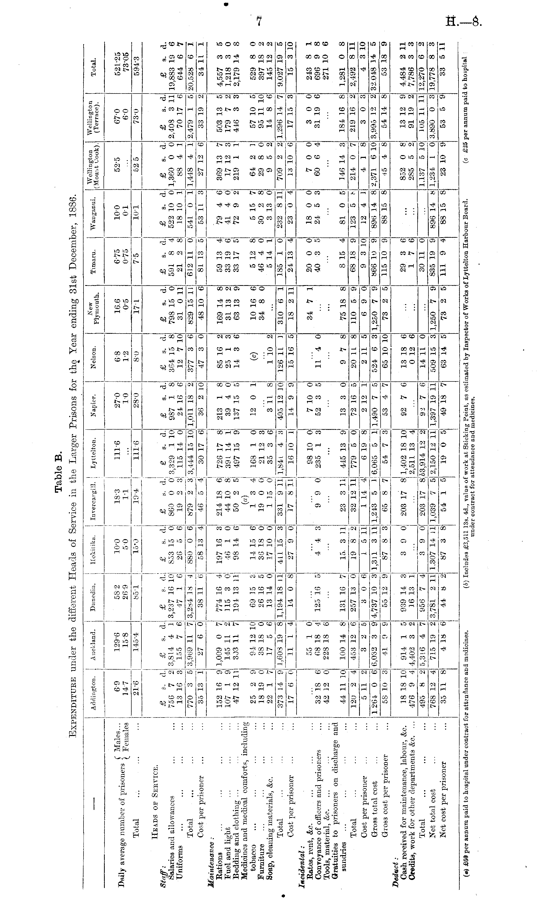 Table B. Expenditure under the different Heads of Service in the Larger Prisons for the Year ending 31st December, 1886.