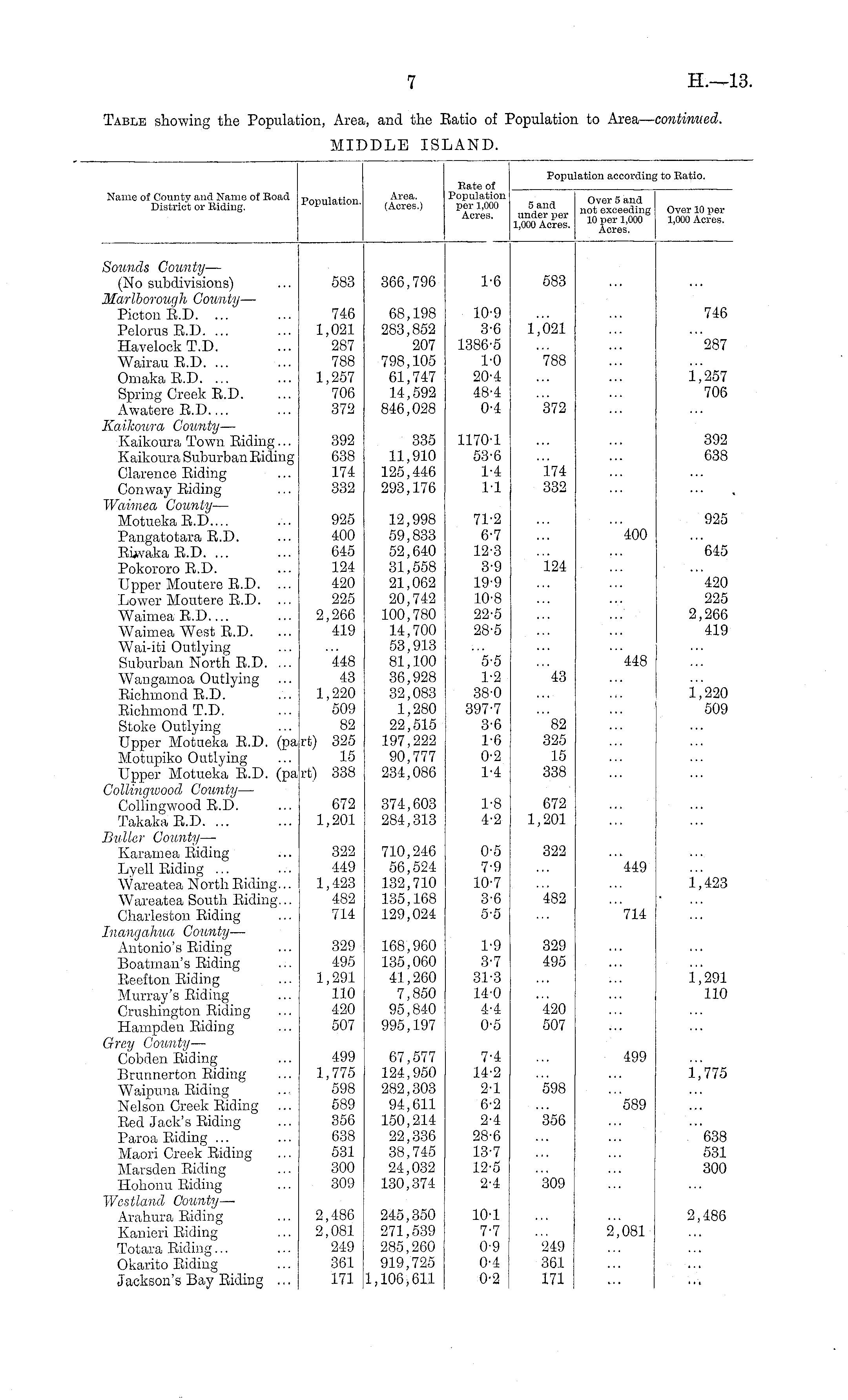 Table showing the Population, Area, and the Ratio of Population to Area— continued. MIDDLE ISLAND.