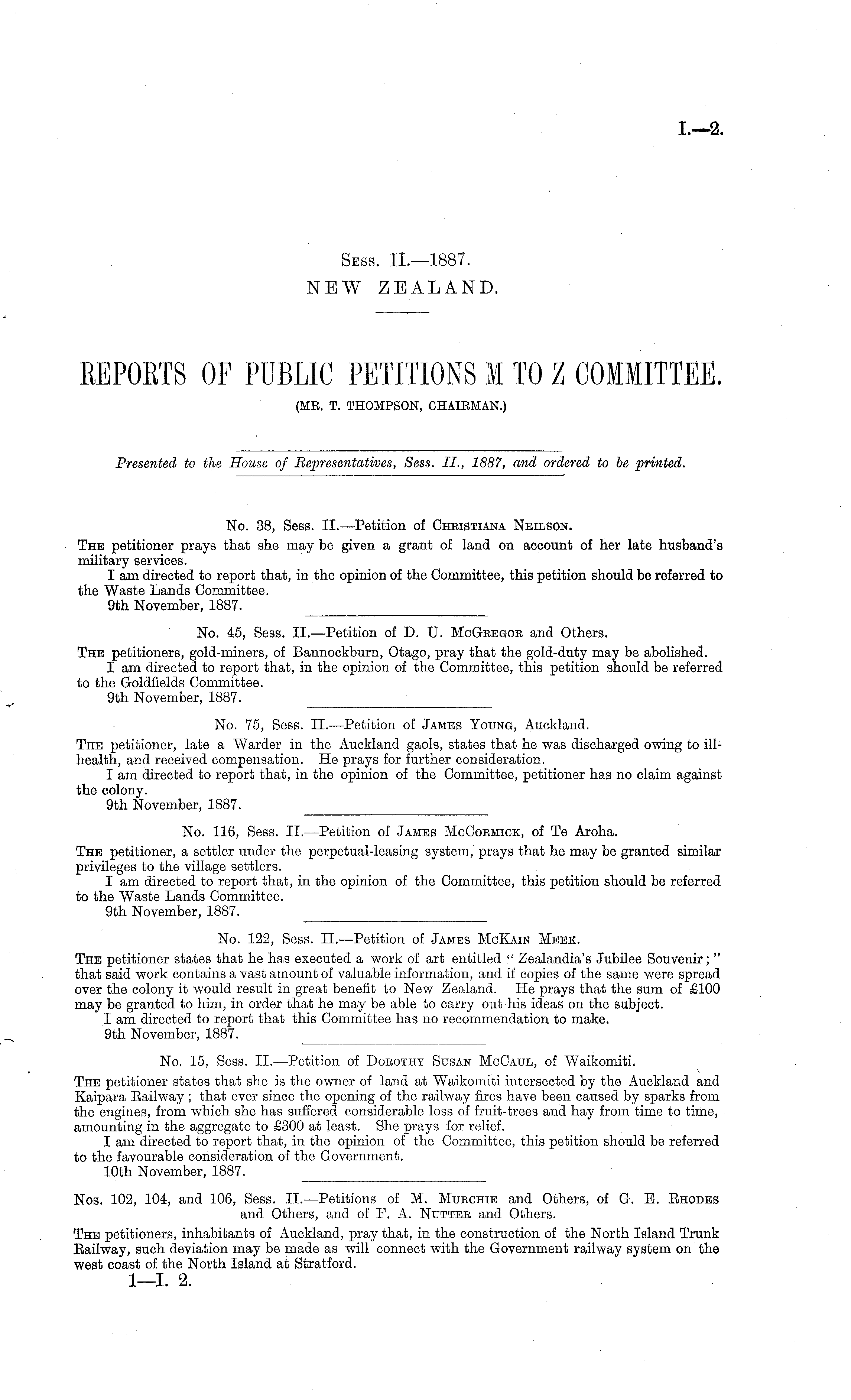 REPORTS OF PUBLIC PETITIONS M TO Z COMMITTEE. (MR. T. THOMPSON, CHAIRMAN.)